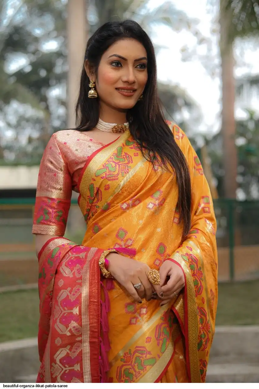 Alltime favorite Organza ikkat Weave Patola sarees in the budget range