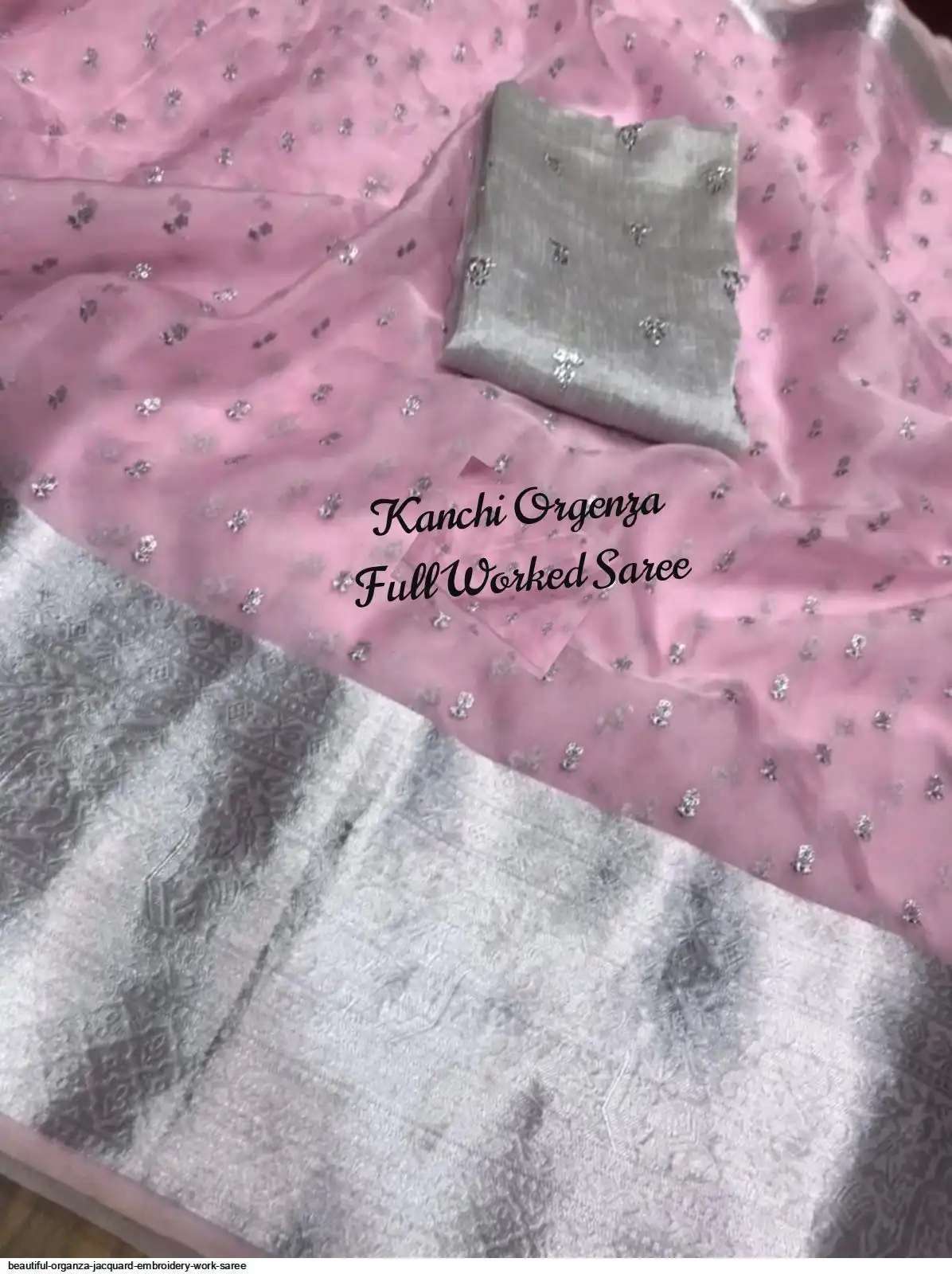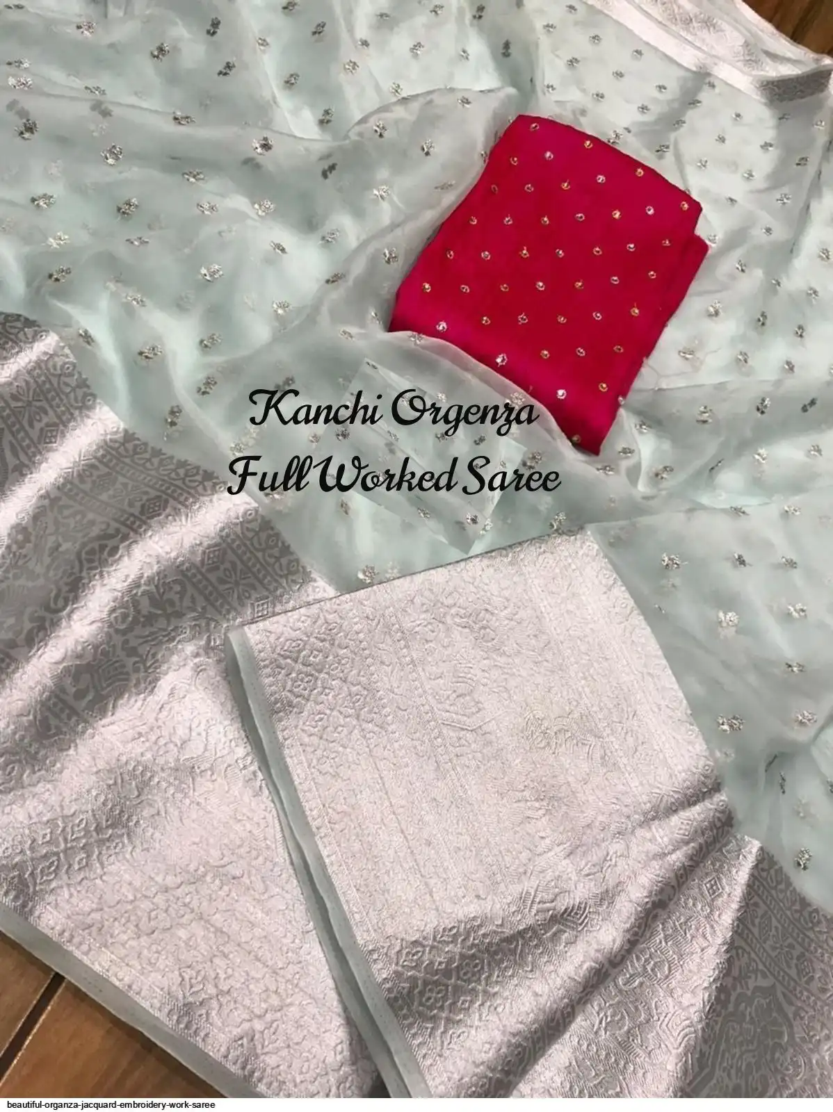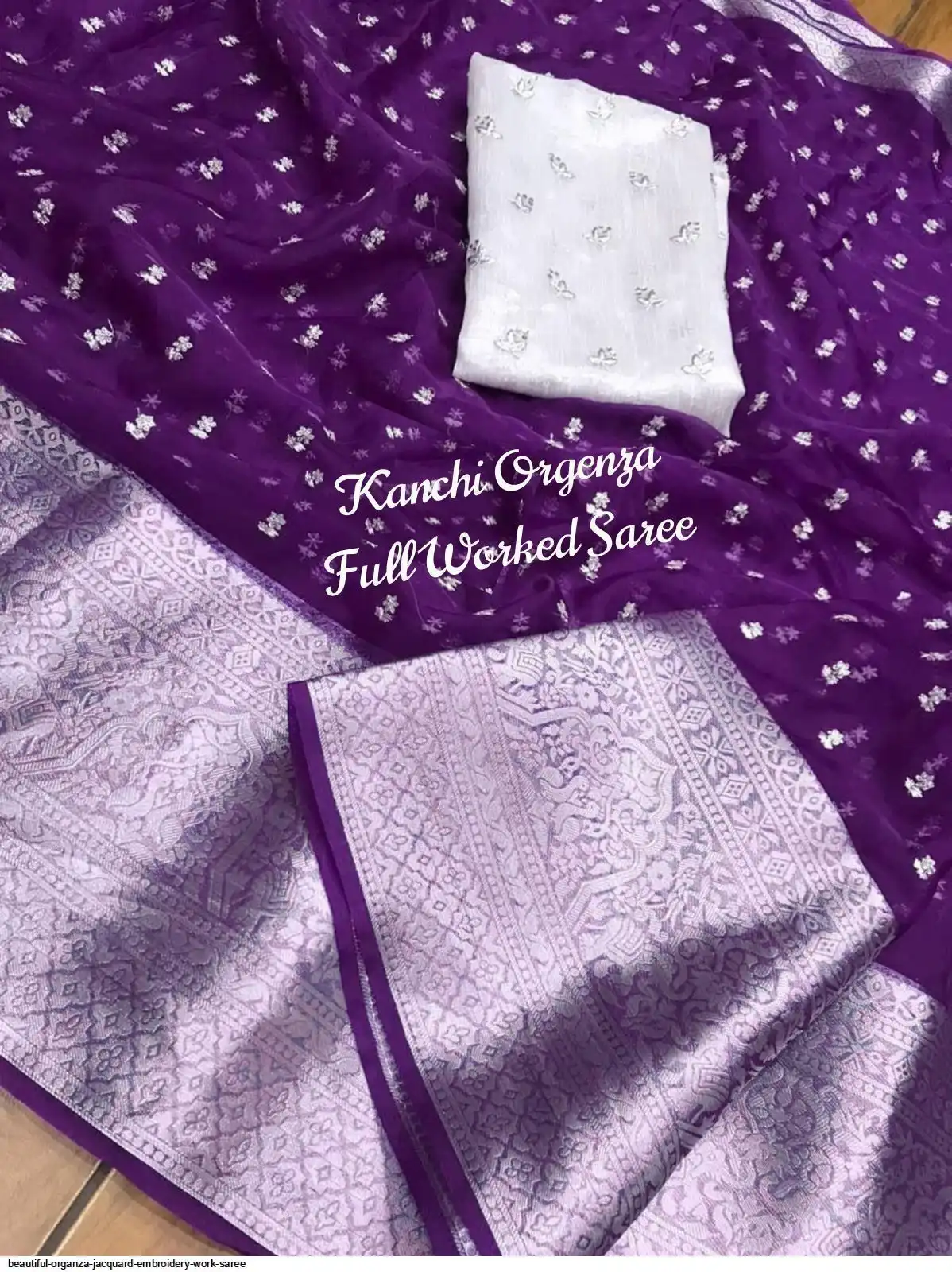 Kanchipuram Orgenza Jacquard Multi Sequence Emrodairy Full Worked Saree With Raw Silk Sequence Blouse