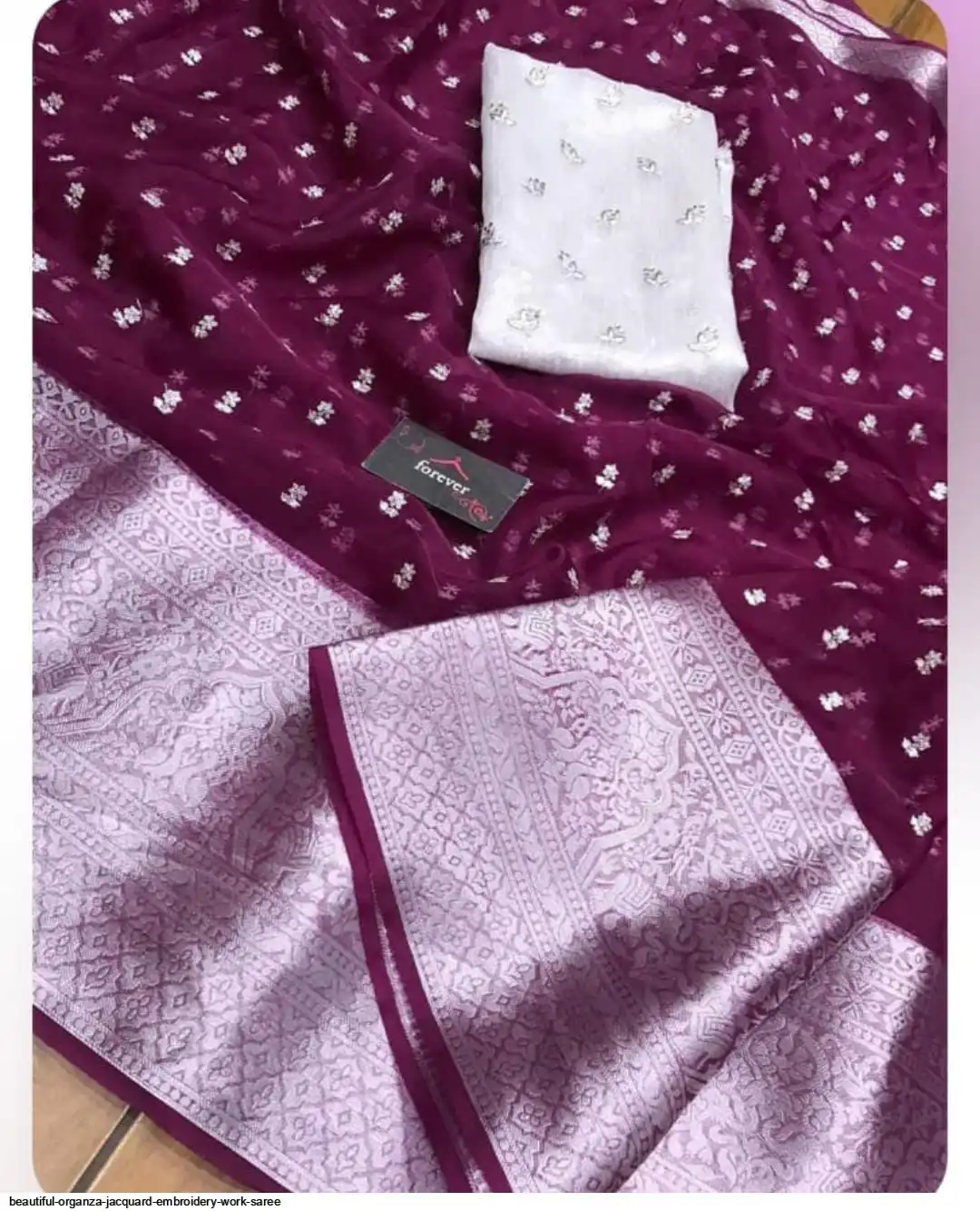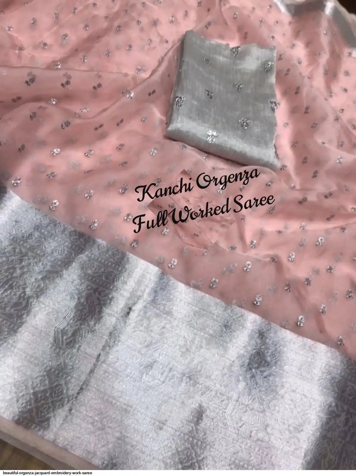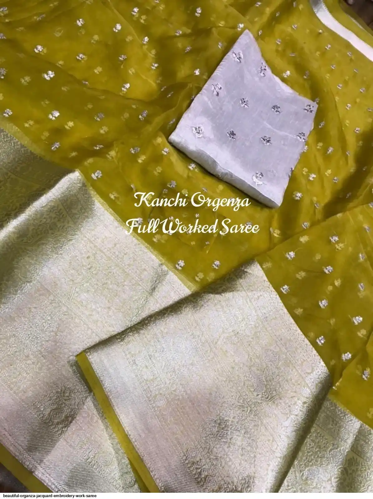 Kanchipuram Orgenza Jacquard Multi Sequence Emrodairy Full Worked Saree With Raw Silk Sequence Blouse