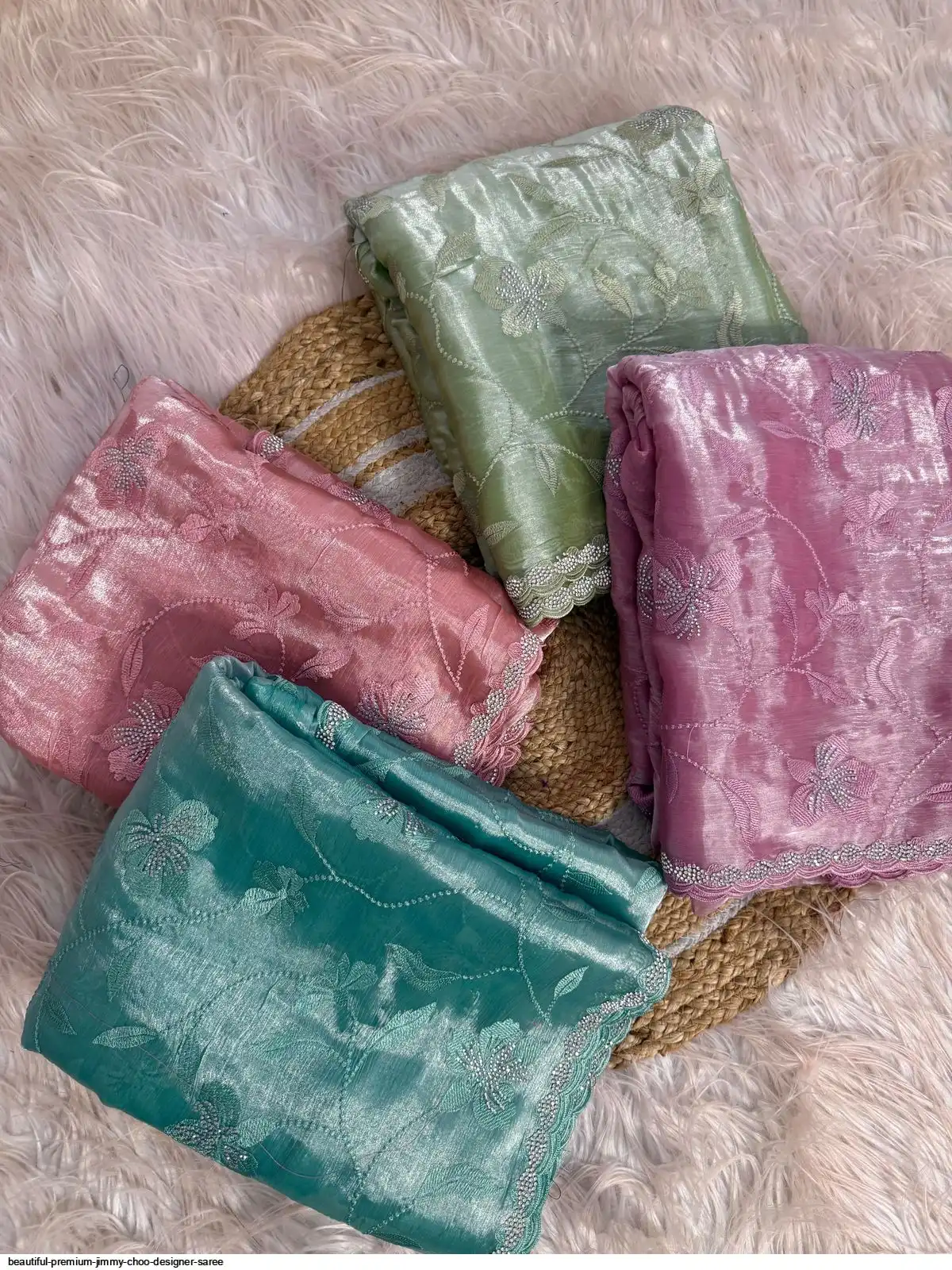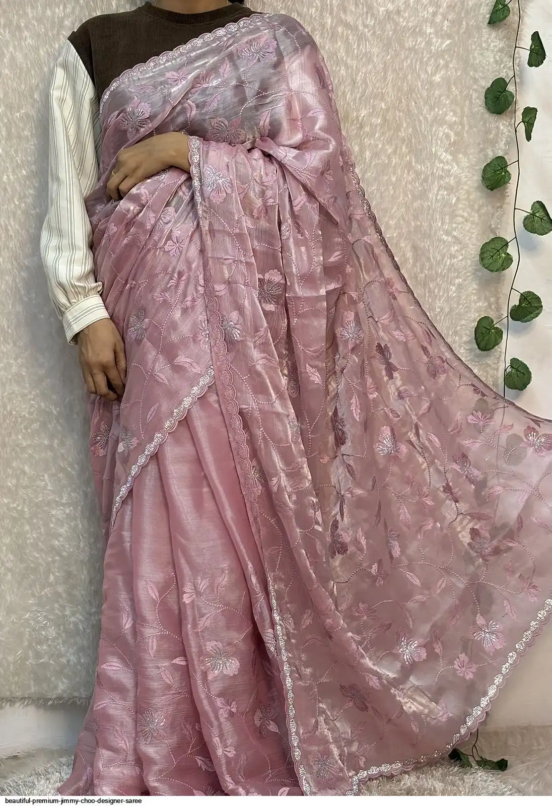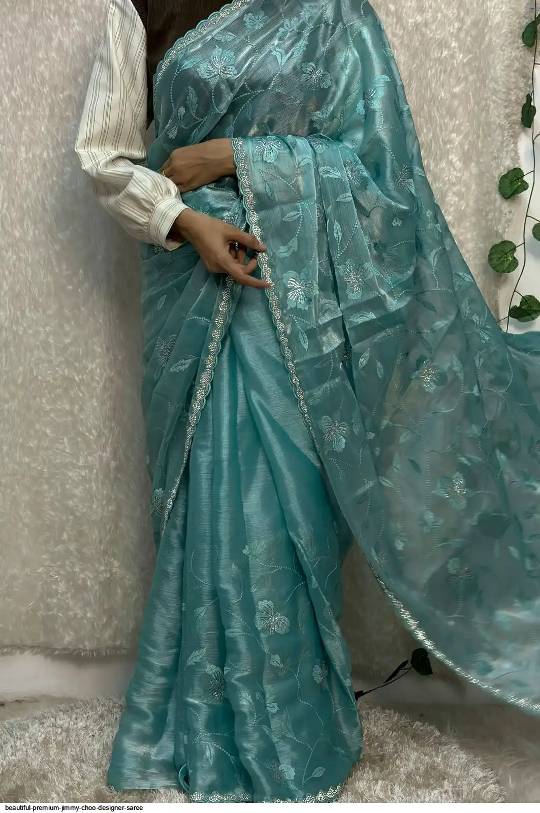 Beautiful premium Quality Jimmy choo Designer Sarees with Beautiful Embroidery And Dimond Work With Cutwork Border Saree