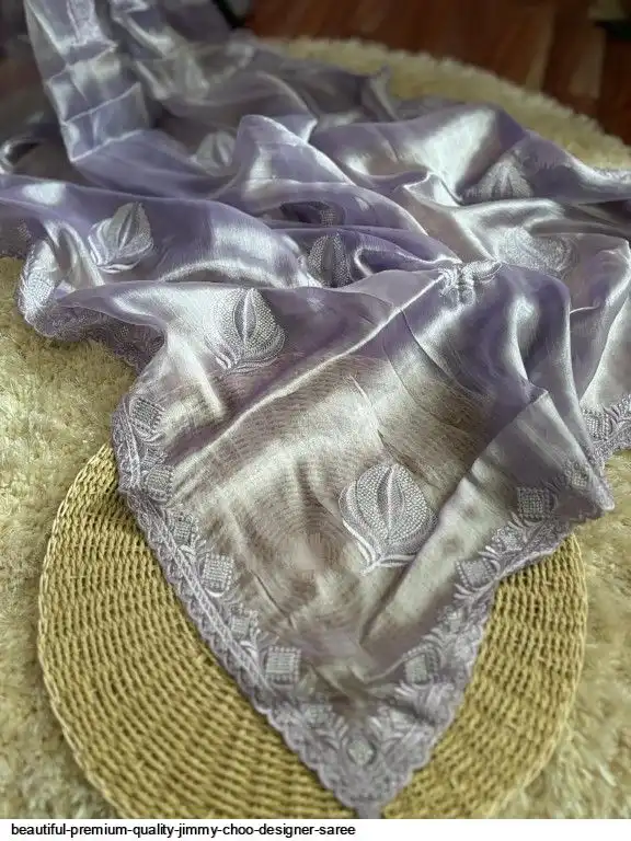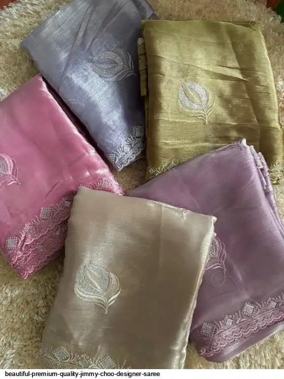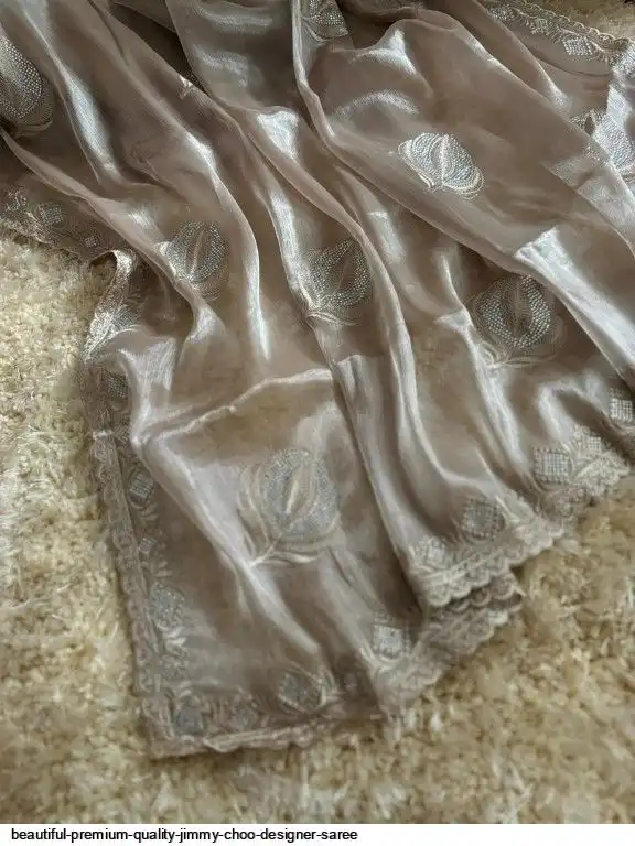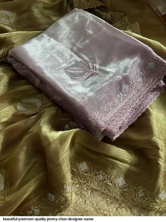 Beautiful premium Quality Jimmy choo Designer Sarees with Beautiful Embroidery And Dimond Work With Cutwork Border Saree