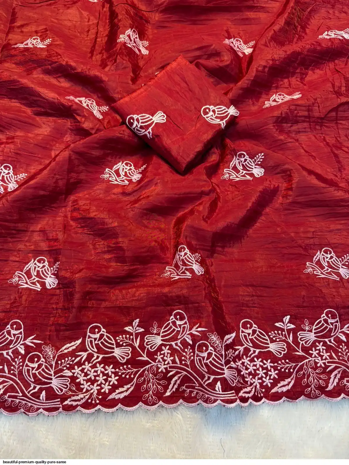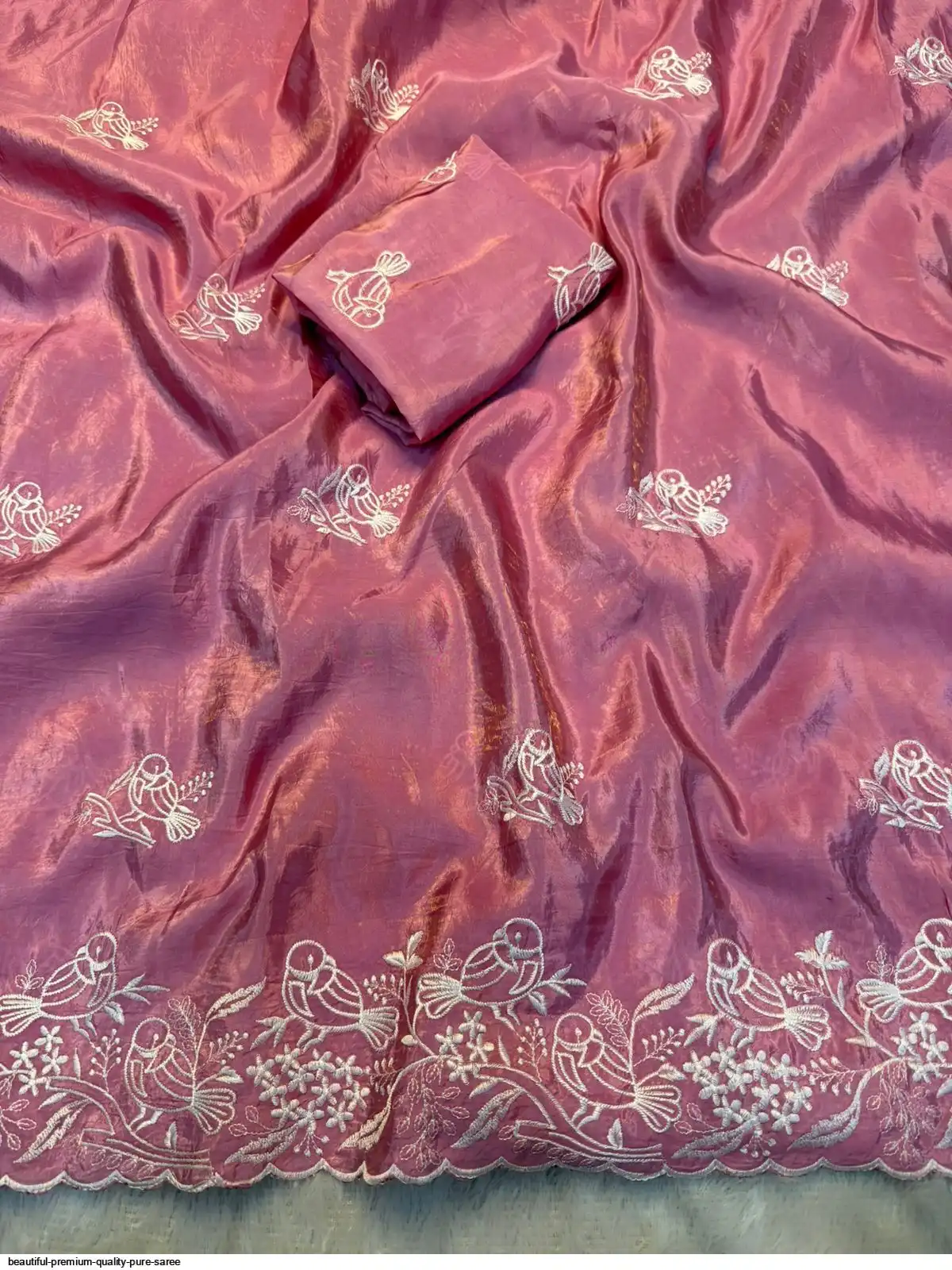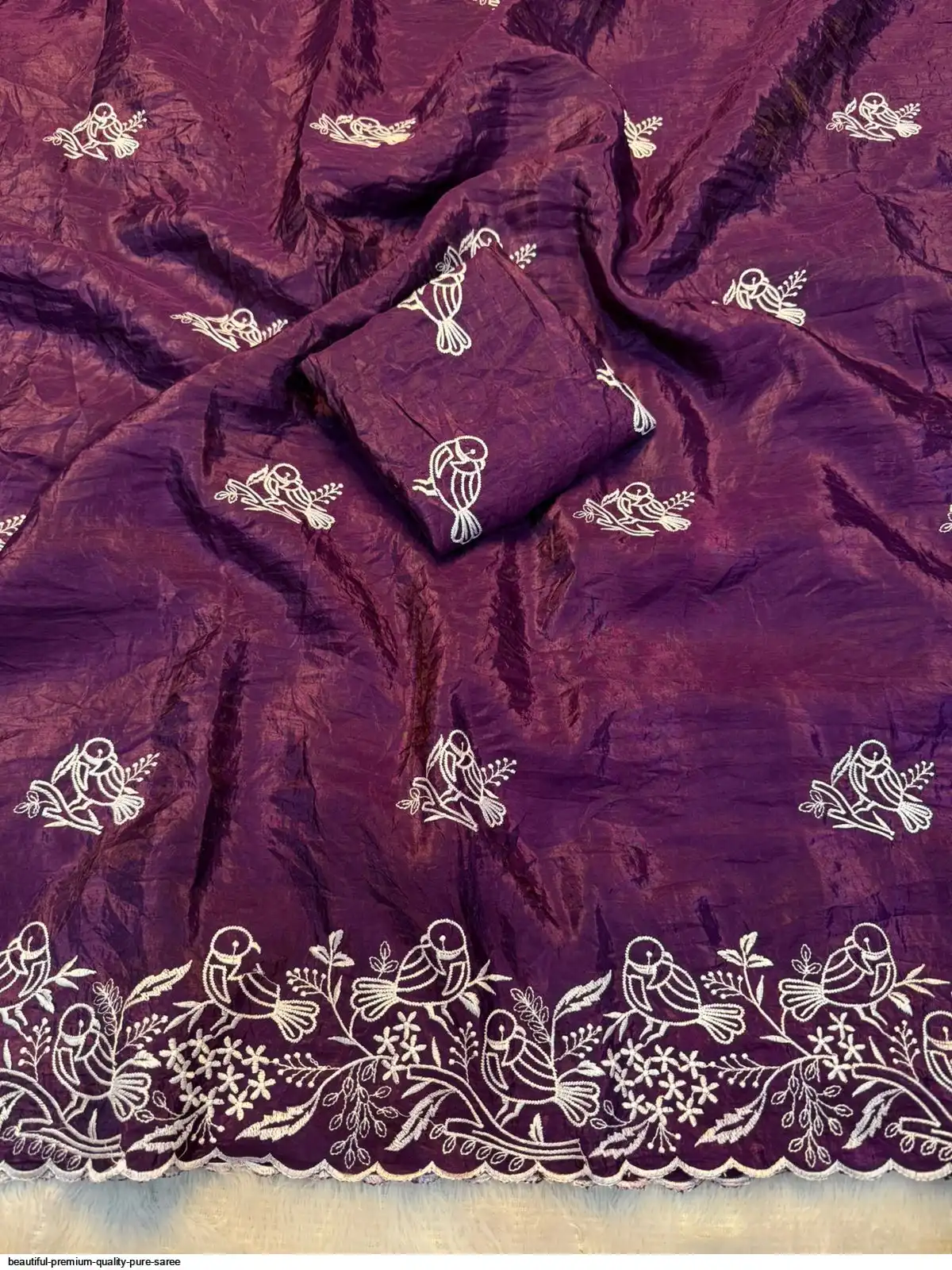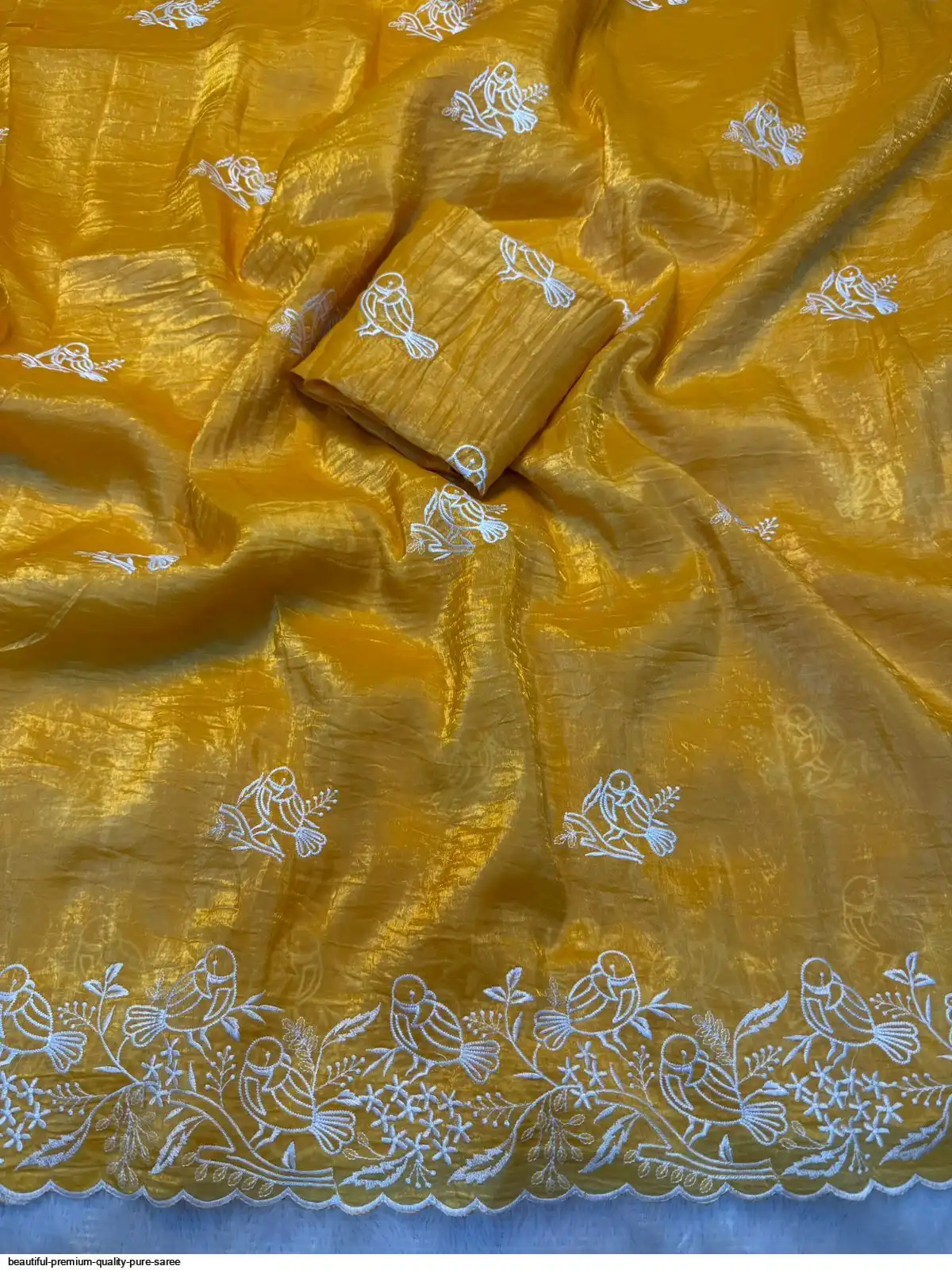 Beautiful Premium Quality soft gold crush Designer Saree with Beautiful Multi Embroidery C-Pallu Saree with