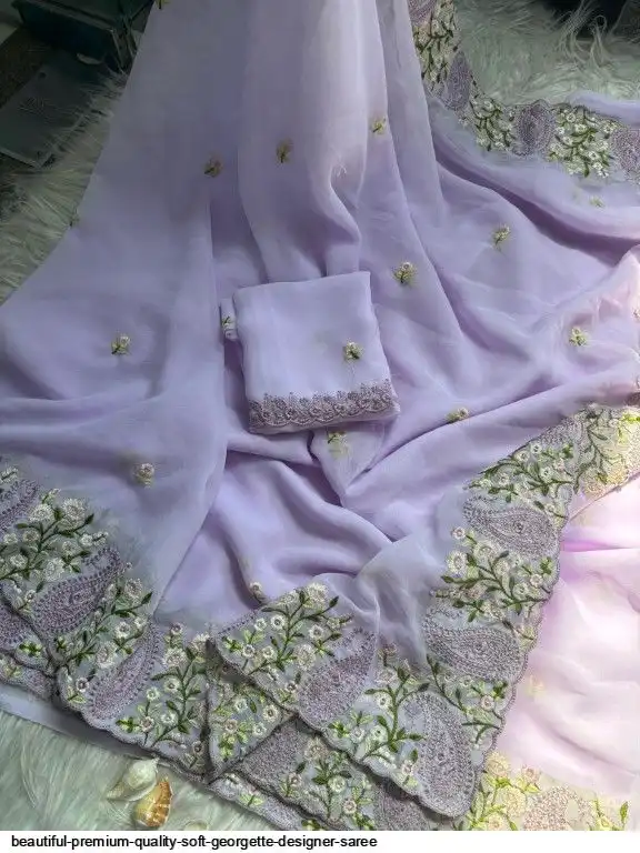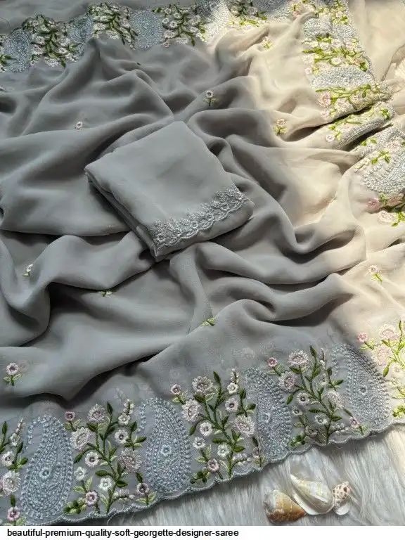 Beautiful Premium Quality soft georgette Designer Saree with Beautiful Multi Embroidery C-Pallu Saree