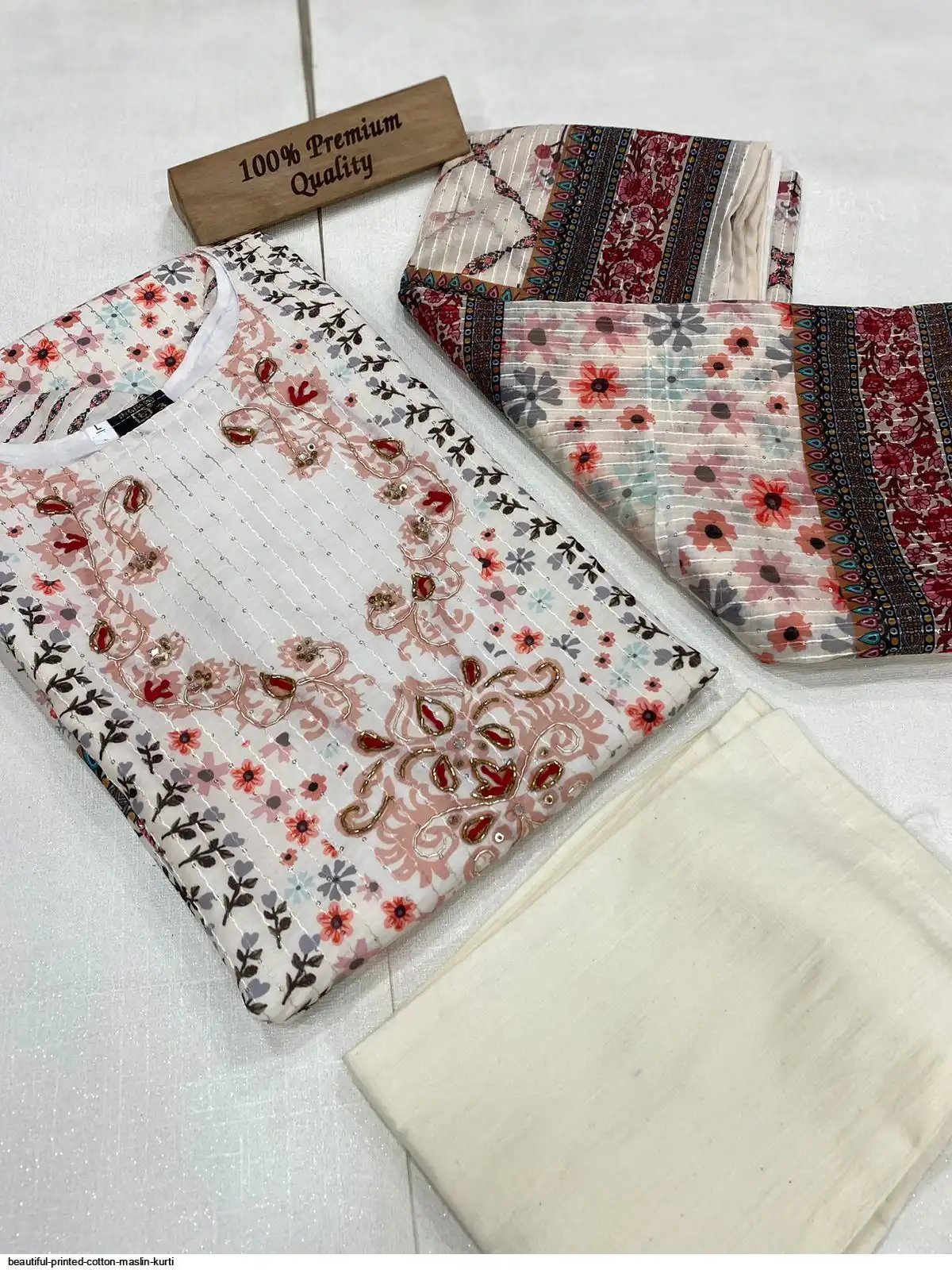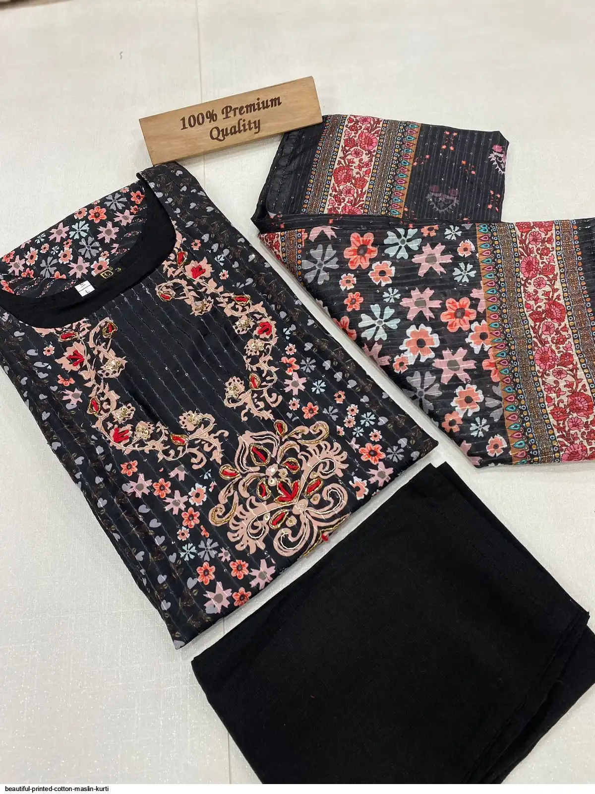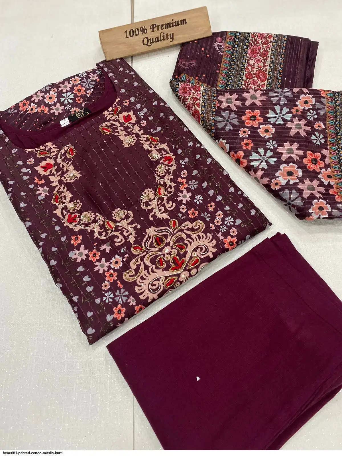 Beautiful printed Maslin kurta with full Sequence Work in kurta