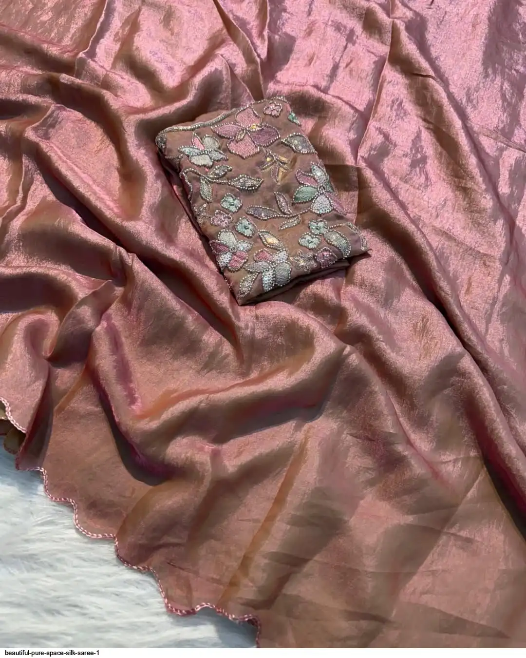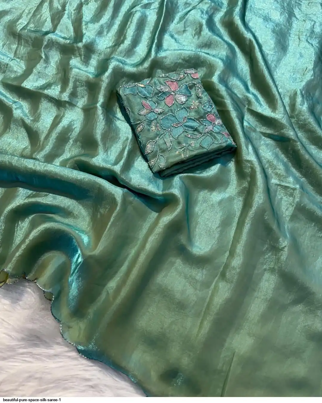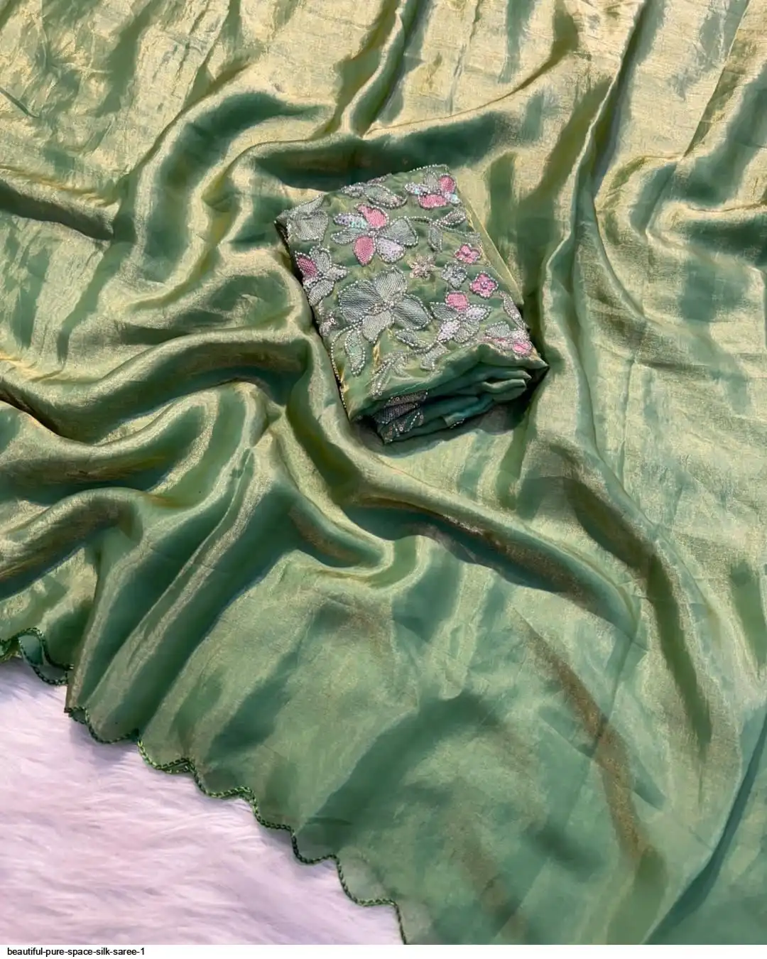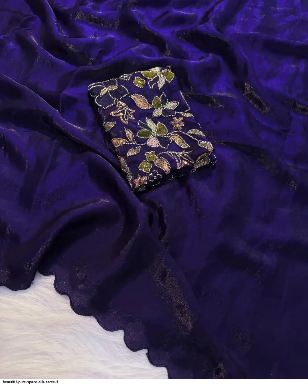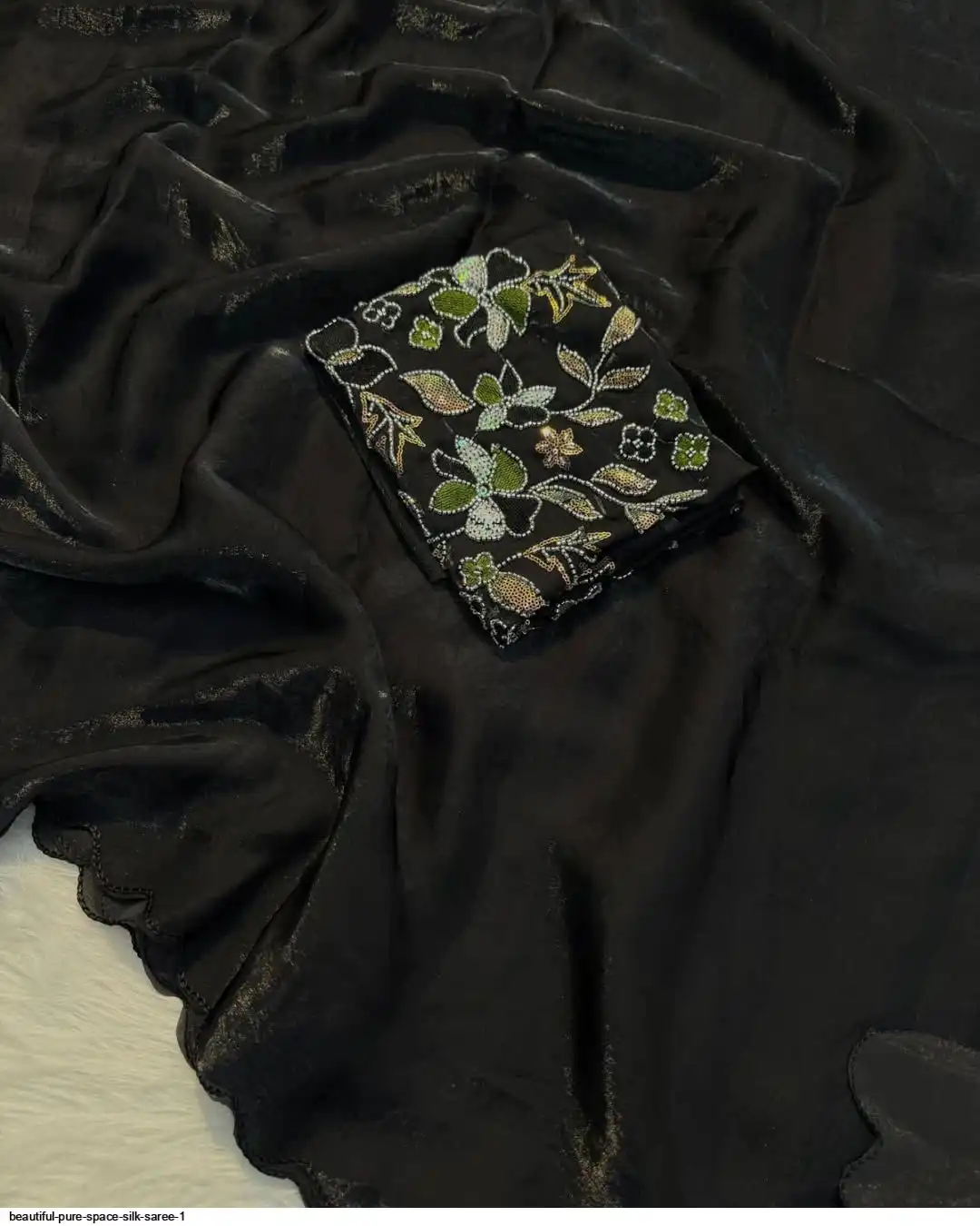 Pure space silk saree with party wear Blouse pure Maggam Worked Handwork with Bouqtiue finishing