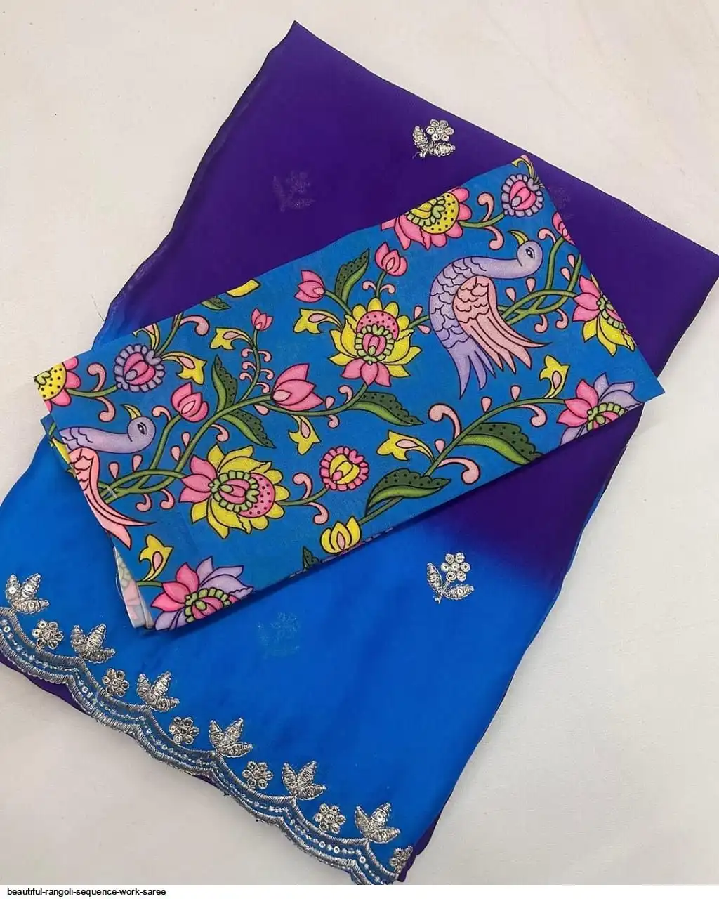 Rangoli Saree Sequence Work With Digital Print Blouse !