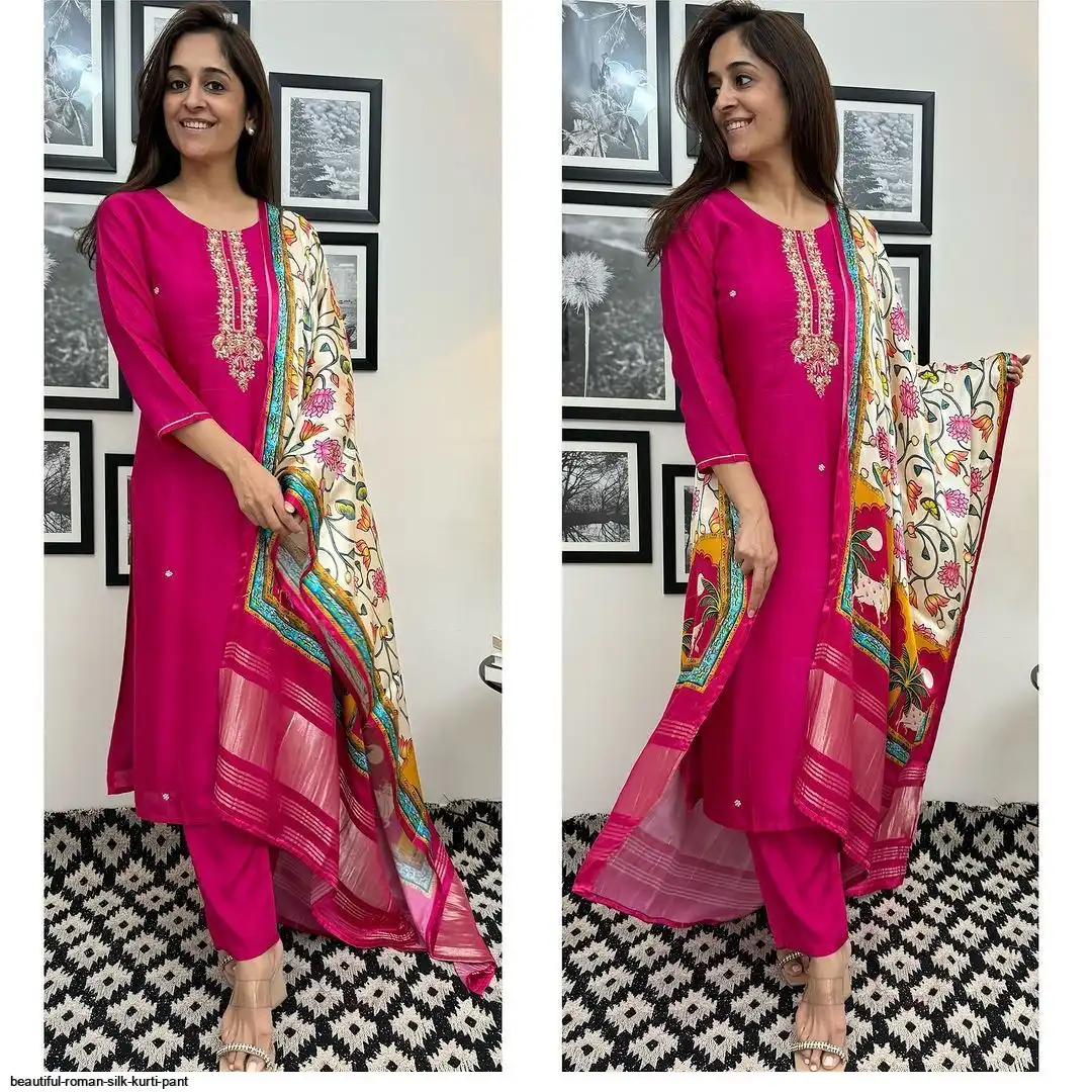 Featuring beautiful Heavy Suit Set which is beautifully decorated with intricate hand embroidery, Zari weaving . It is paired with matching pants and Lace Dupatta.