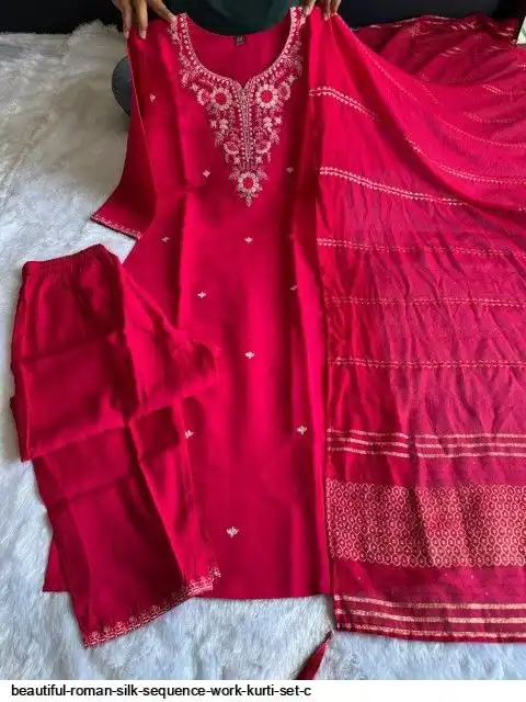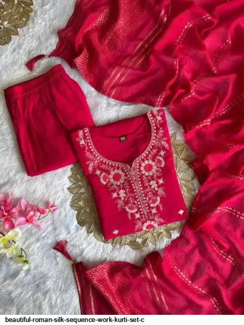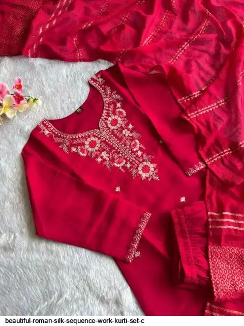 Kurti :- Roman Silk with Beautiful Embroidery With Sequence Work
