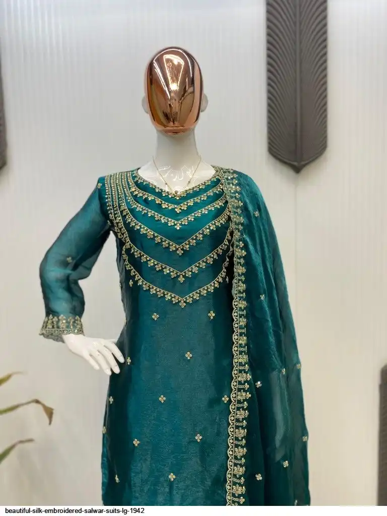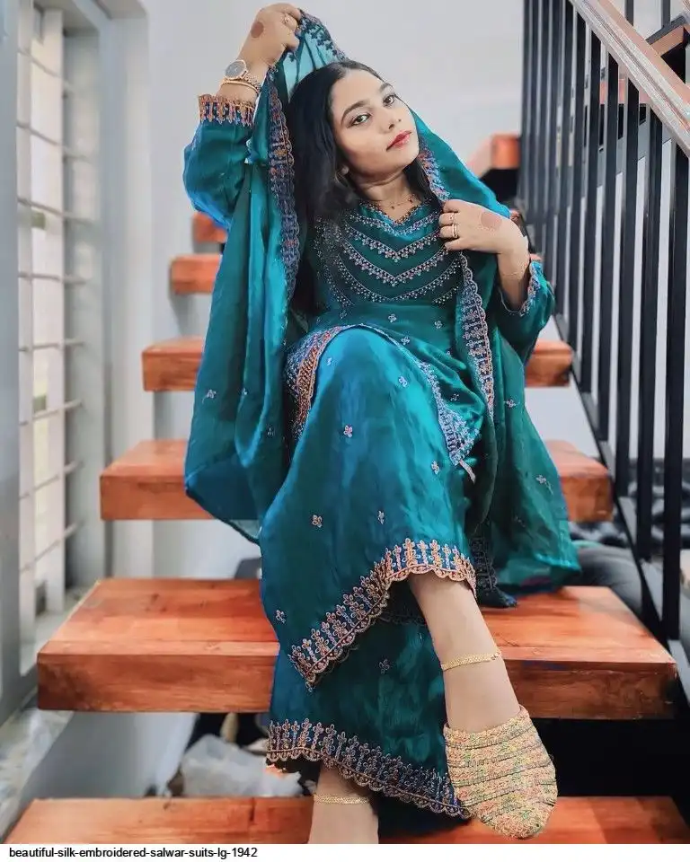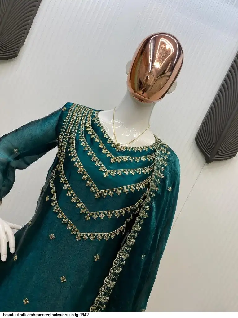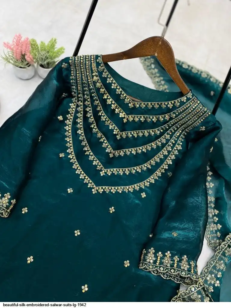 DUPATTA : FENDI SILK WITH SEQUENCE EMBROIDERY (2.2 mtr)