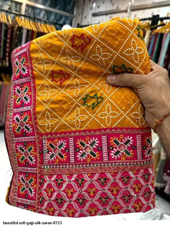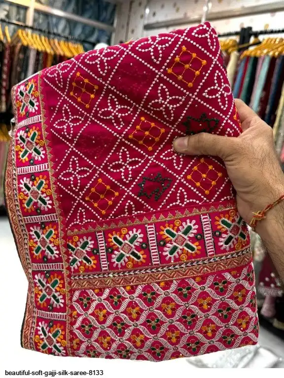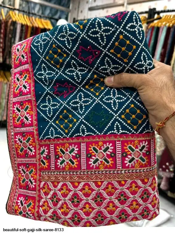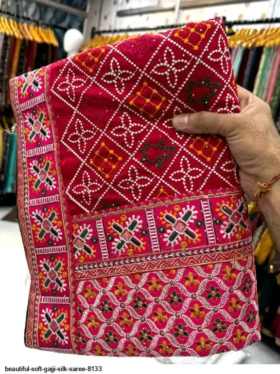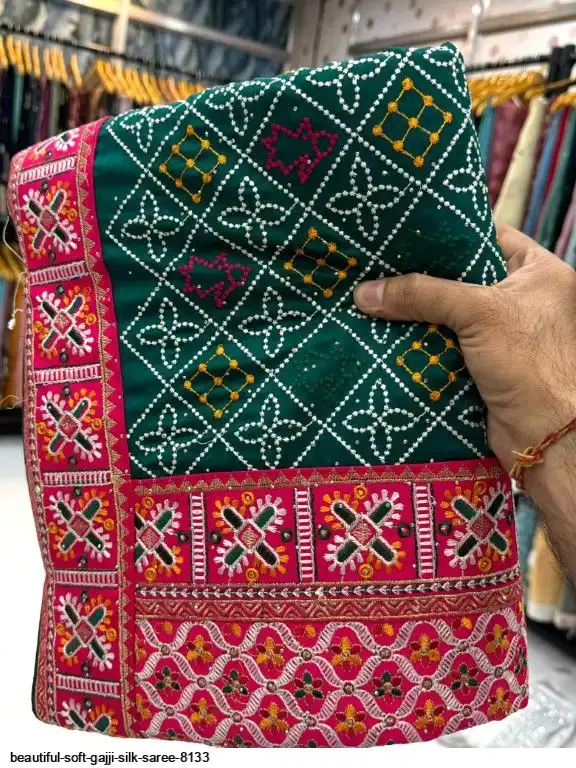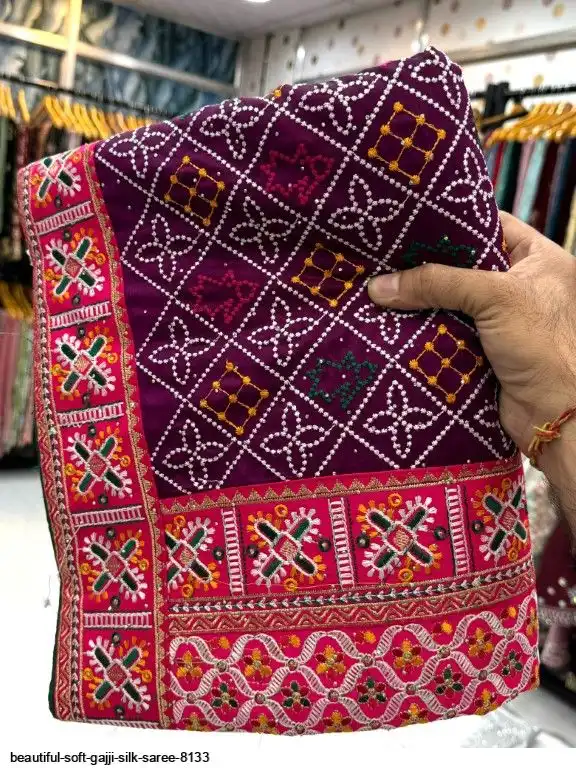 Work :- Full Heavy Multi Thread Kashmiri Embroidery Work With Stone Work & Box Pallu.