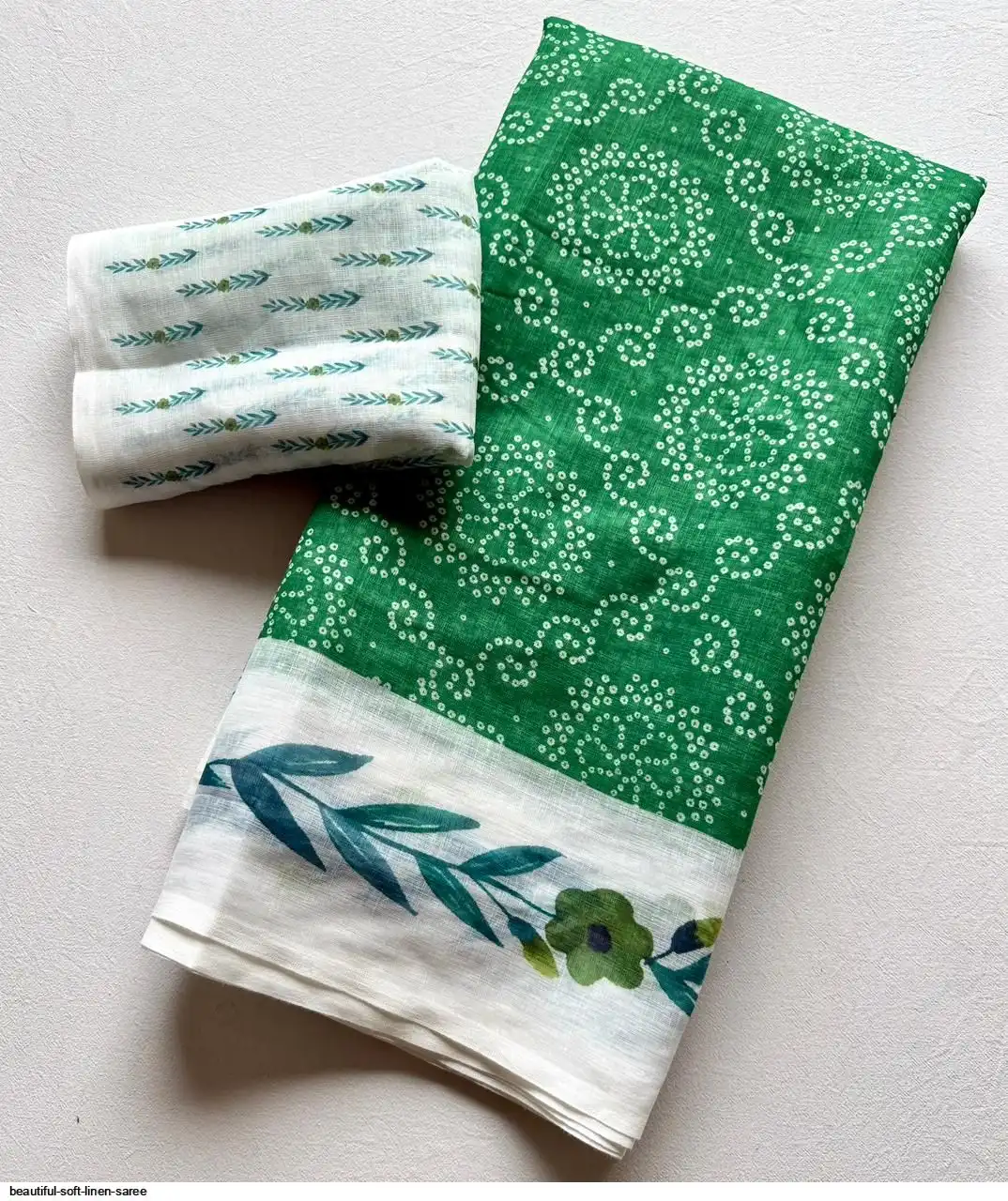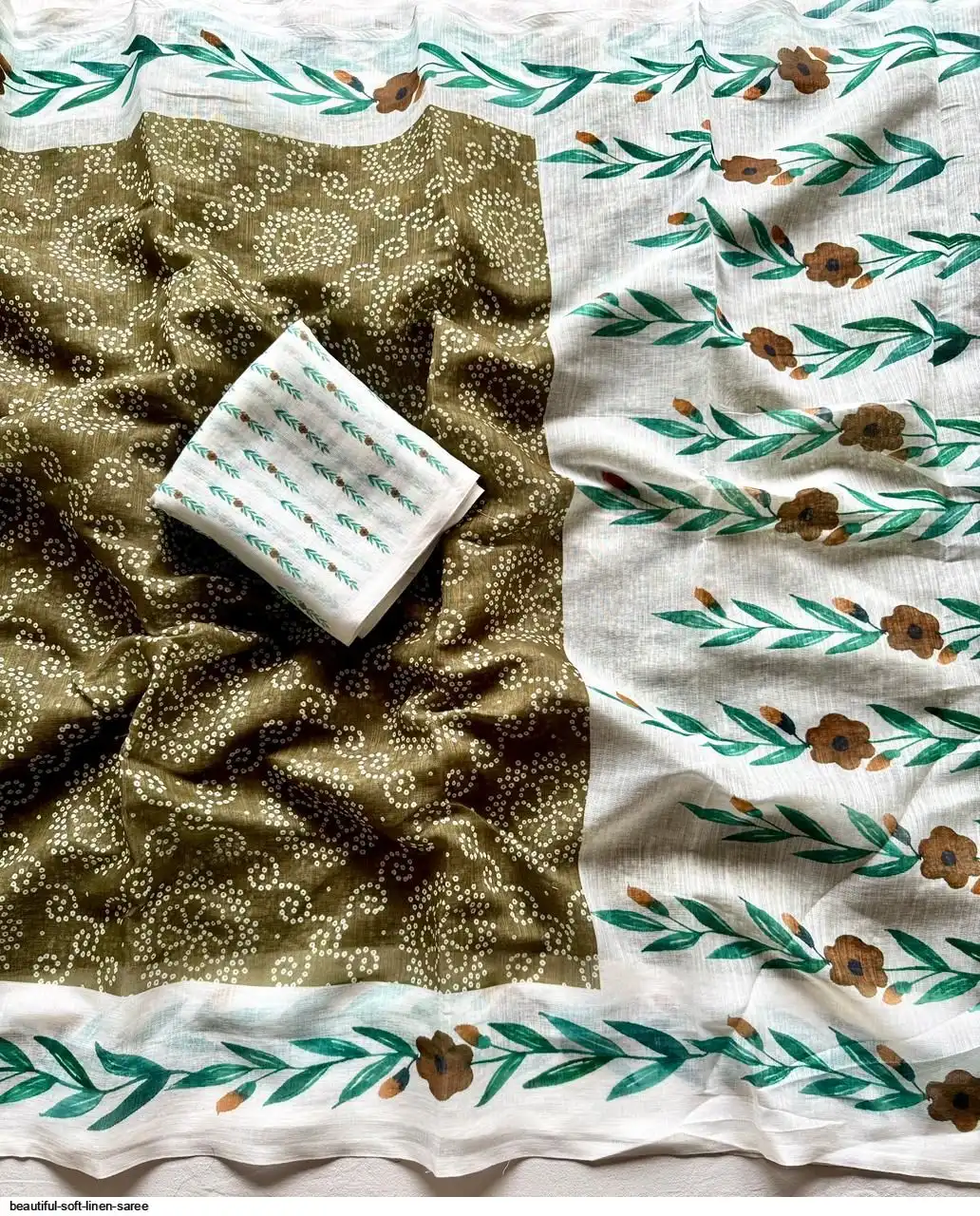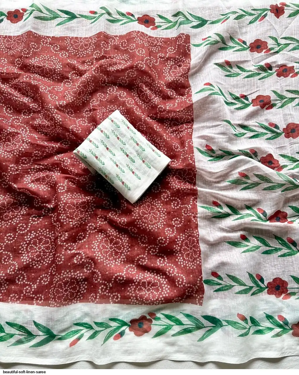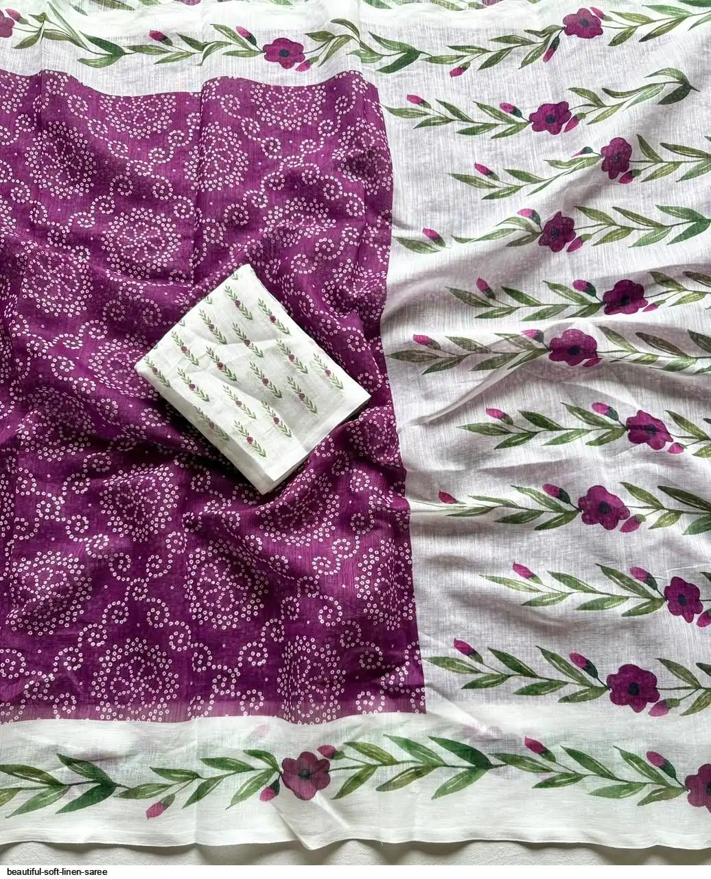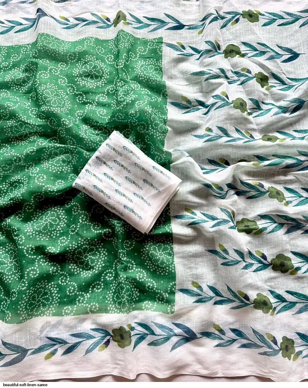 ▶️ Fabric - Soft Linen Fabric And Beautiful 3D Special Bandhej Digital Print With Printed Running Blouse👚