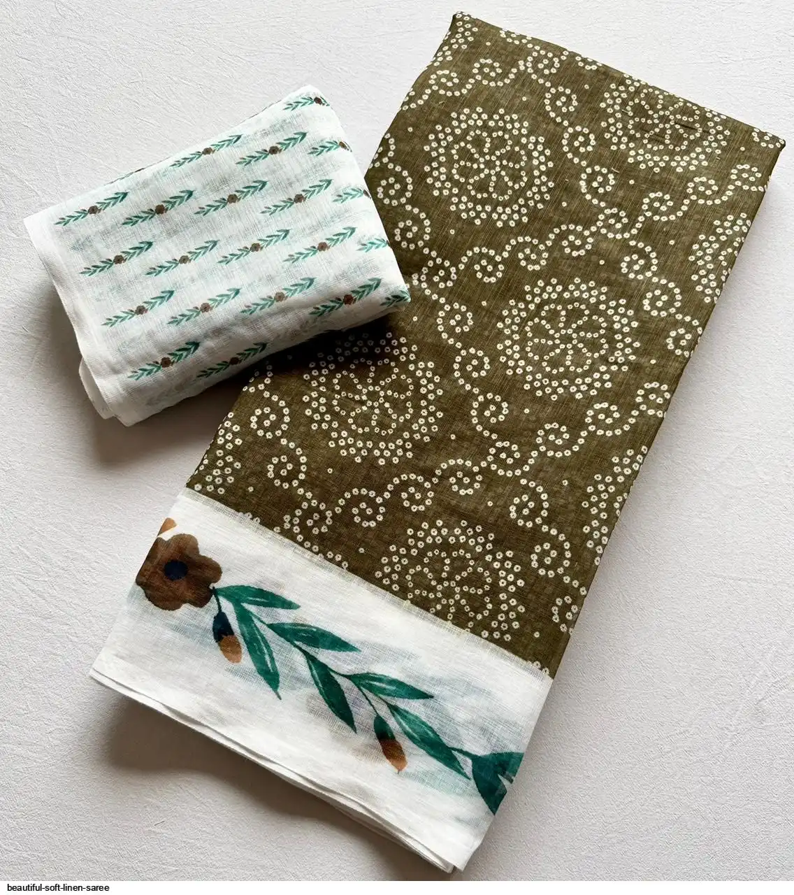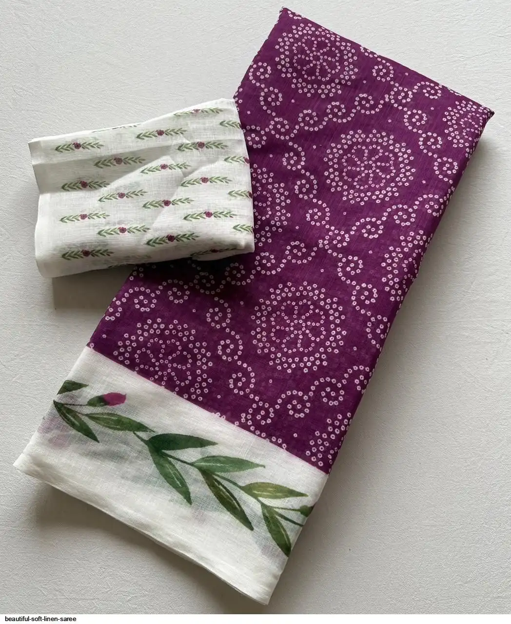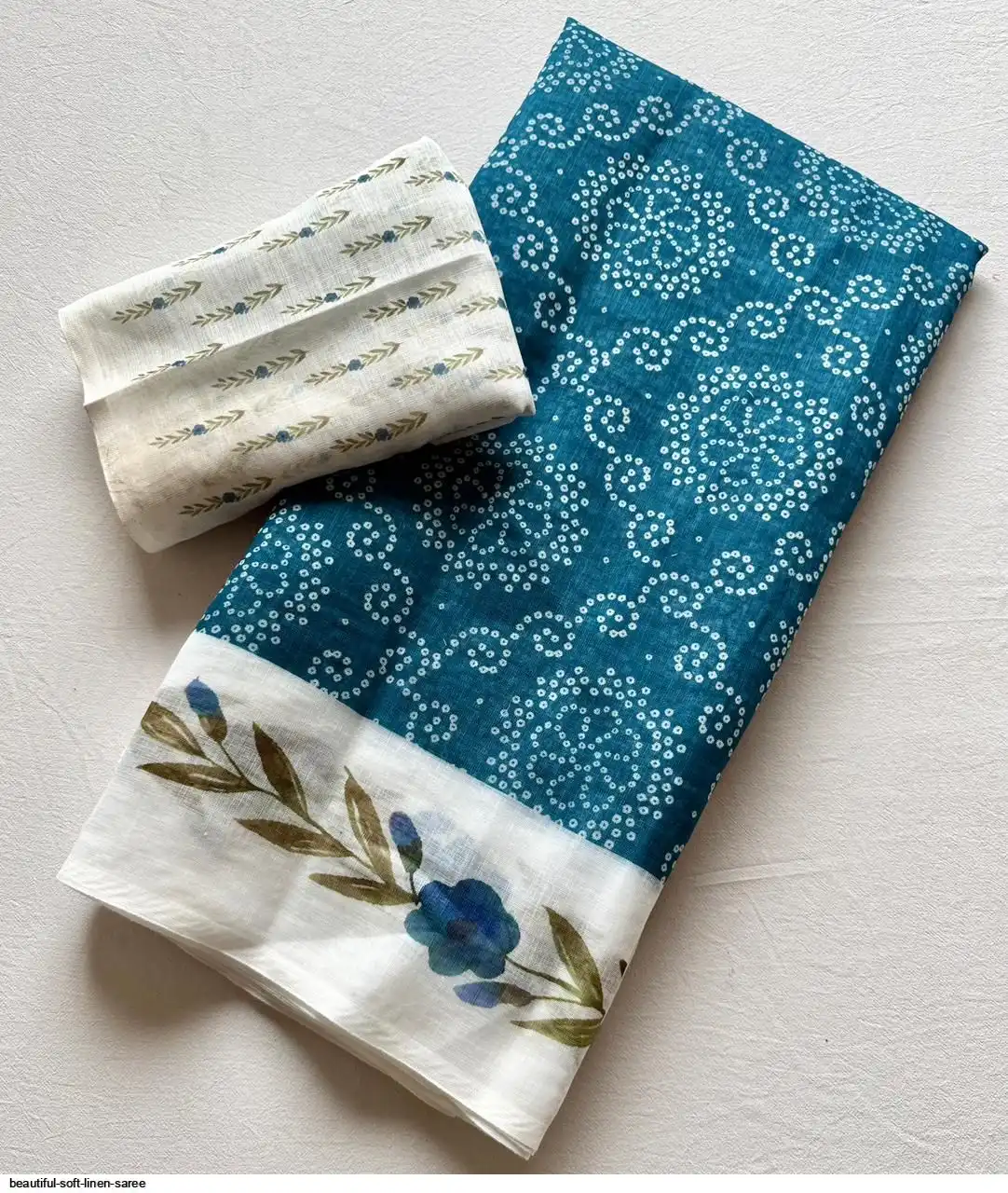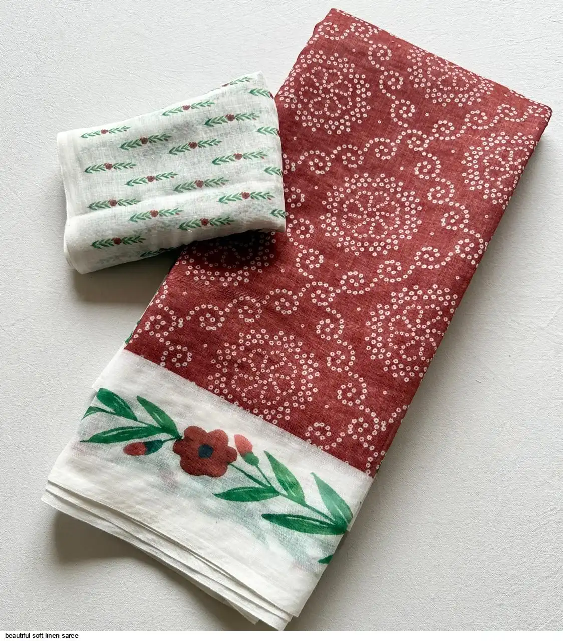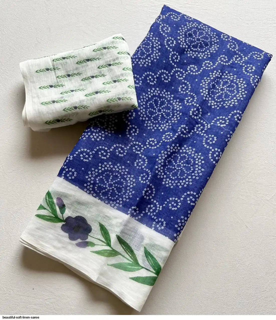 ▶️ Fabric - Soft Linen Fabric And Beautiful 3D Special Bandhej Digital Print With Printed Running Blouse👚