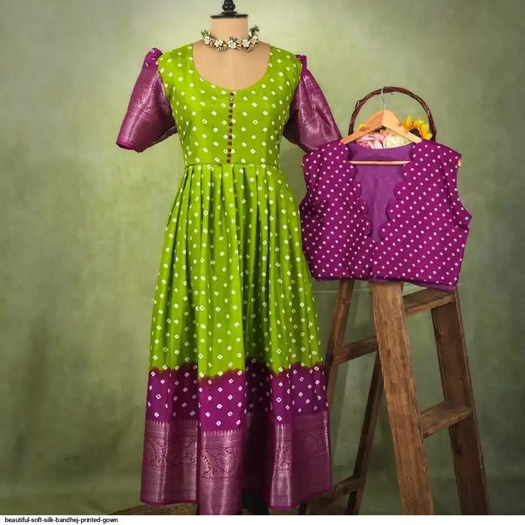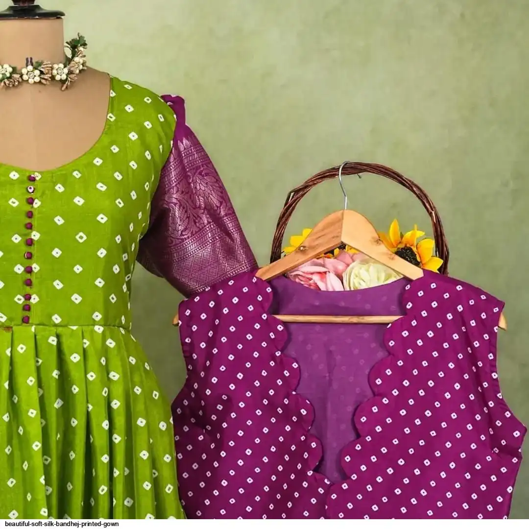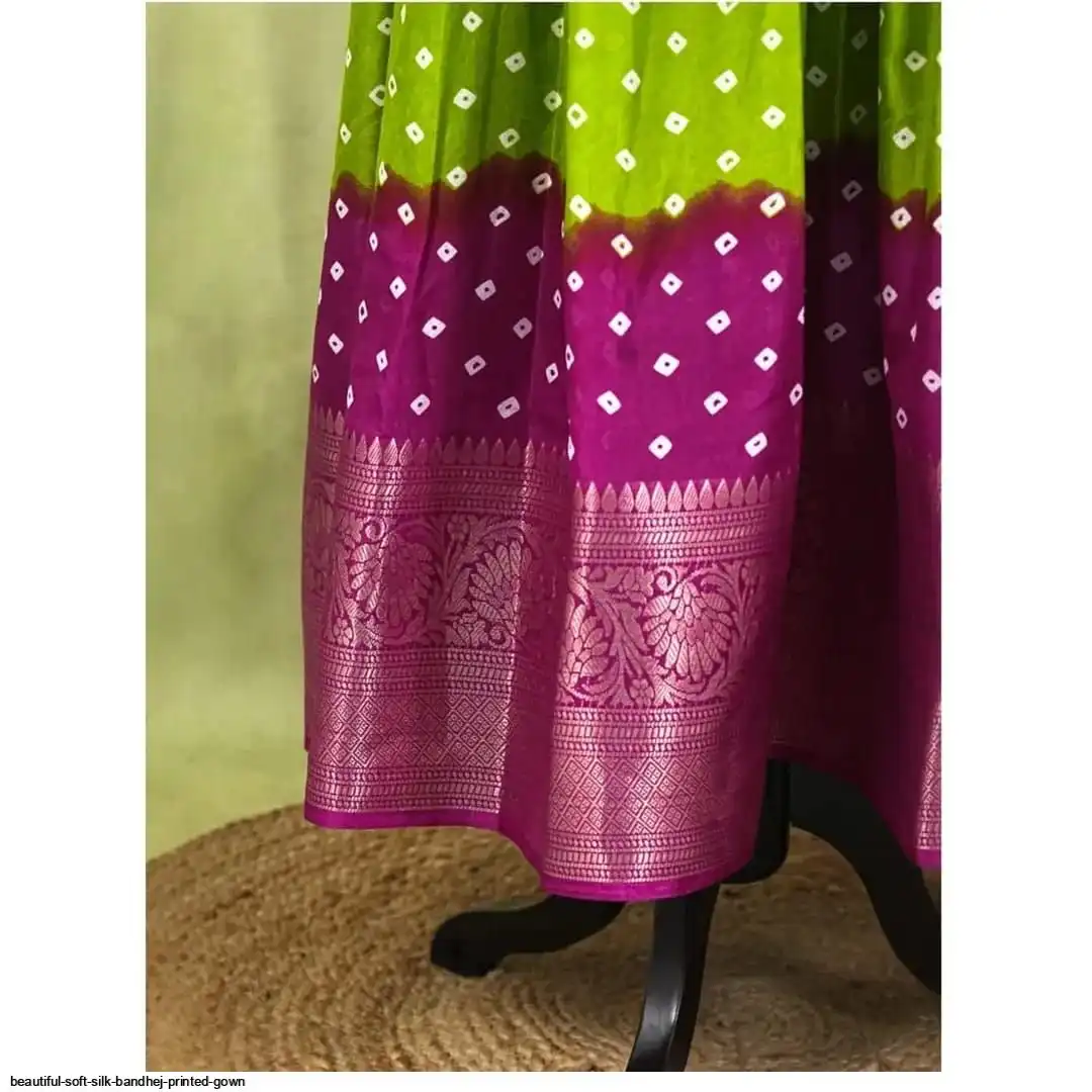 GOWN :- HEAVY SOFT DOLA SILK BANDHEJ PRINTED FABRIC WITH JACQUARD Border along with FULL INNER