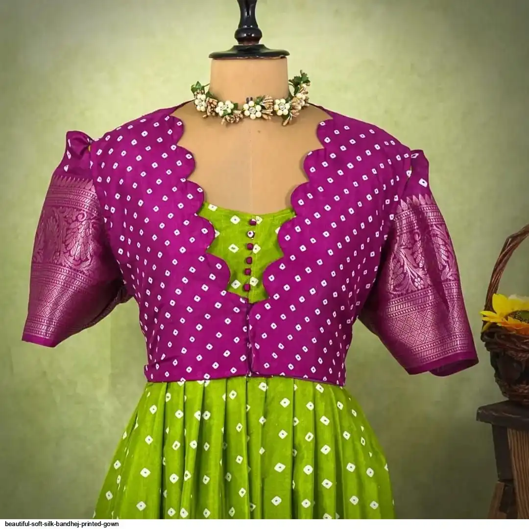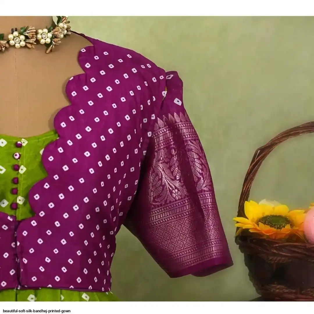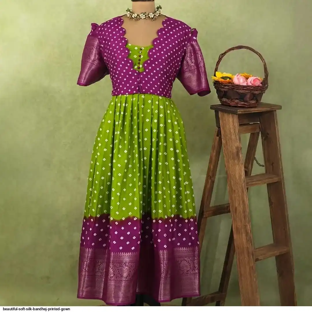 GOWN :- HEAVY SOFT DOLA SILK BANDHEJ PRINTED FABRIC WITH JACQUARD Border along with FULL INNER