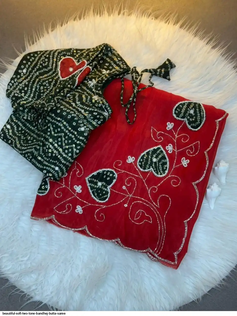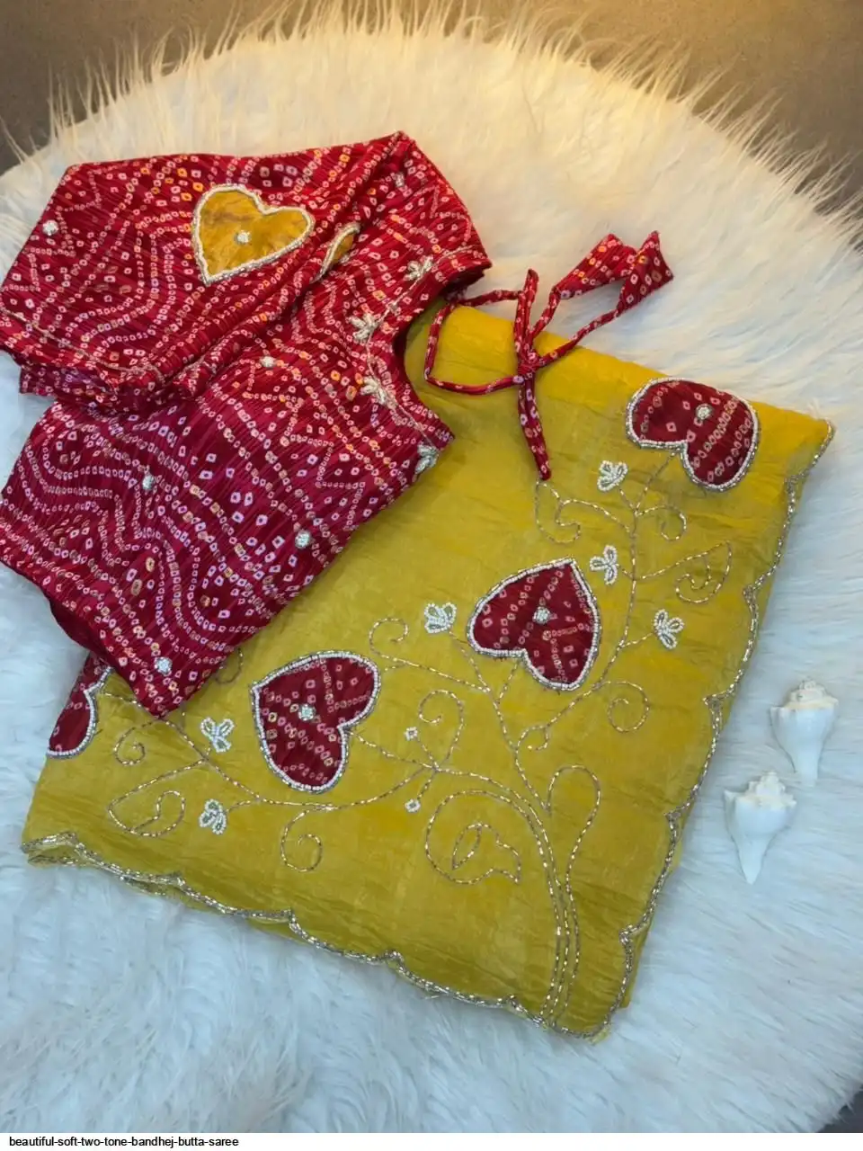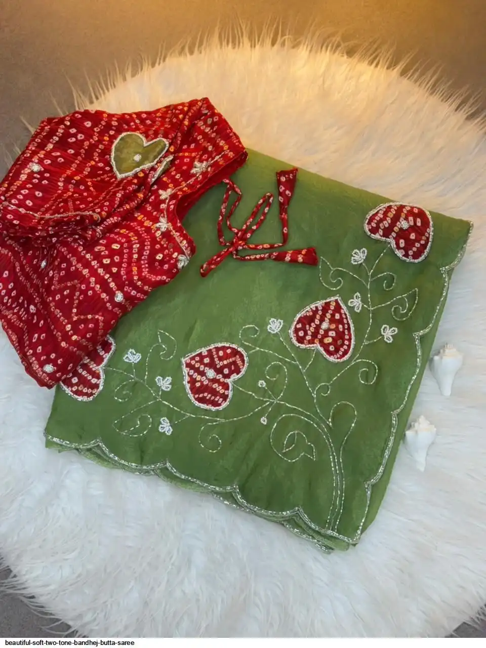 ALONG WITH BANDHEJ HANDWORK CUTDANA BUTTA AND RICH PALLU FLOWER BANDHEJ BUTTA