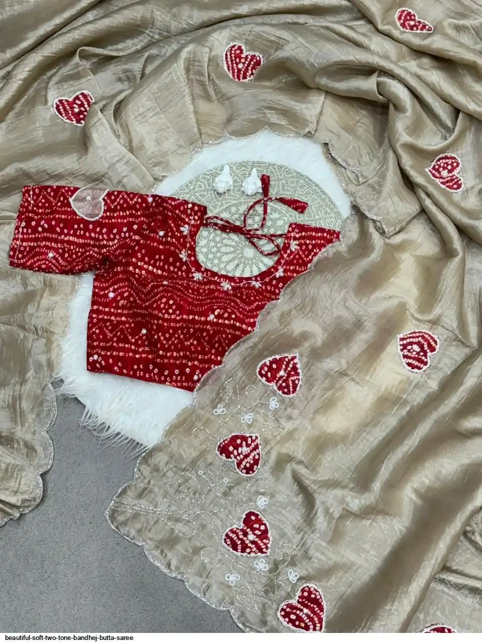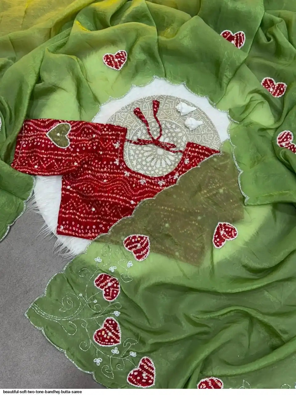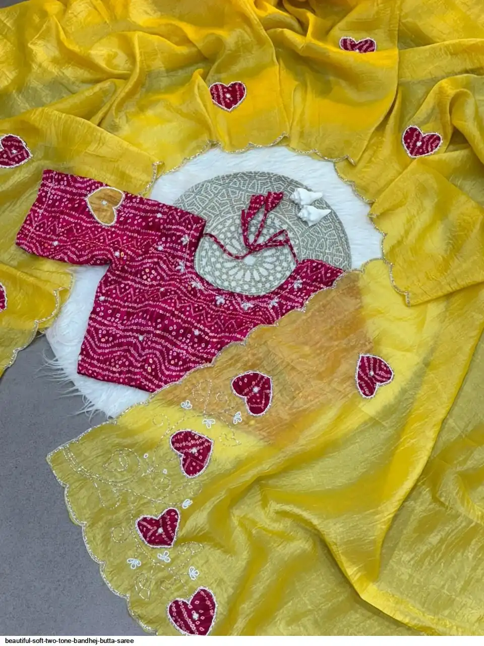 ALONG WITH BANDHEJ HANDWORK CUTDANA BUTTA AND RICH PALLU FLOWER BANDHEJ BUTTA