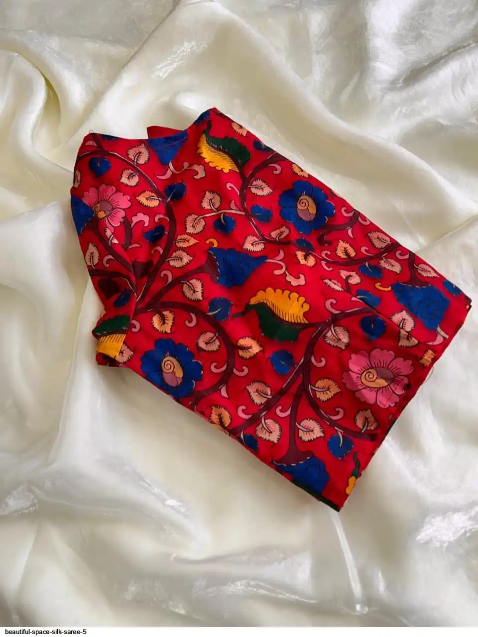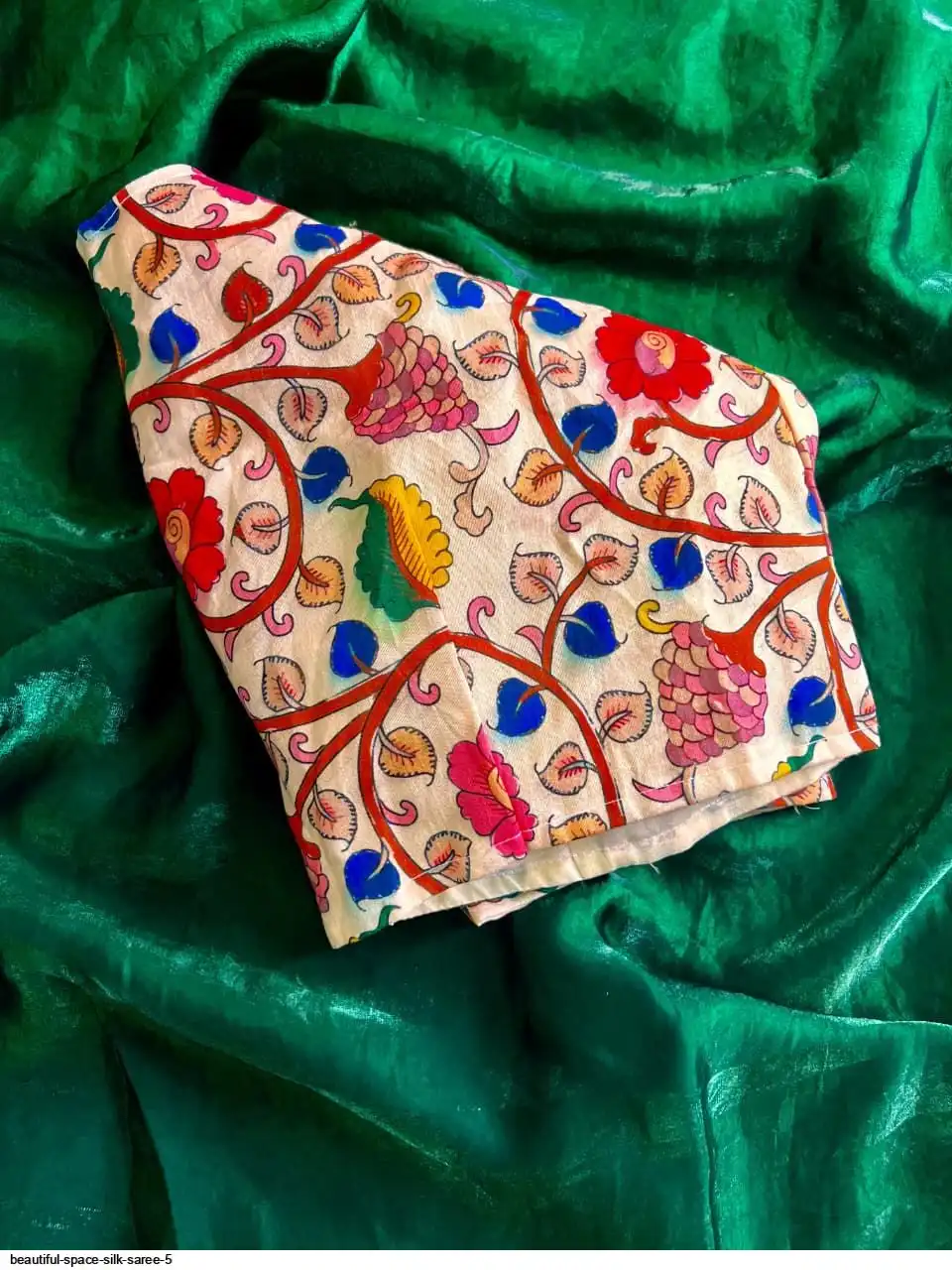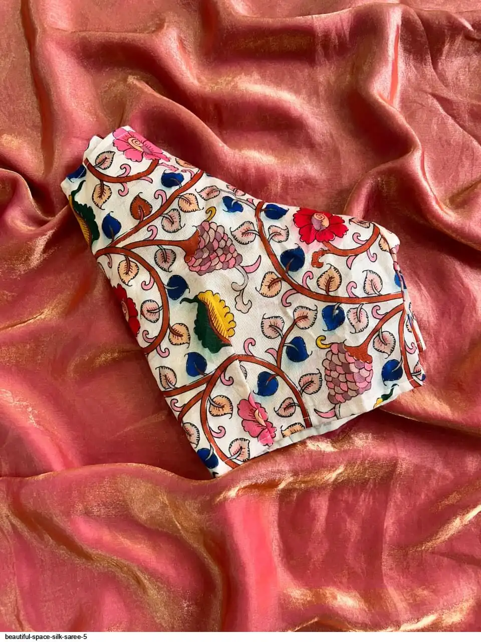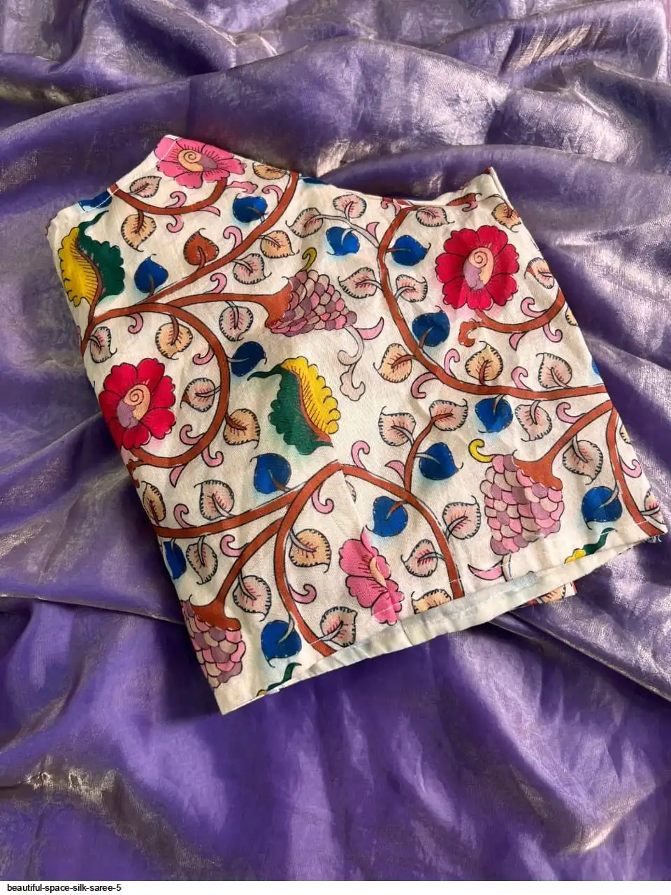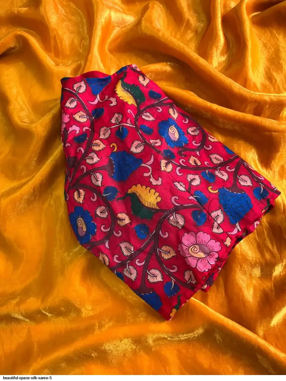 Space Silk Saree With beautiful kalamkari printed Stiched Blouse