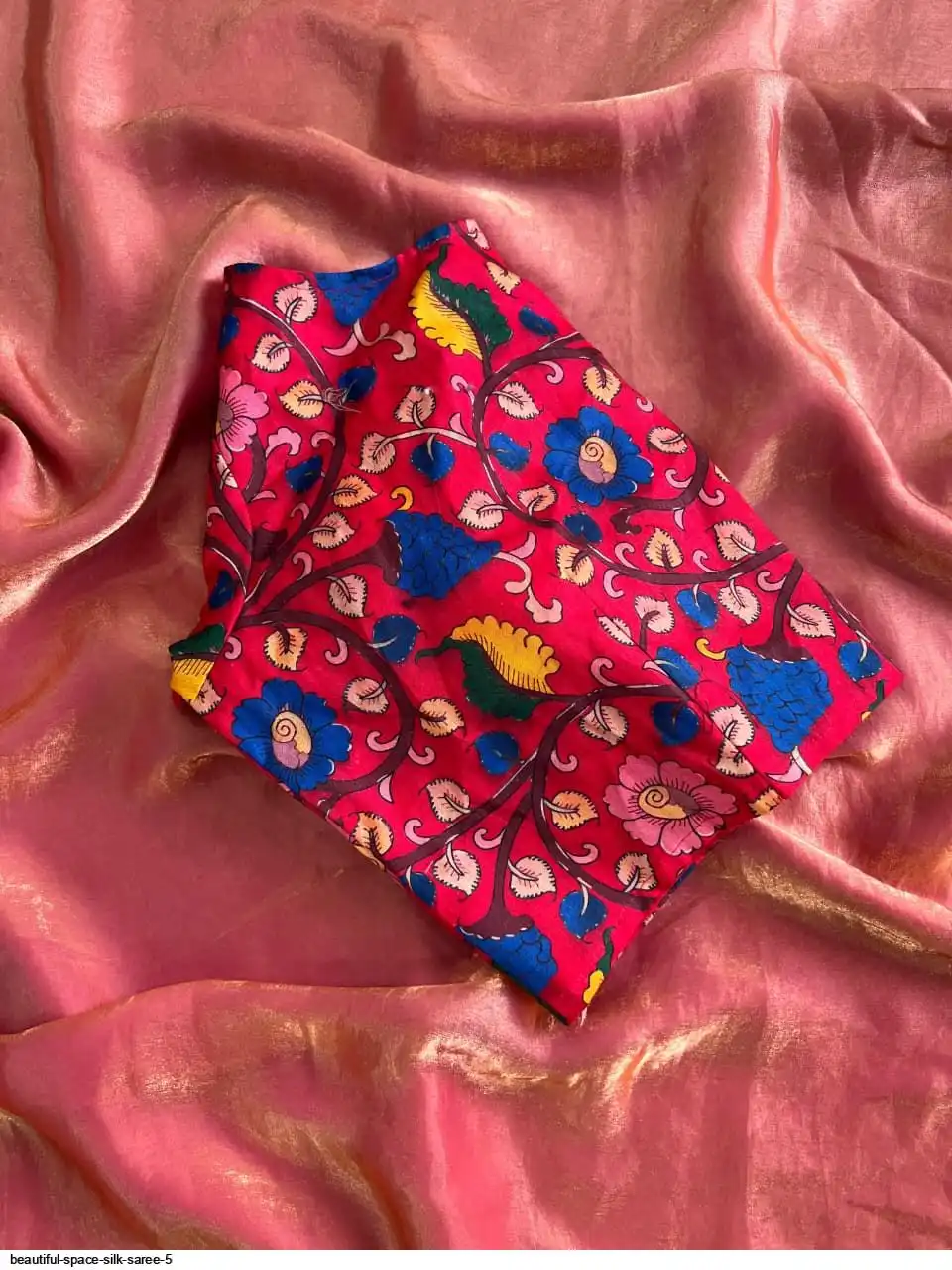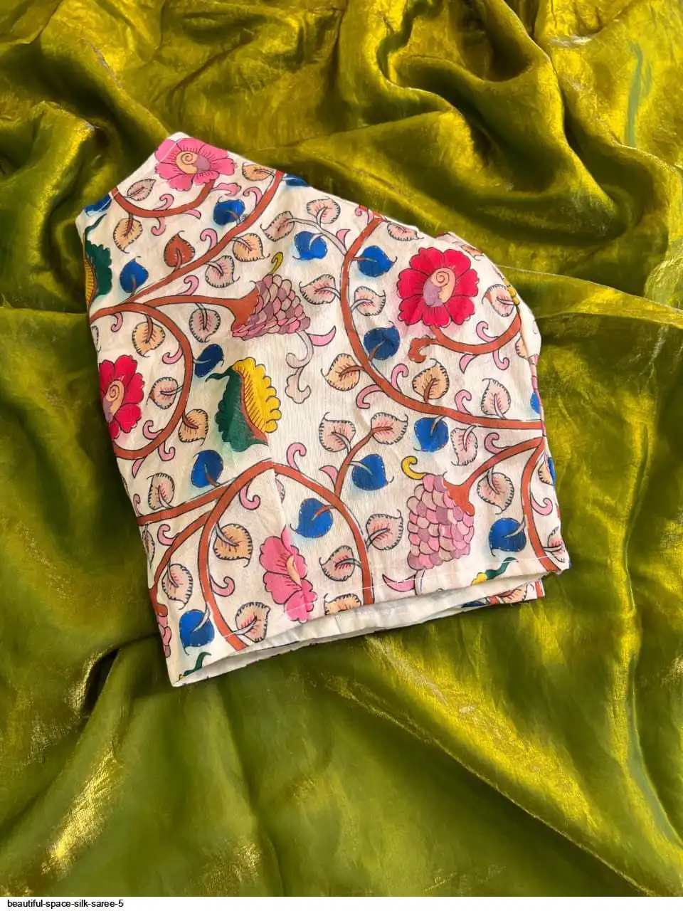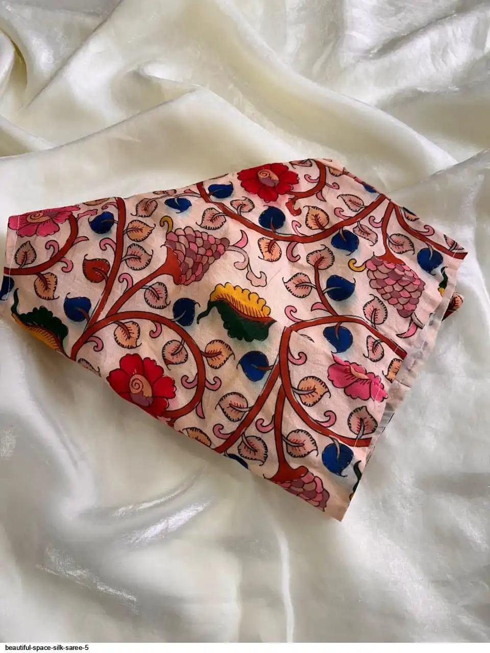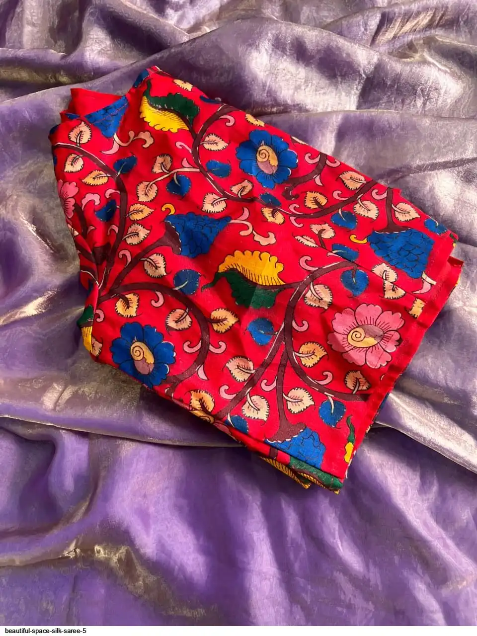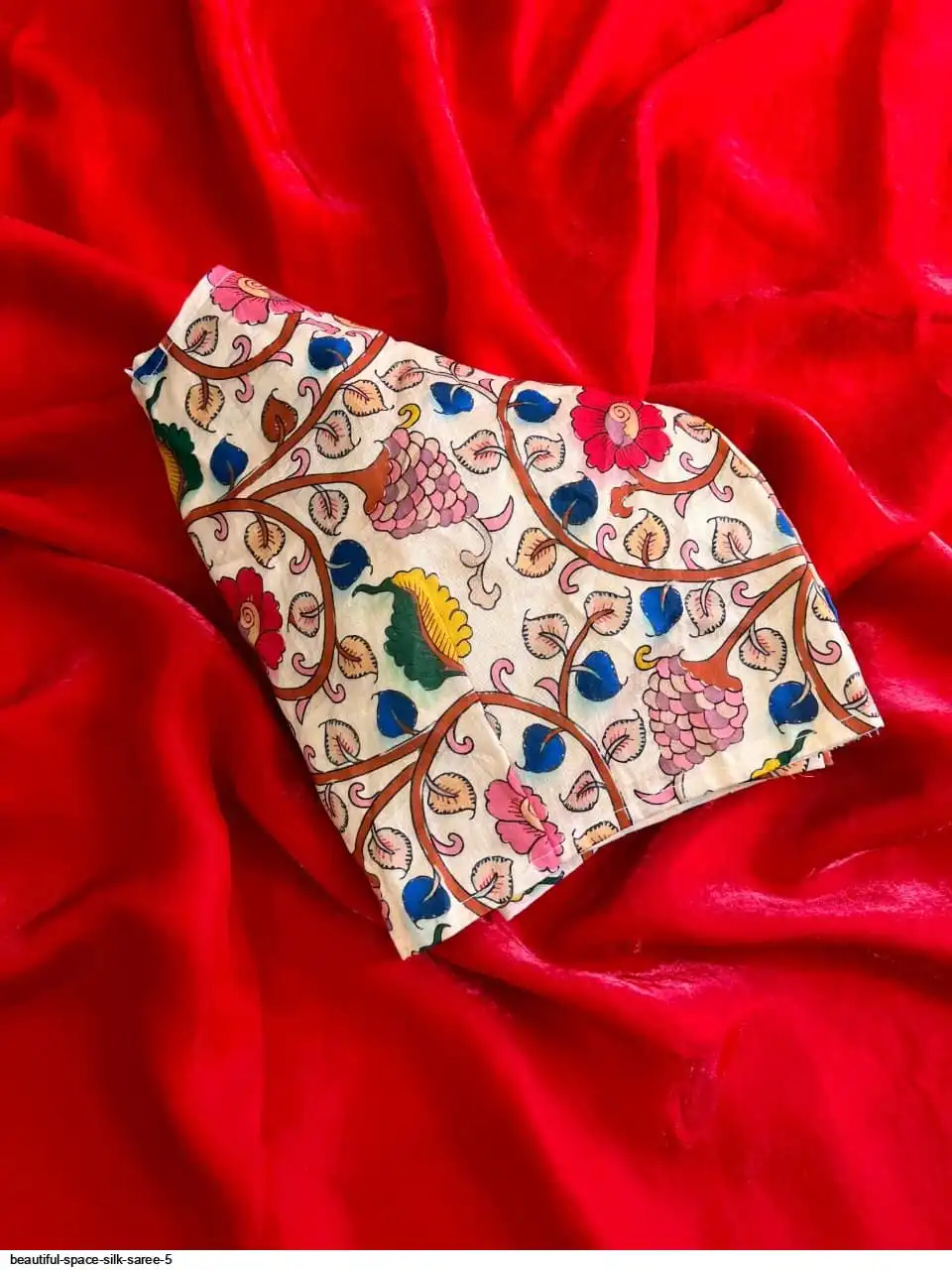 Space Silk Saree With beautiful kalamkari printed Stiched Blouse