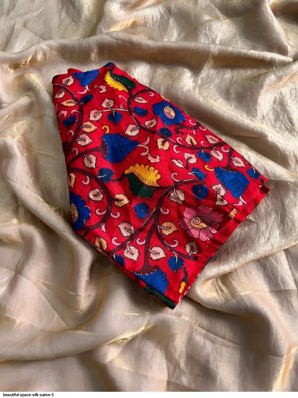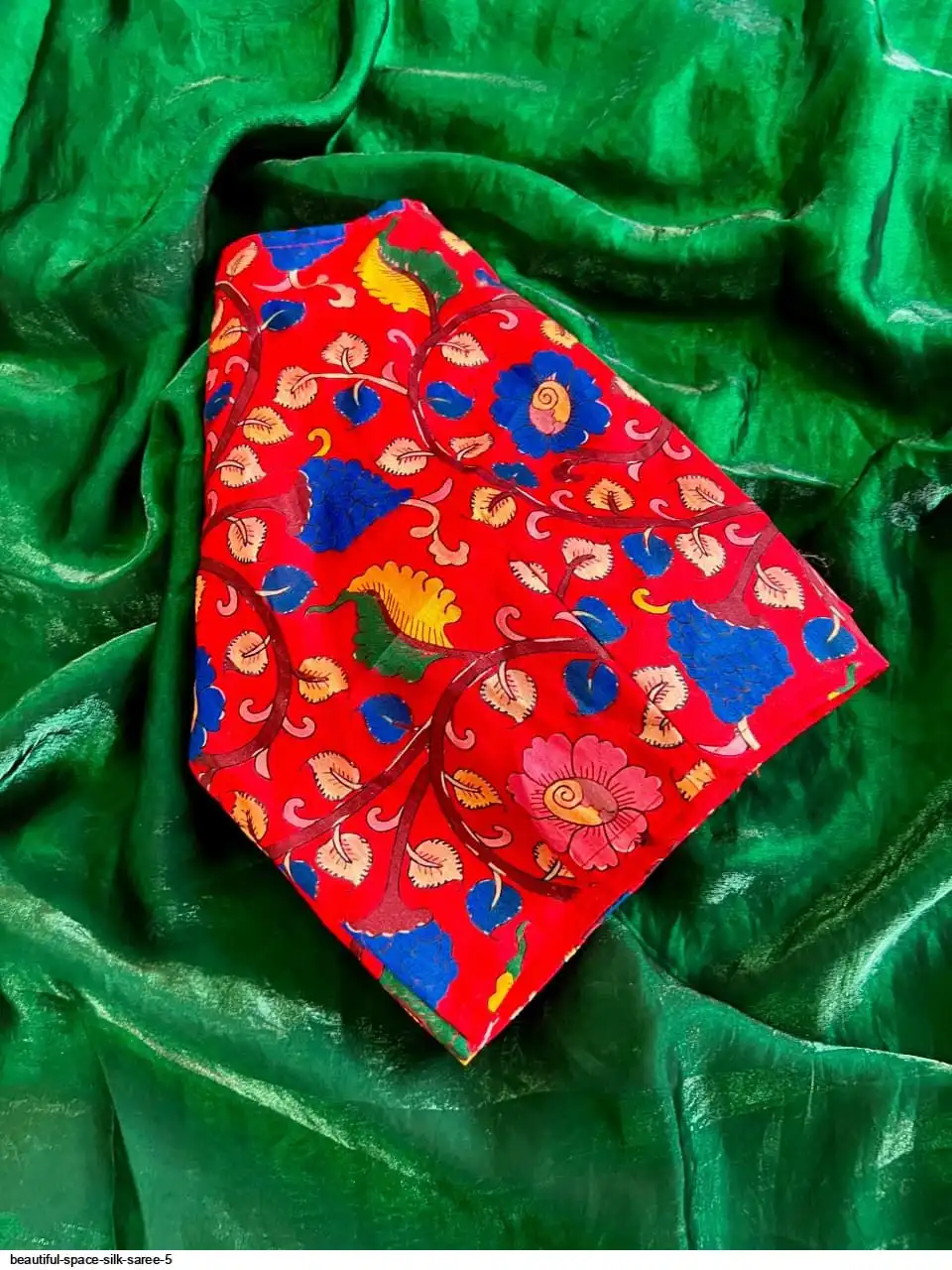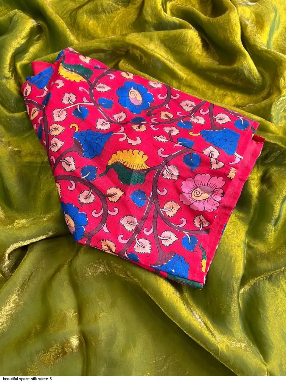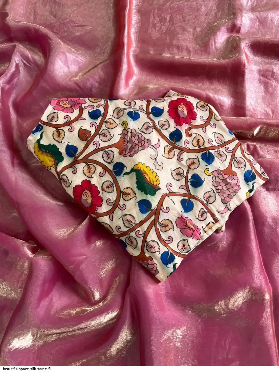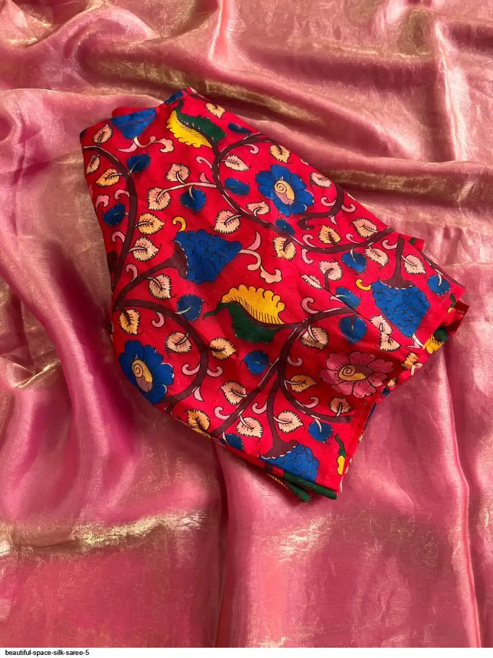 Space Silk Saree With beautiful kalamkari printed Stiched Blouse