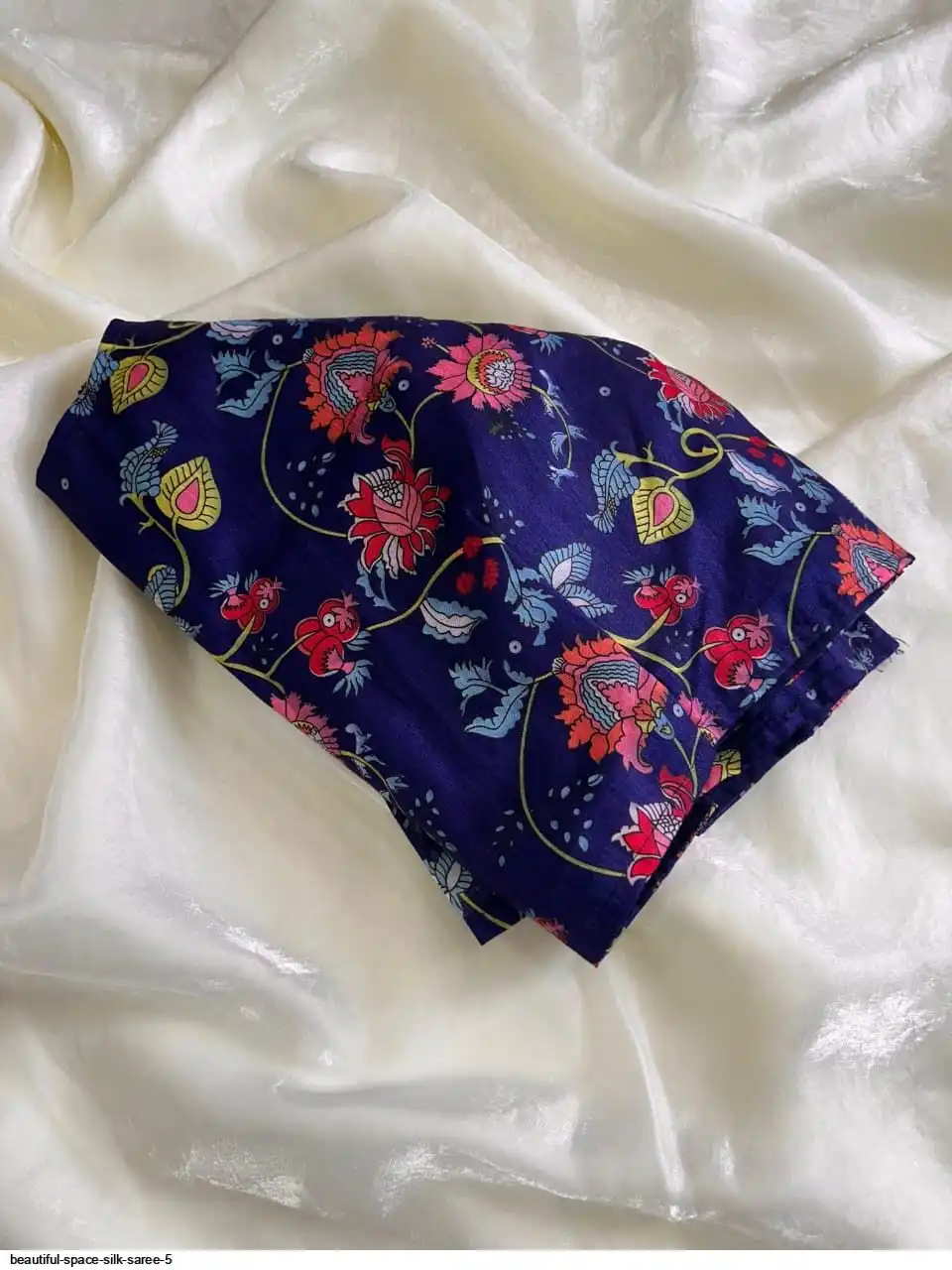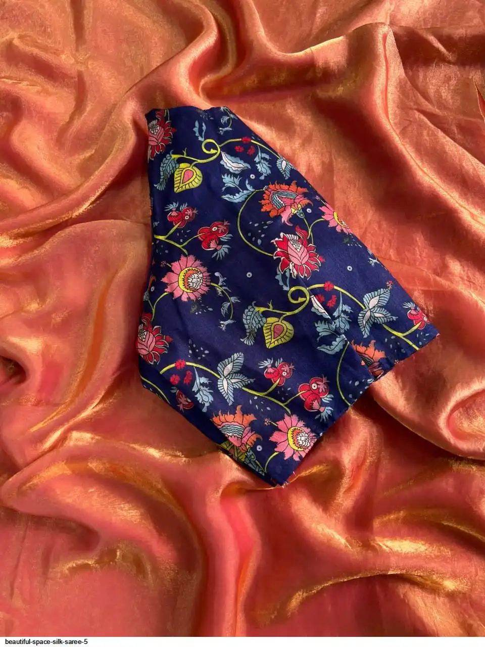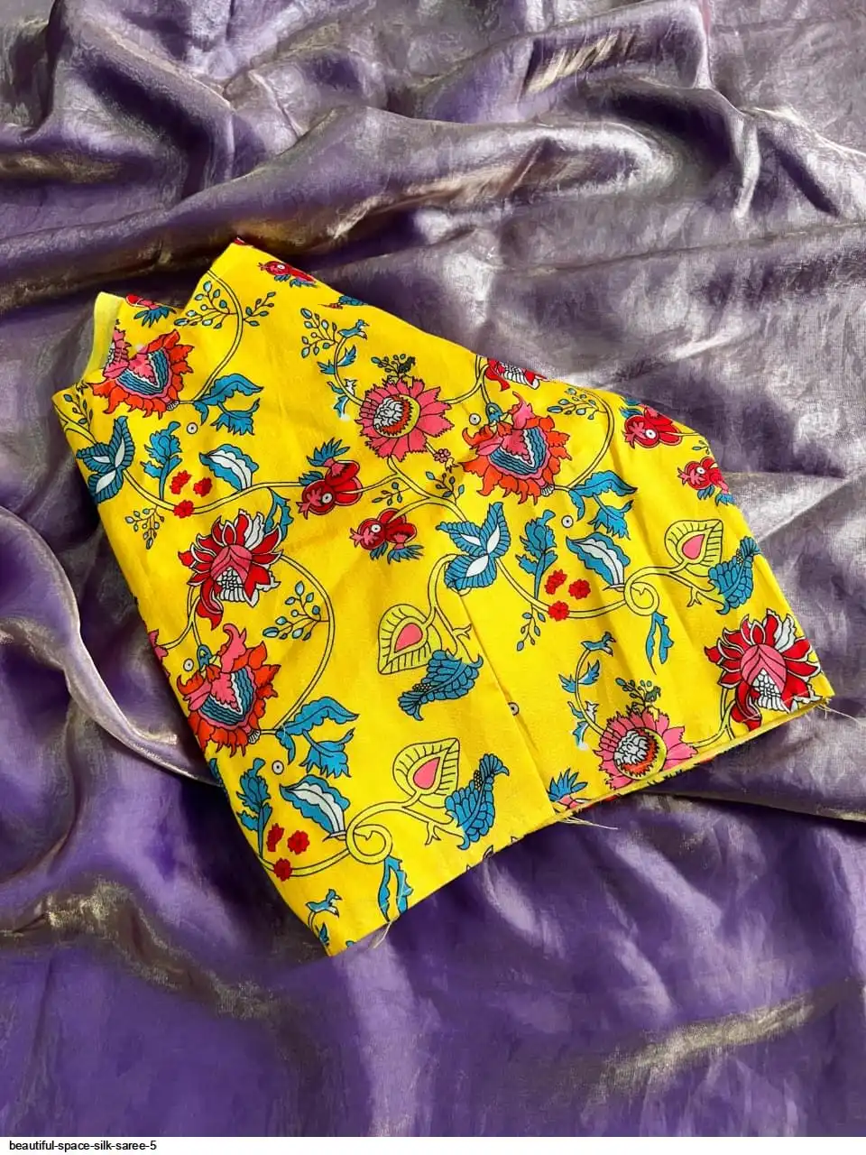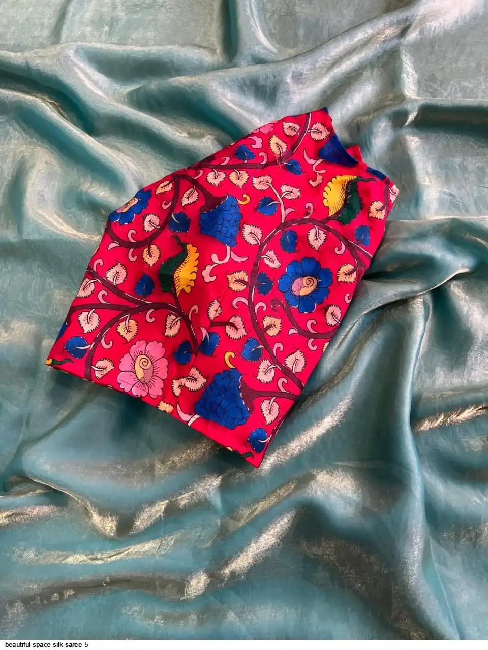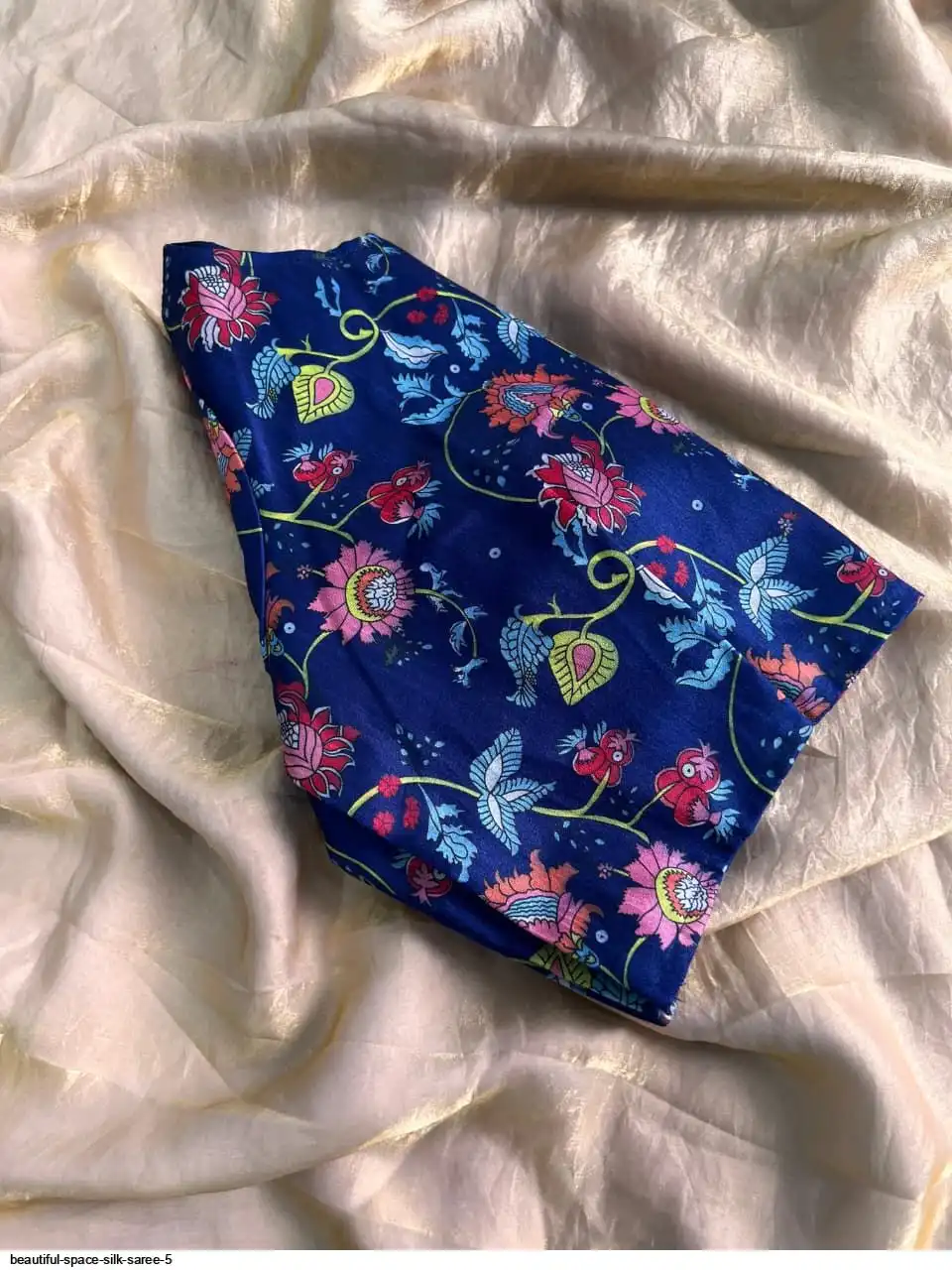 Space Silk Saree With beautiful kalamkari printed Stiched Blouse