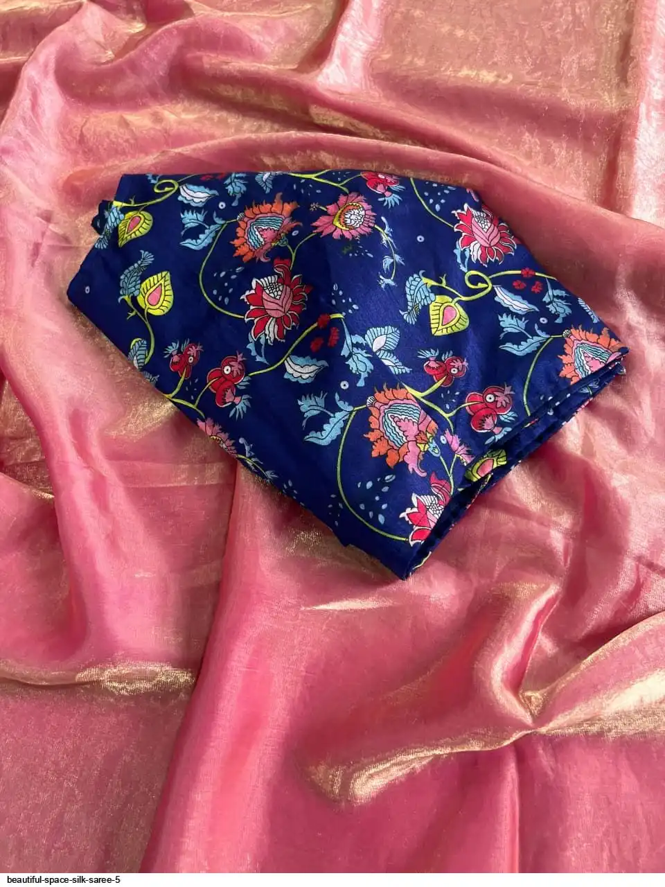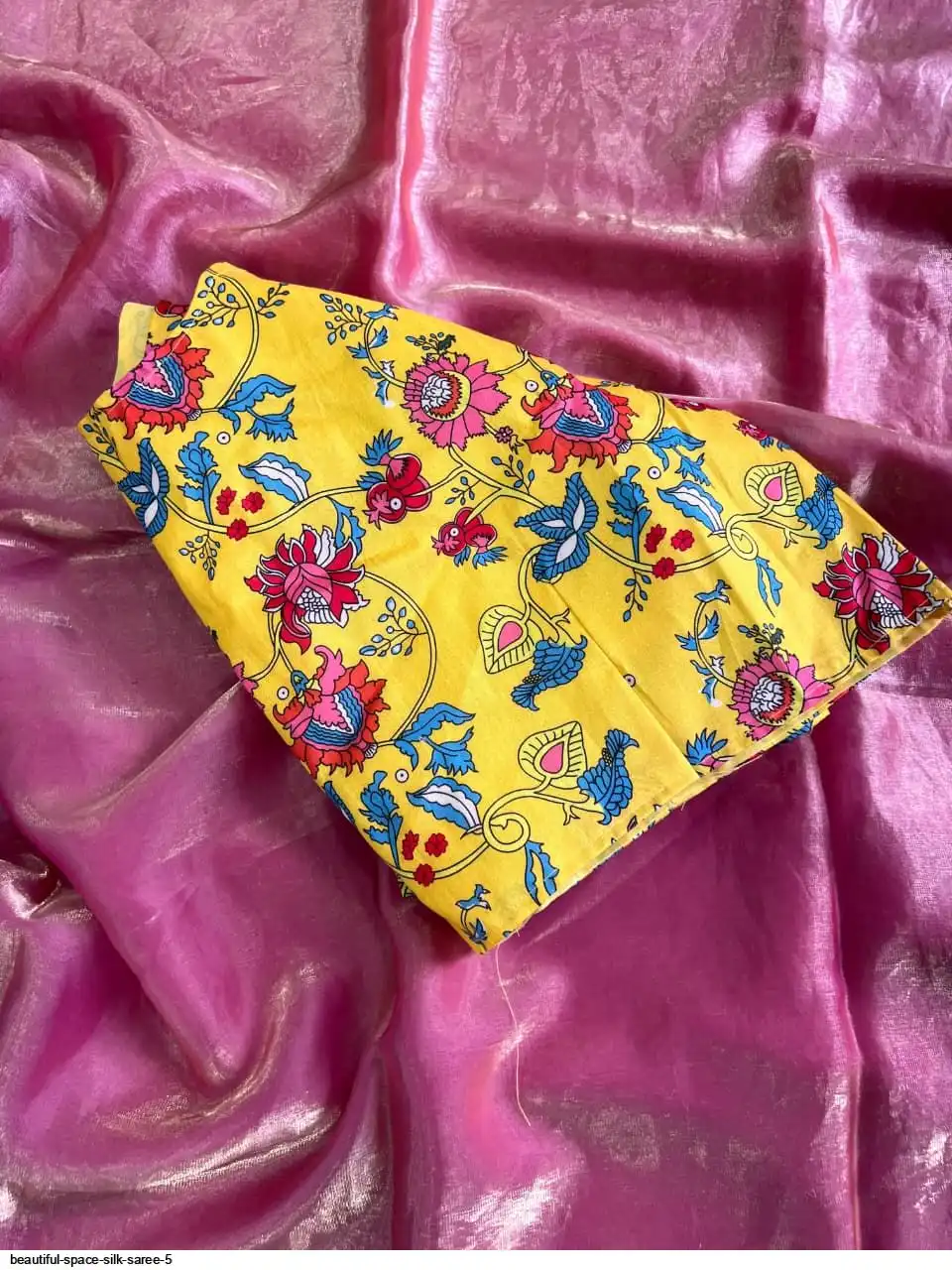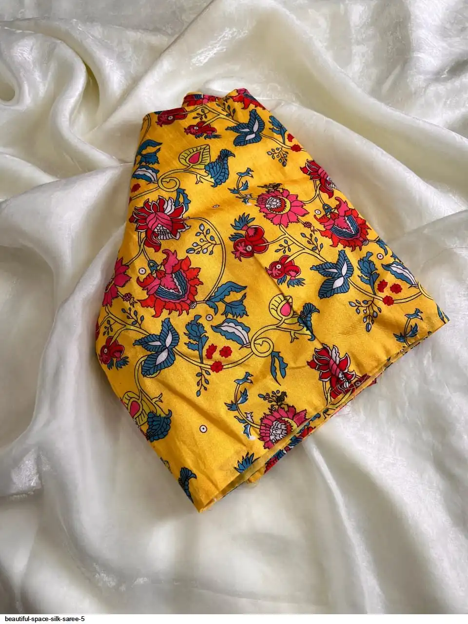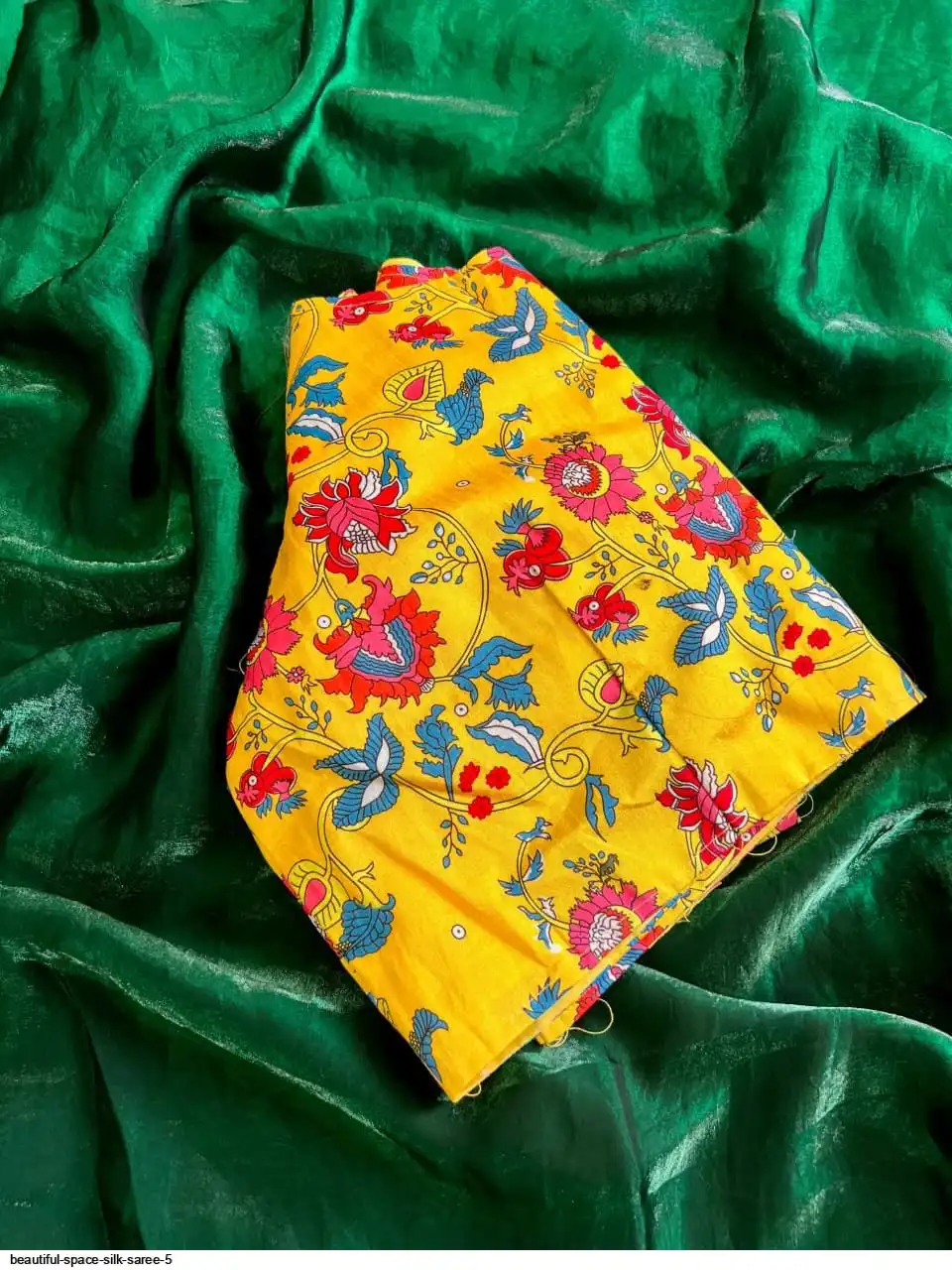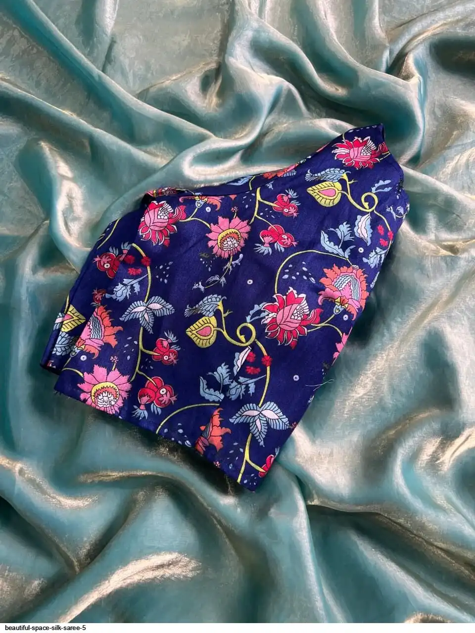 Space Silk Saree With beautiful kalamkari printed Stiched Blouse