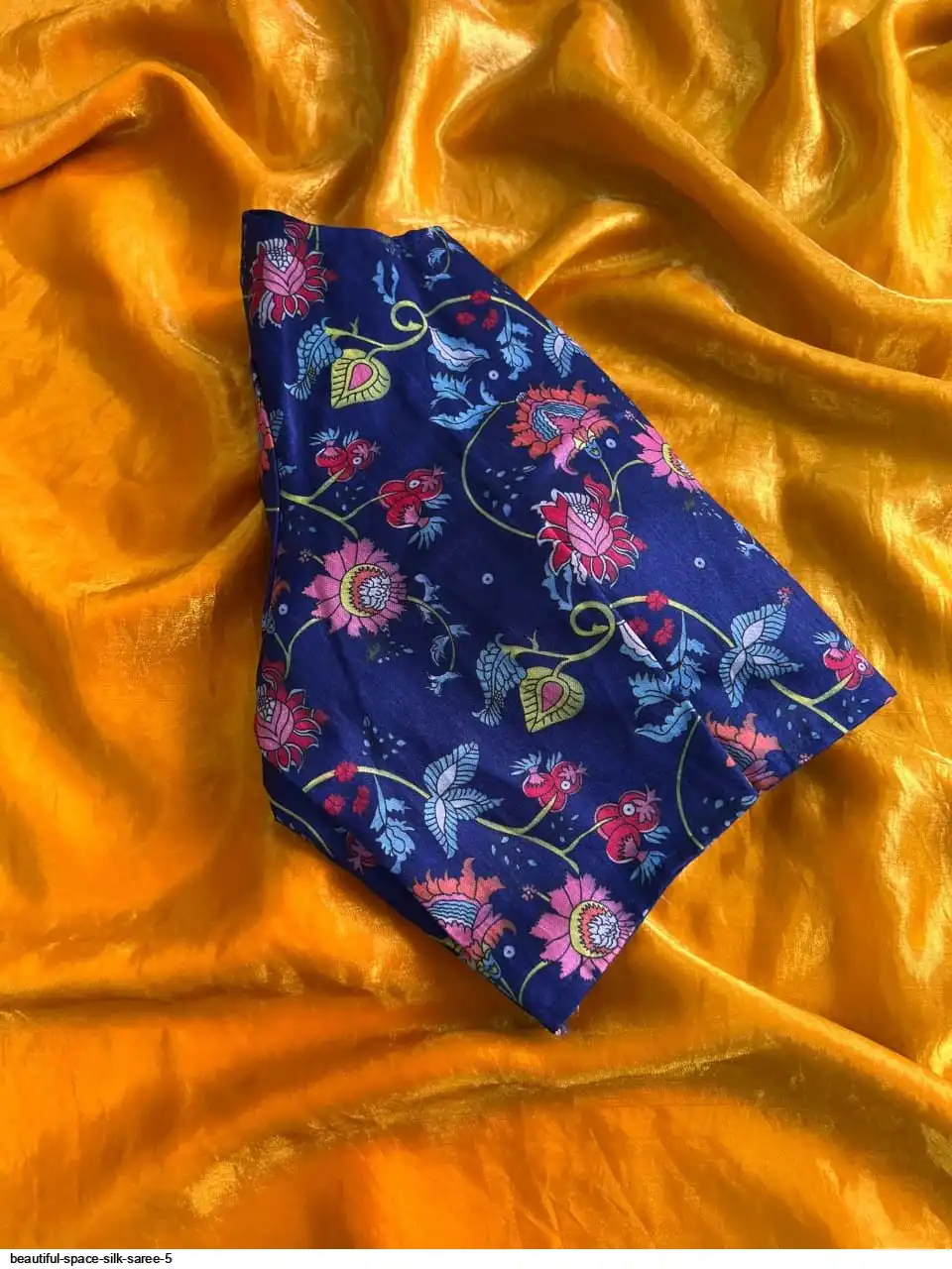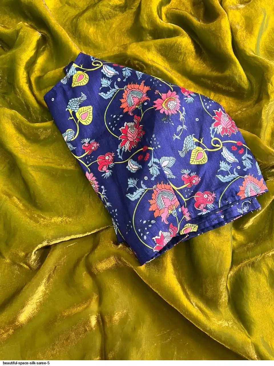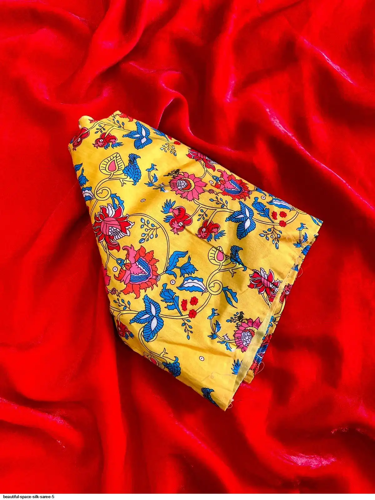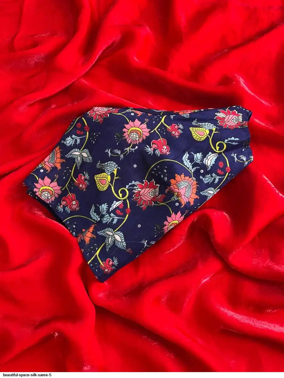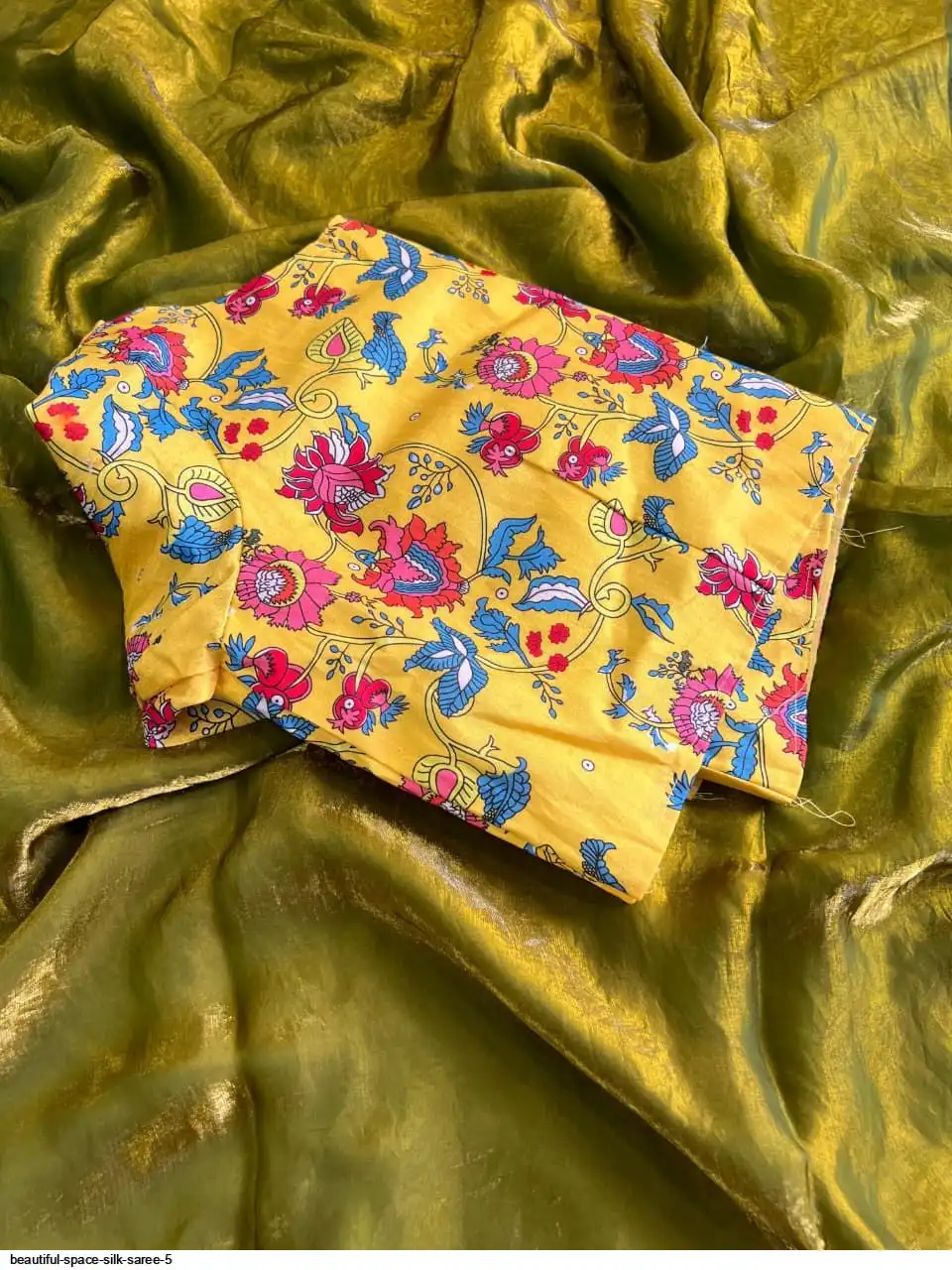 Space Silk Saree With beautiful kalamkari printed Stiched Blouse