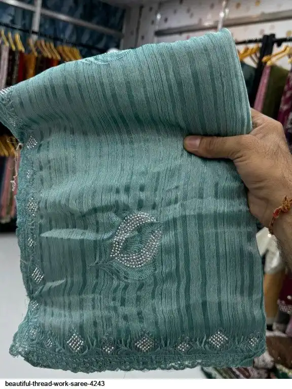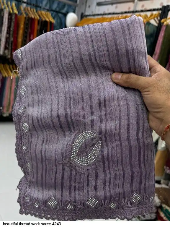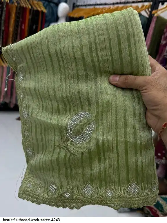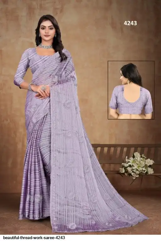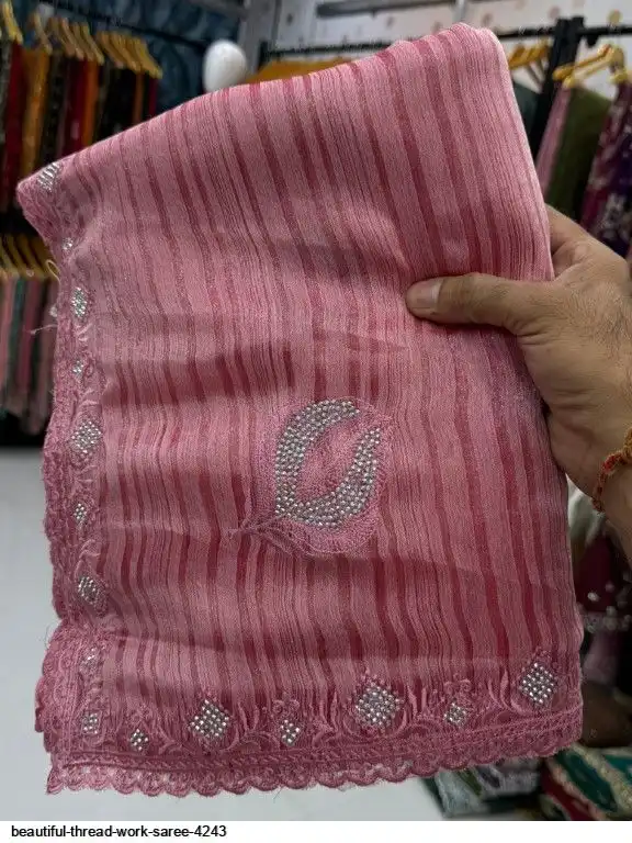 Saree Work :- Light Weight Thread Work With Swarocky Work