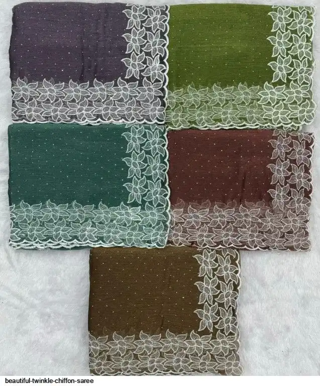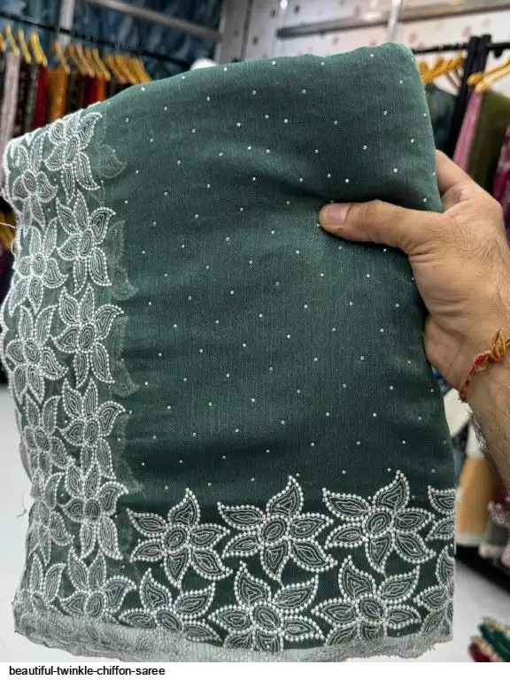 Work :- Fancy Lightweight Lakhnavi Thread Embroidery Work With Stone Work.