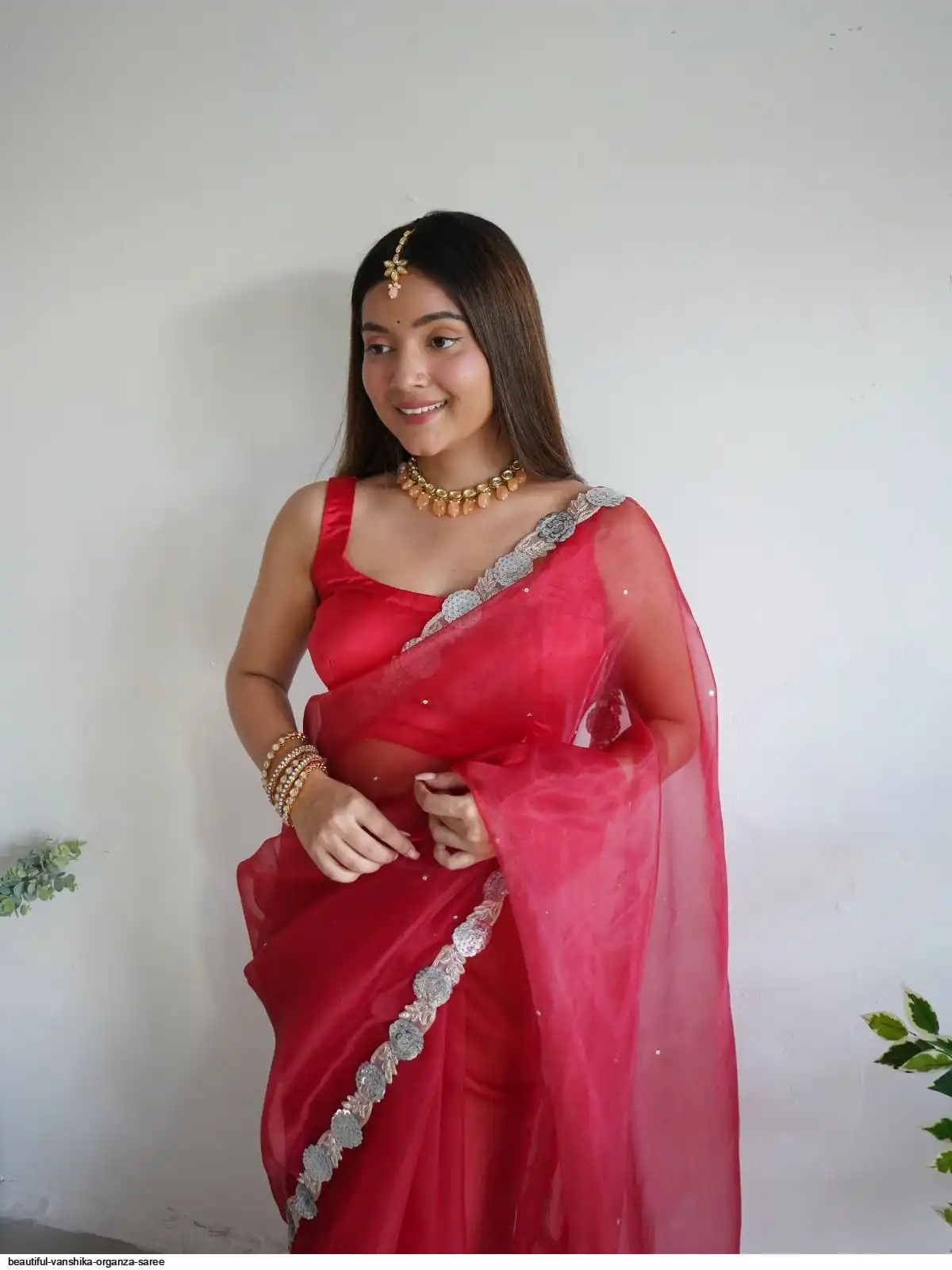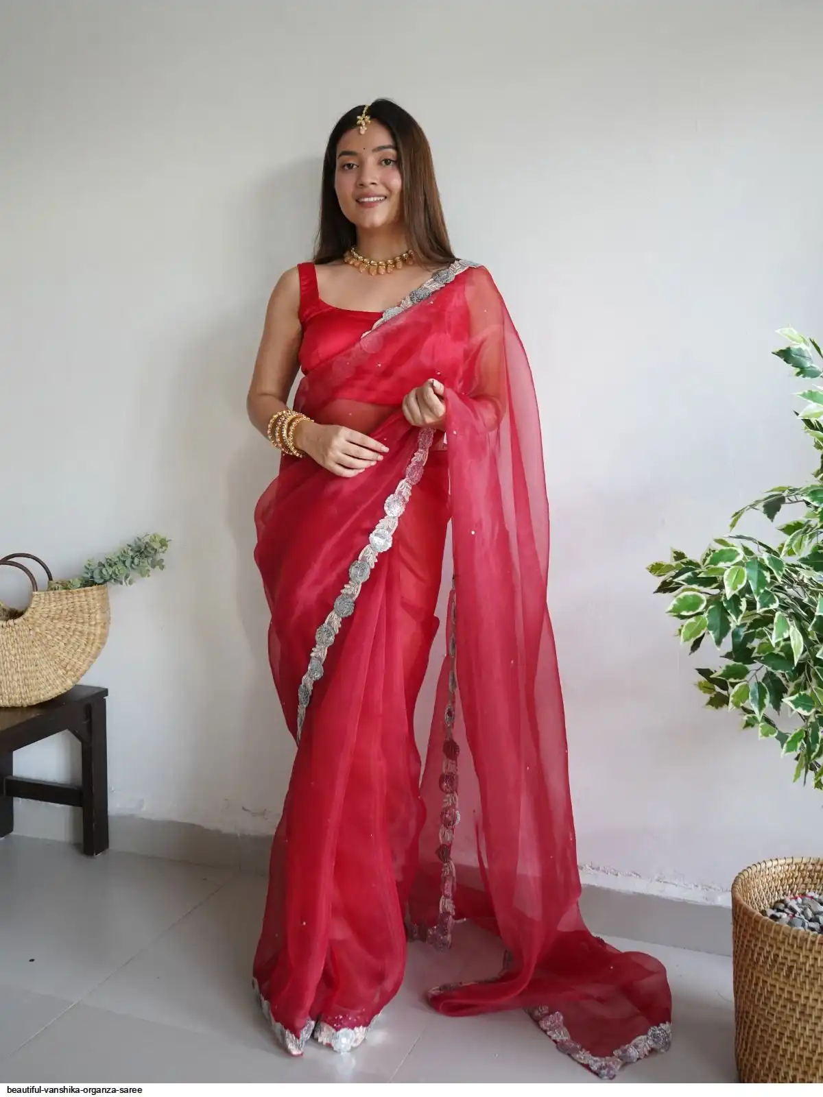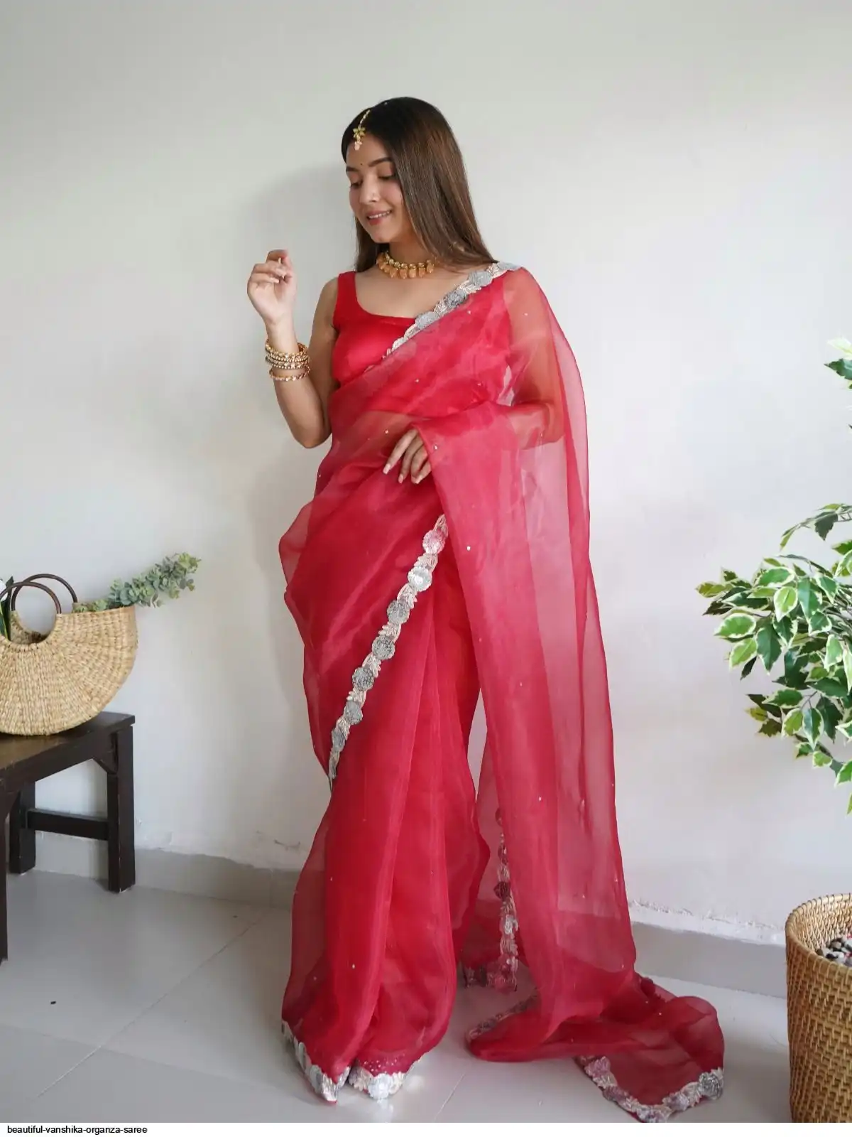 Work :Organza saree with Sequence Work border with banglori satin silk blouse