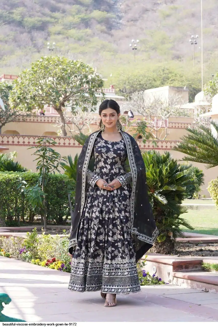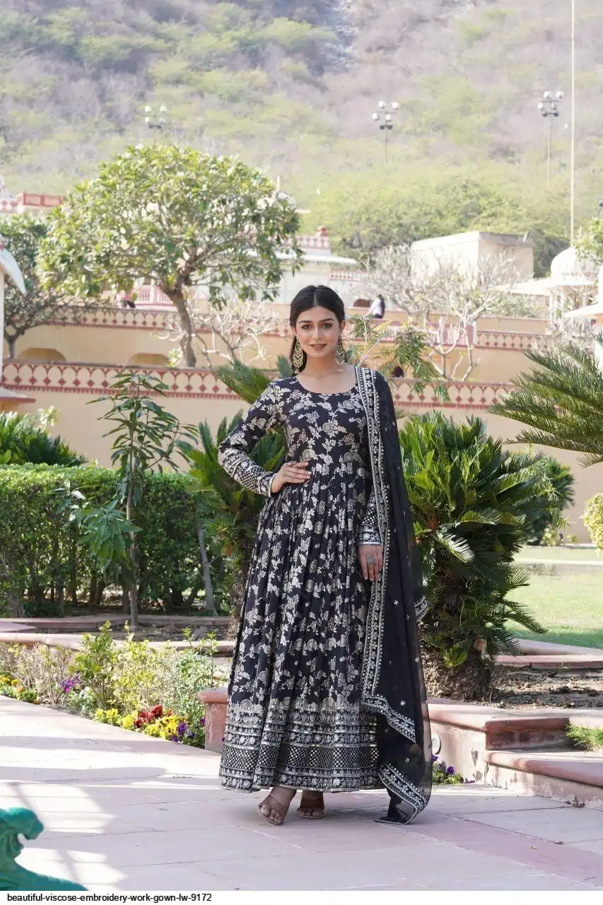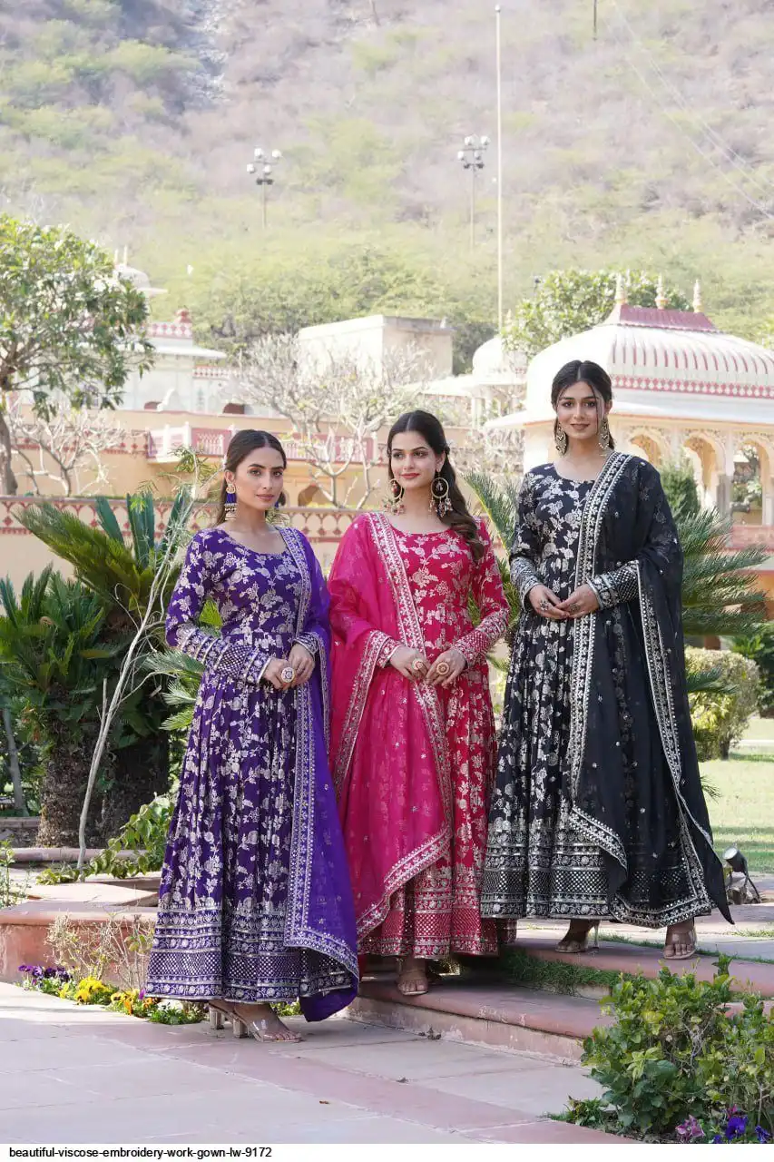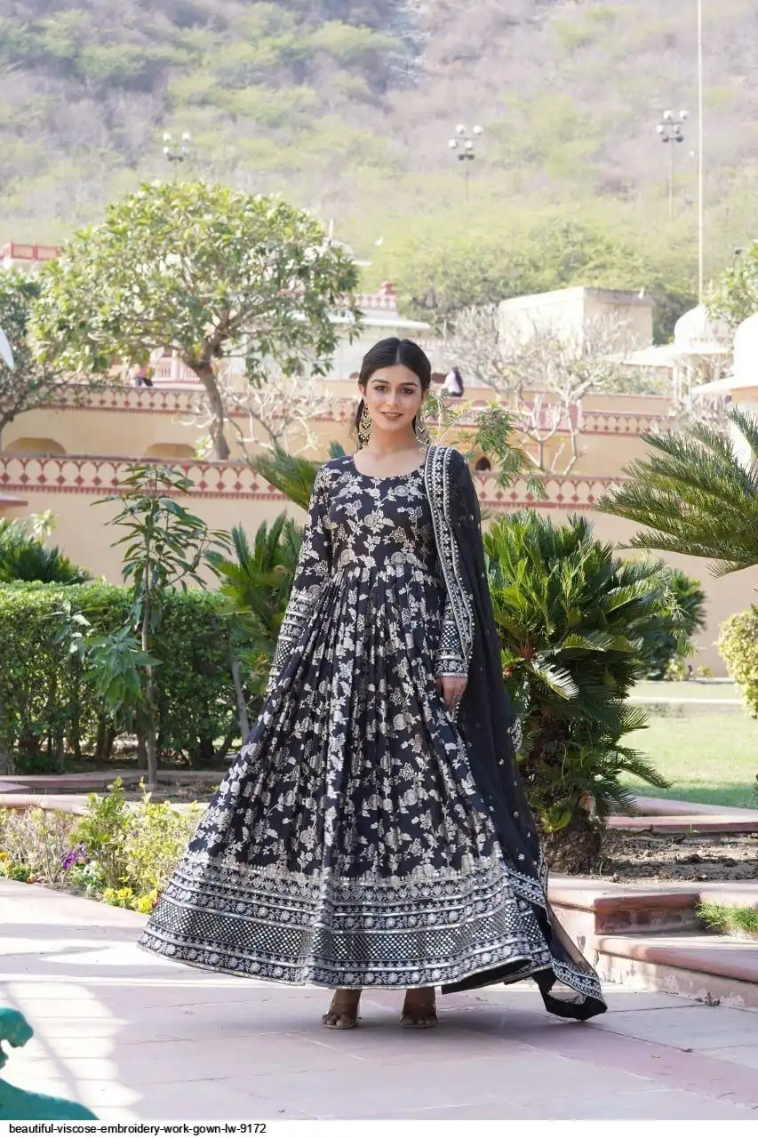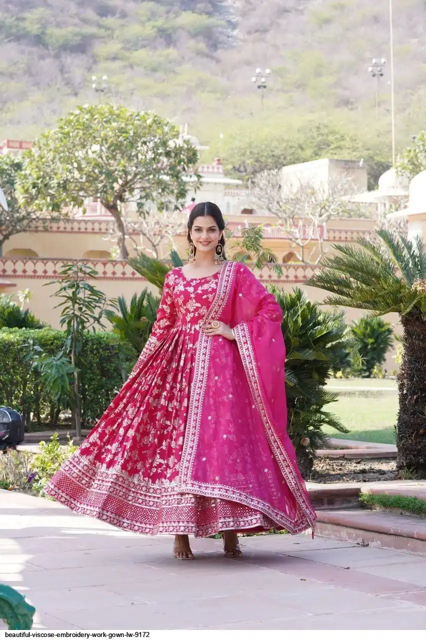 Viscose Dyable Jacquard Gown With Sequins Embroidered Work and Russian Silk Dupatta, it will enhance can combine the best parts of Indian wear into one stunning ensemble