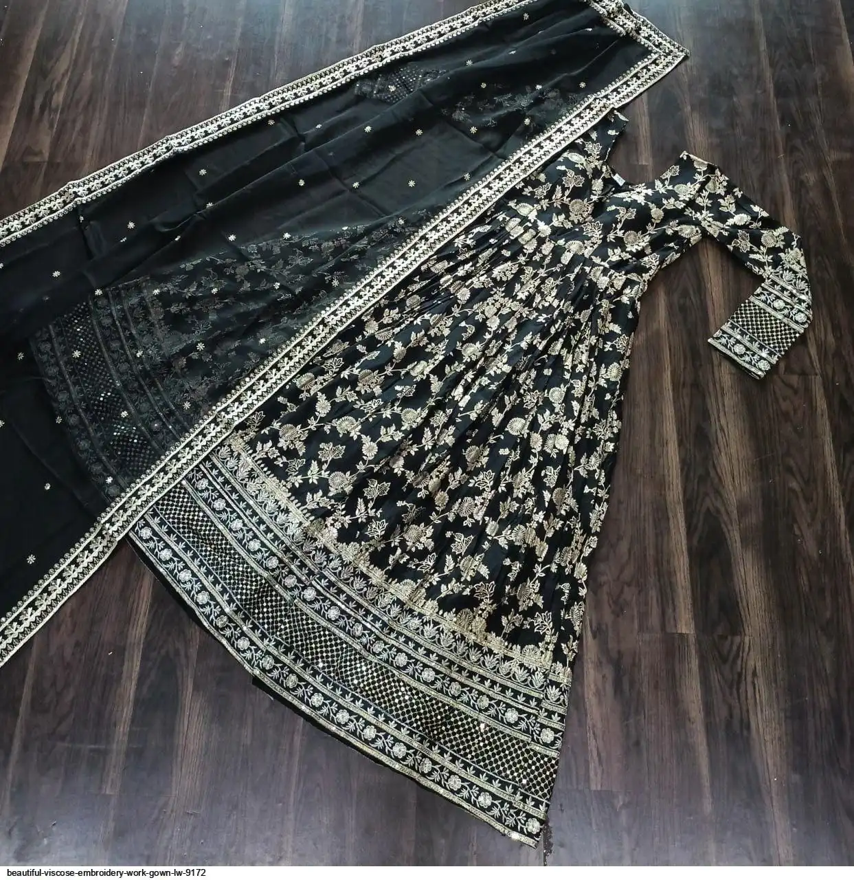Fabrics & Work :- Viscose Diable Jacquard With Sequins Embroidered Work