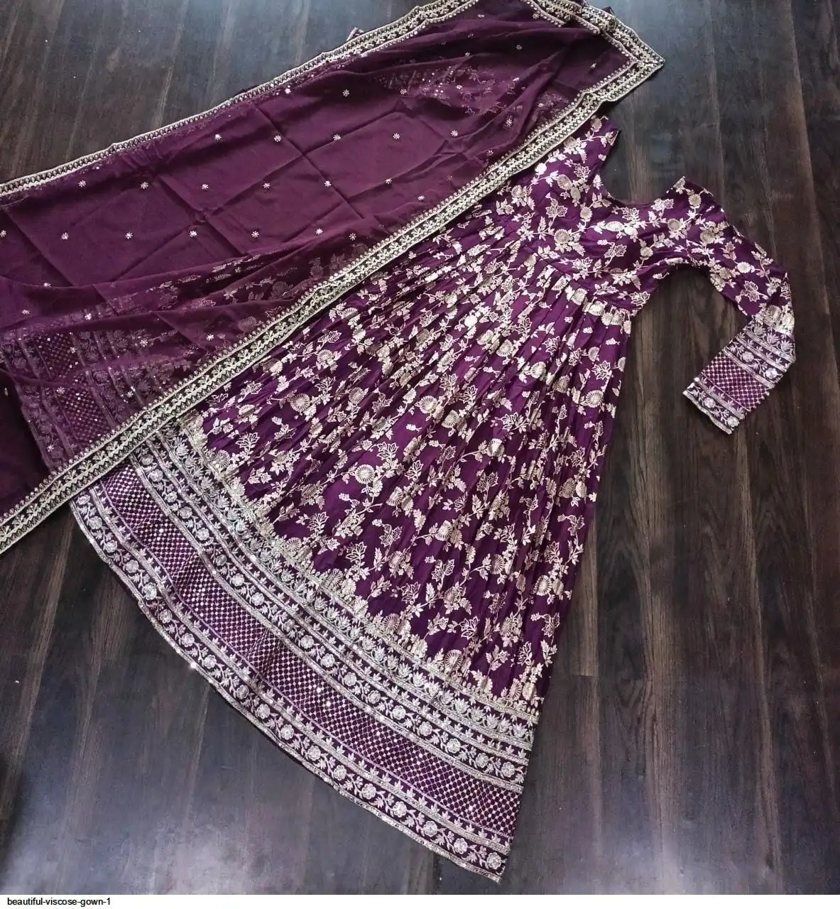 👉🏻 Fabrics & Work :- Viscose Diable Jacquard With Sequins Embroidered Work