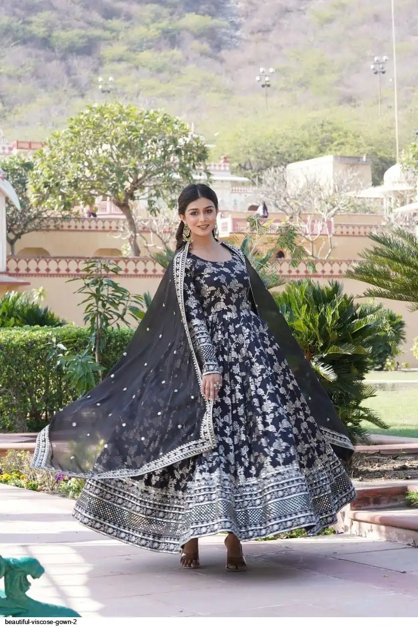 👉🏻 Fabrics & Work :- Viscose Diable Jacquard With Sequins Embroidered Work