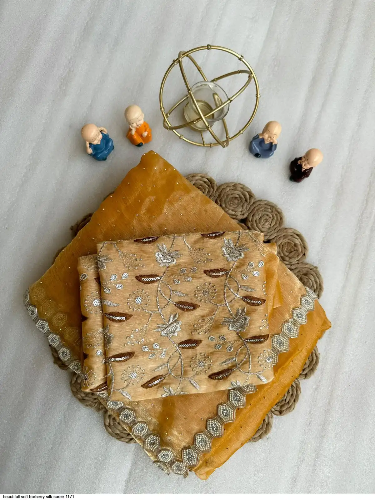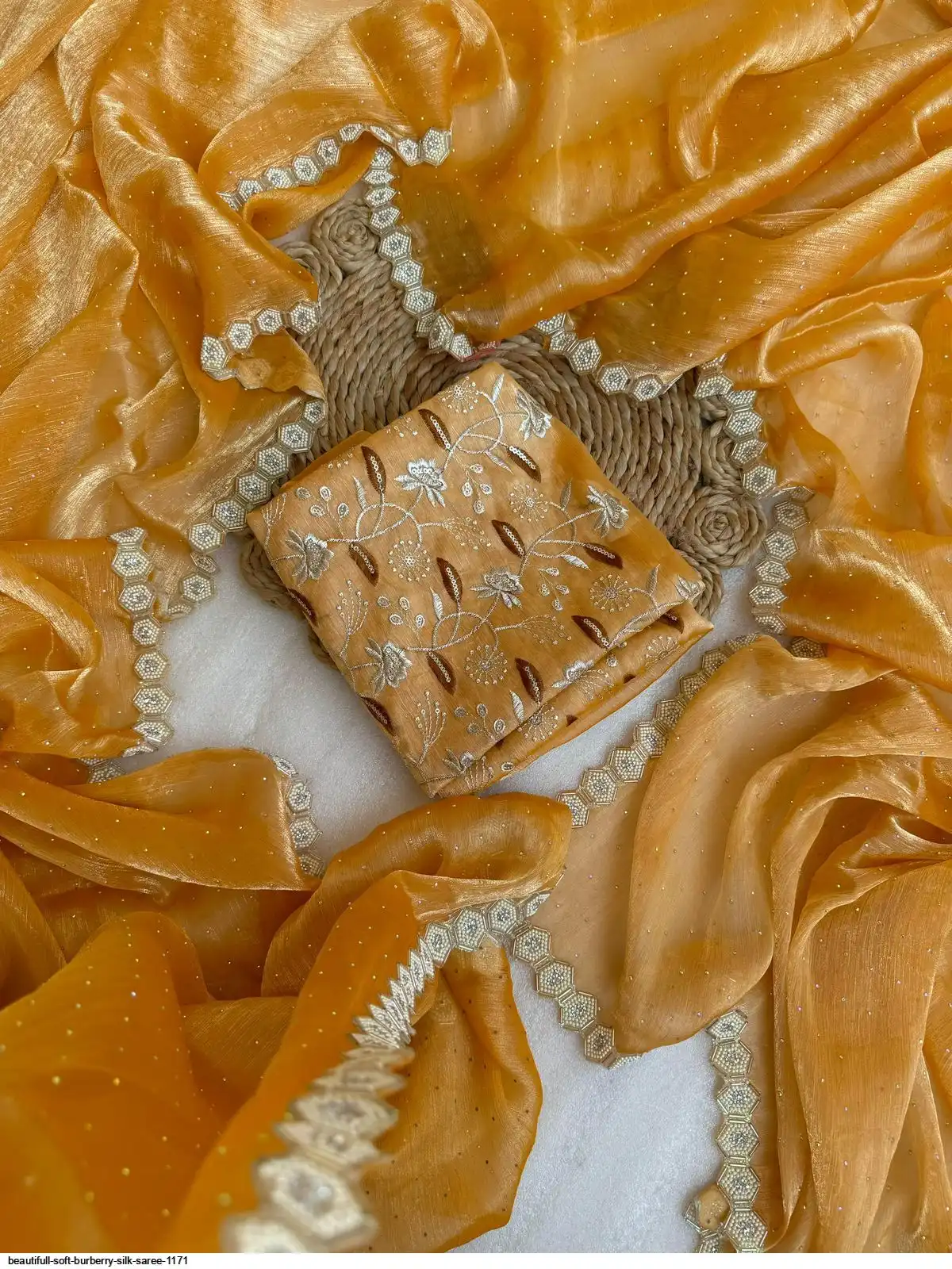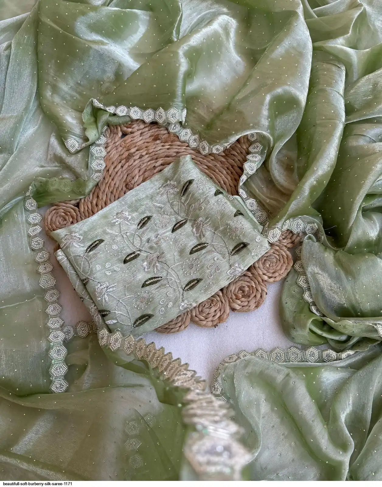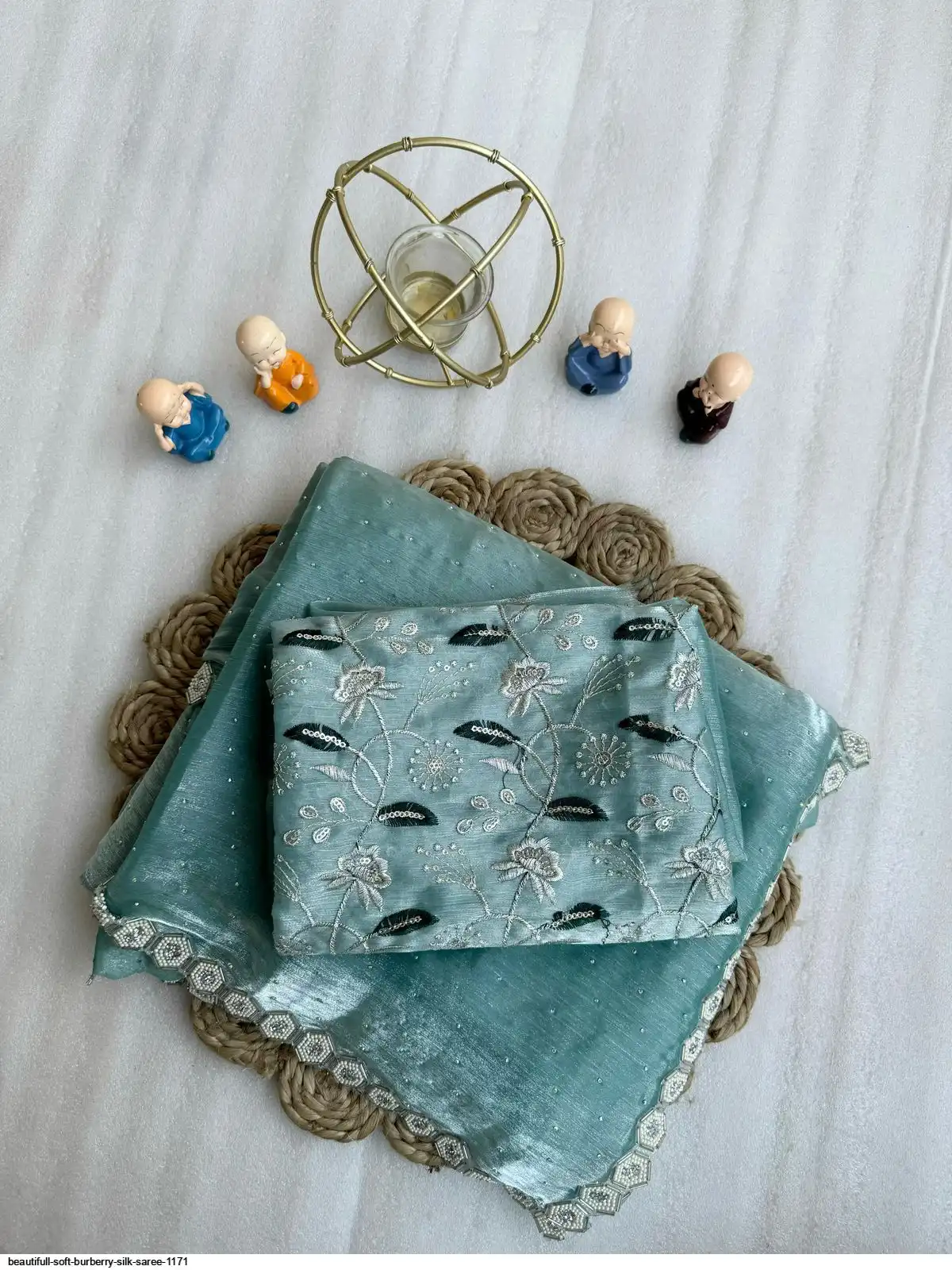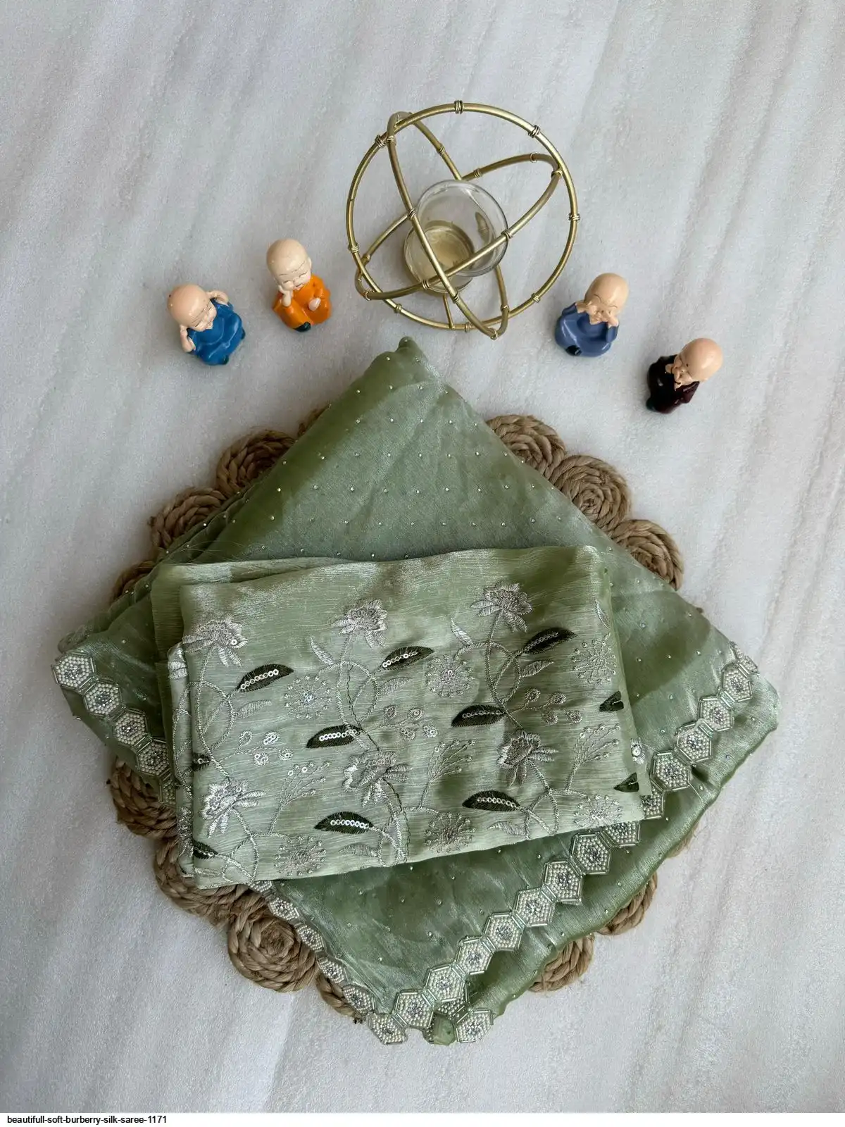Primium Soft Burberry Silk Dusty Color with Pure Jarakn Lace Border and All over Sirvoski Diamond in Saree