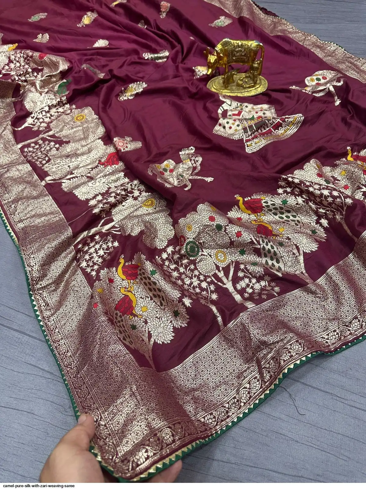 Saree :~ Pure Dola silk with Zari weaving Saree & samosa lace border