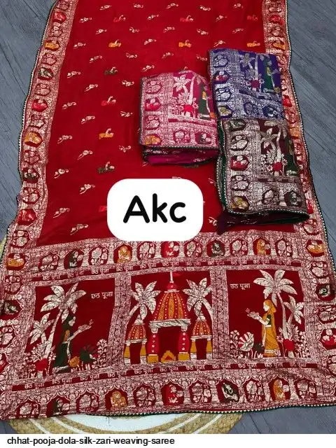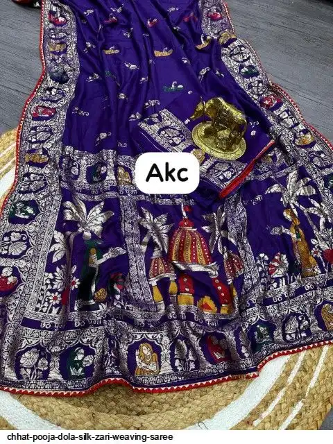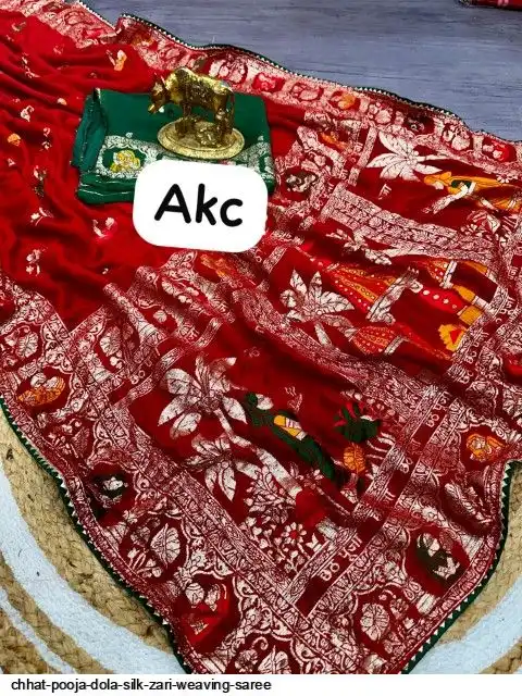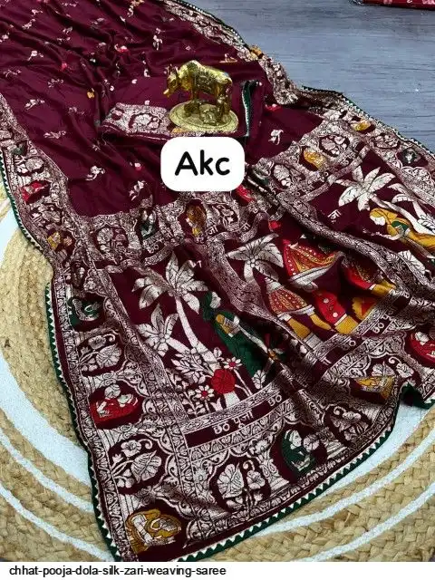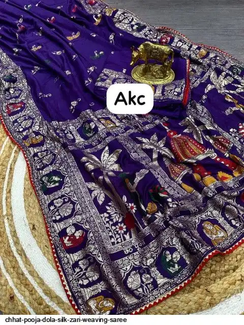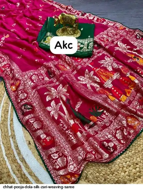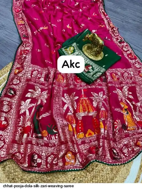 Saree :~ Pure Dola silk with Zari weaving Saree with Chaat pooja Pallu & samosa border lace