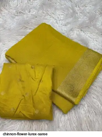 Pure Chinnon viscose saree with beautiful jacquard border with beautiful Chinnon viscose butti blouse