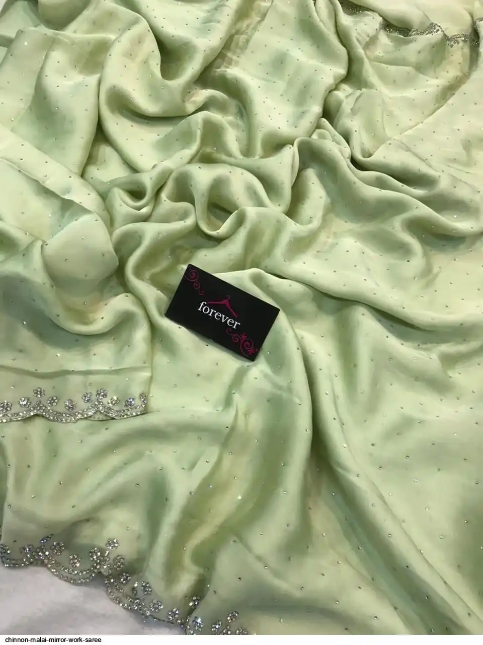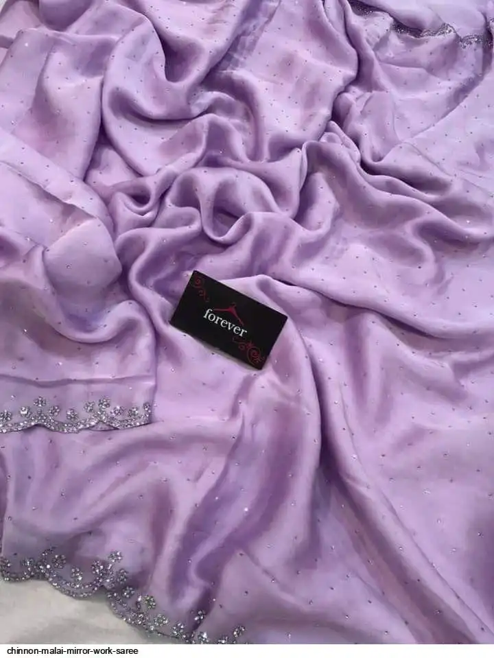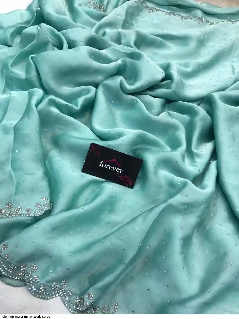 Pure imported chinon crepe stone work sarees with beautiful Swarovski stone borders and running blouse