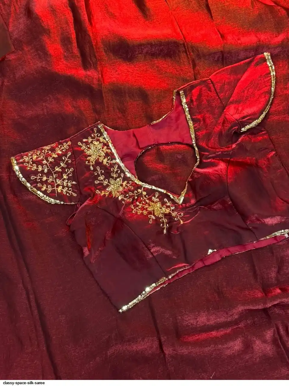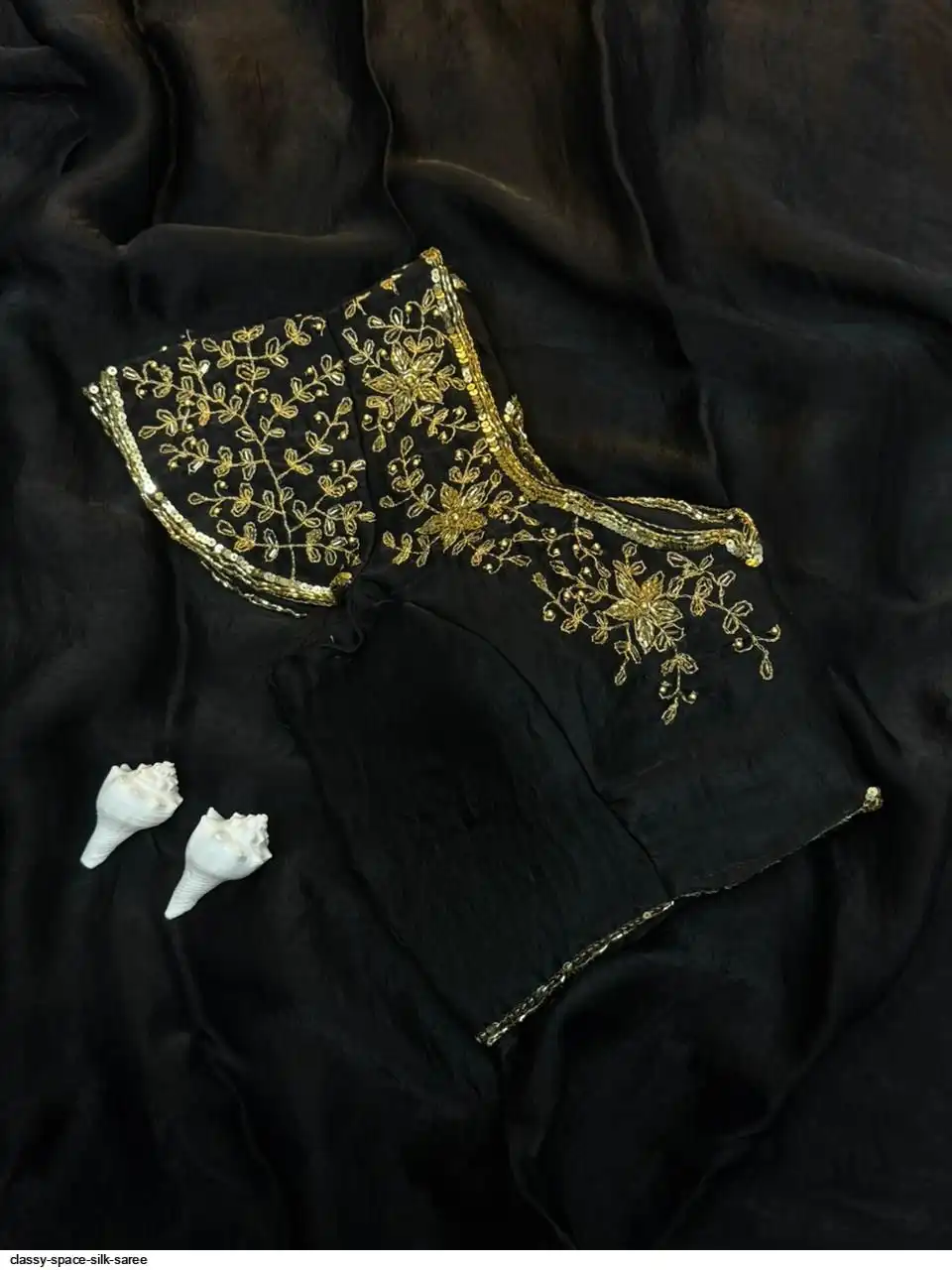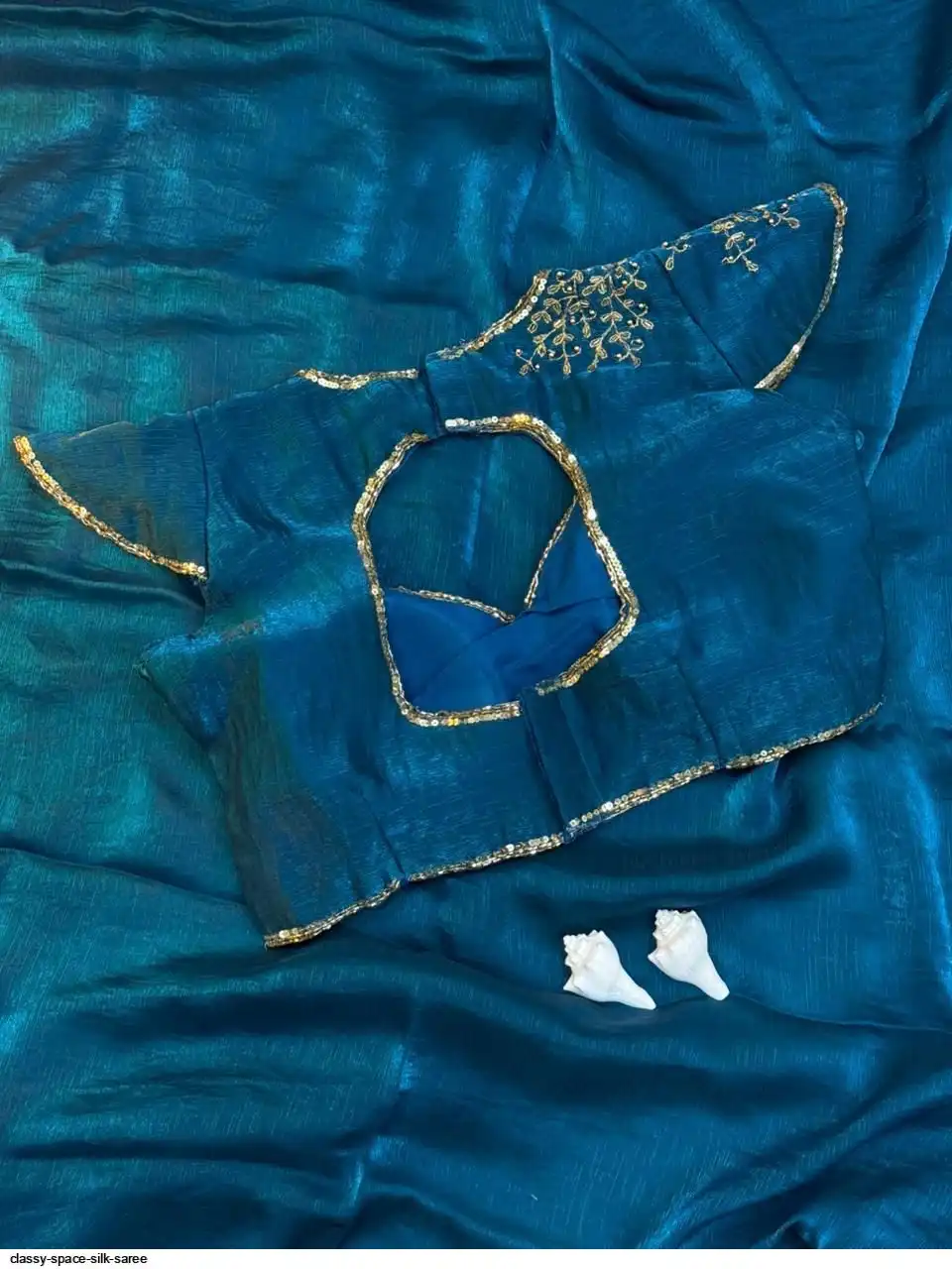 RICH SPACE SILK CLASSY COLOT RANGES KASAB HANDWORK RICH CUT DANA SEQUNE HANDOWORK BLOUSE FULLY STICH SIZE 38 TO 42 MARGINE