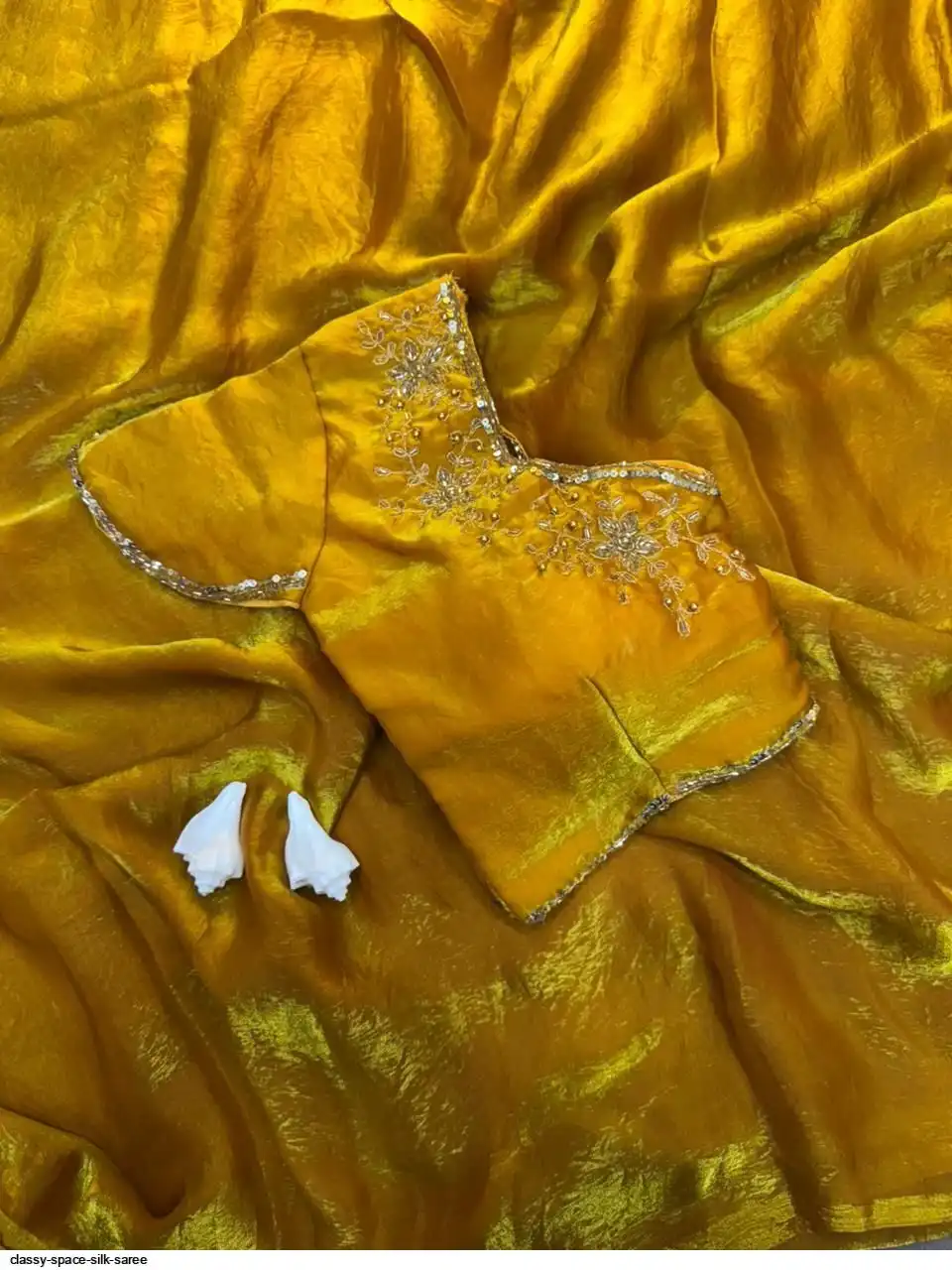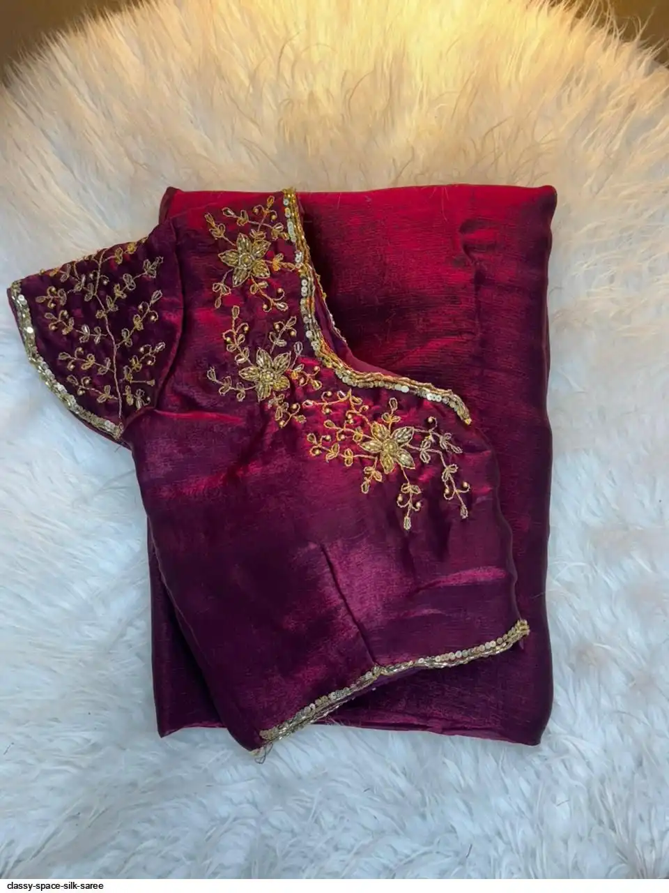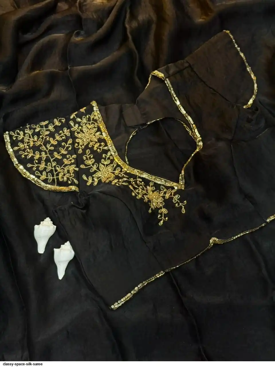 RICH SPACE SILK CLASSY COLOT RANGES KASAB HANDWORK RICH CUT DANA SEQUNE HANDOWORK BLOUSE FULLY STICH SIZE 38 TO 42 MARGINE