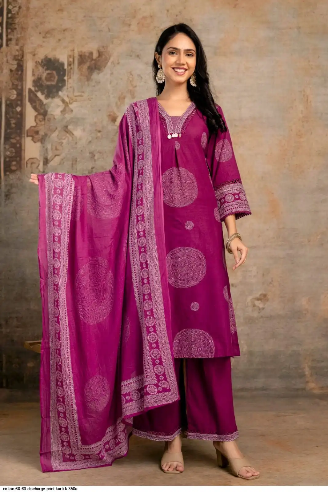 COTTON 60 60 DISCHARGE PRINT KURTI K 350A