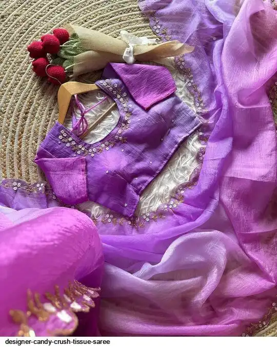 DESIGNER CANDY CRUSH TISSUE SAREE A