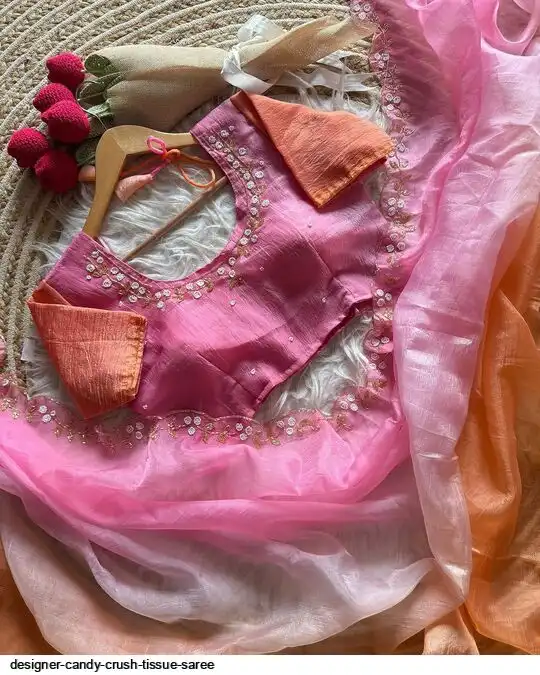 Premium Glass Candy Crush Tissue padding Saree Silk With fully handwork Saree