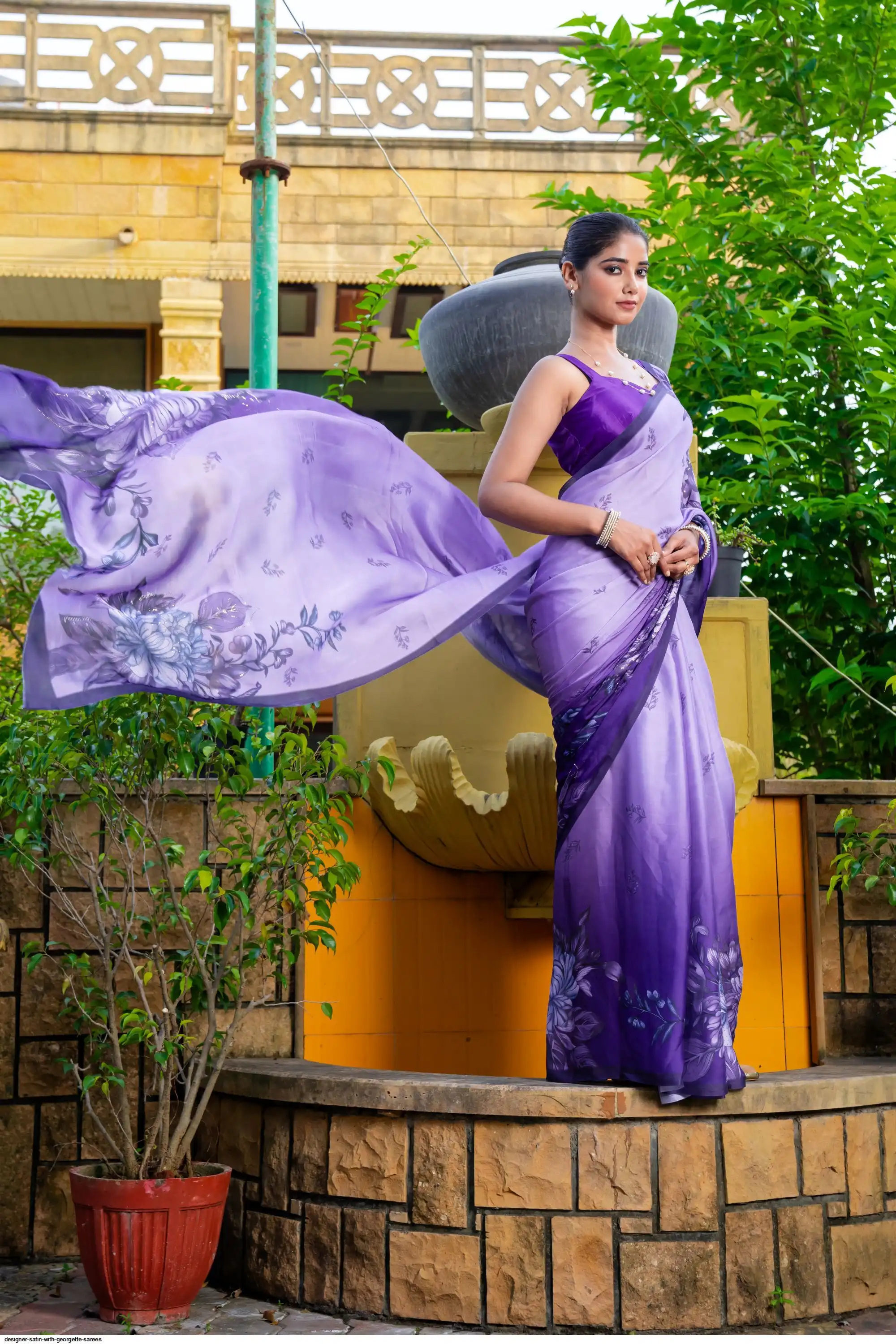 DESIGNER SATIN WITH GEORGETTE SAREES B