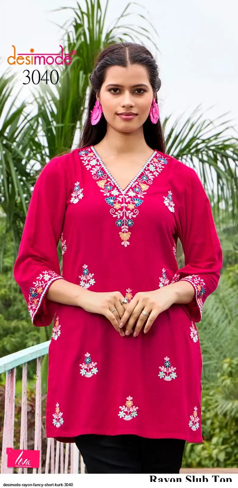 DESIMODE RAYON FANCY SHORT KURTI 3040