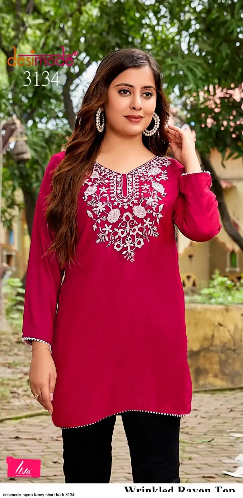 DESIMODE RAYON FANCY SHORT KURTI 3134