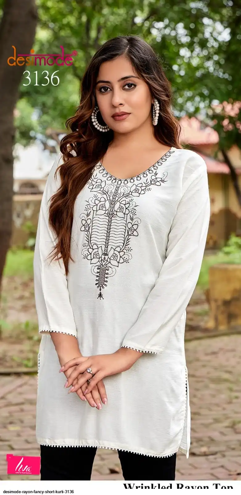 DESIMODE RAYON FANCY SHORT KURTI 3136