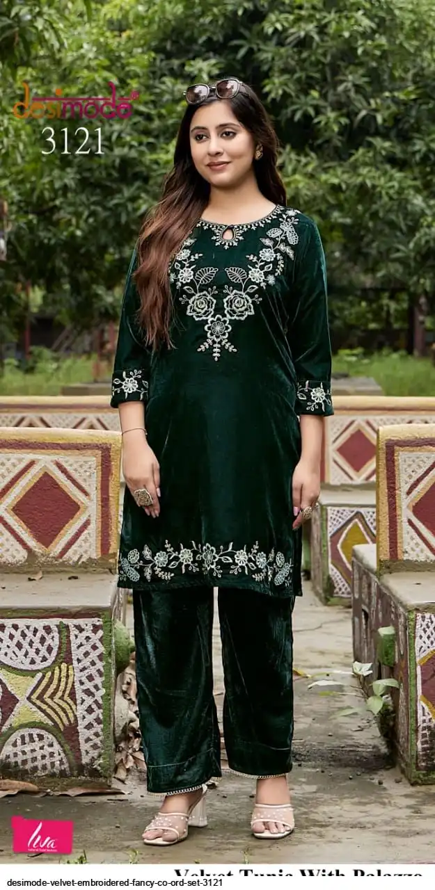 DESIMODE VELVET EMBROIDERED FANCY CO ORD SET 3121