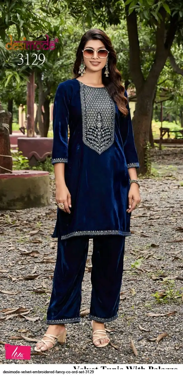 DESIMODE VELVET EMBROIDERED FANCY CO ORD SET 3129