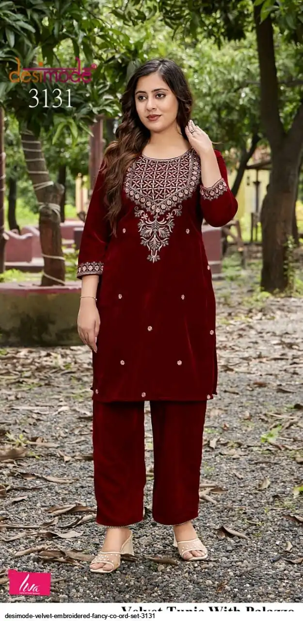 DESIMODE VELVET EMBROIDERED FANCY CO ORD SET 3131